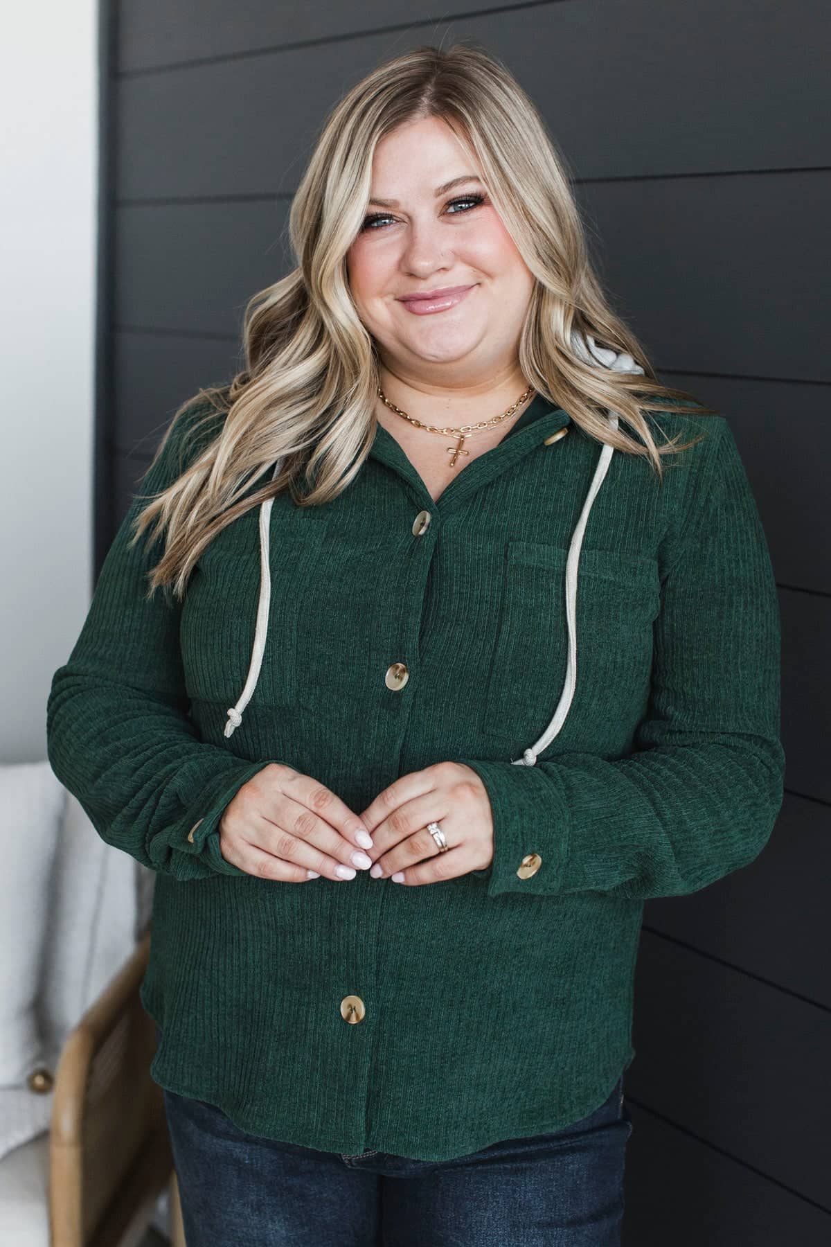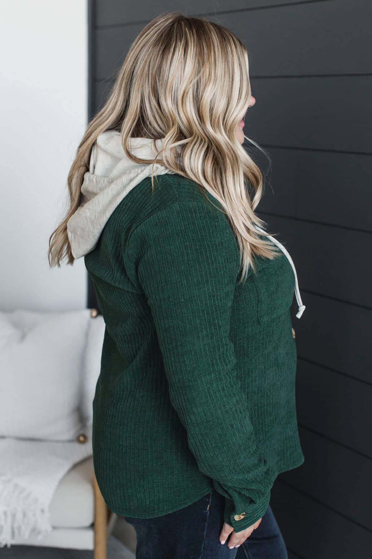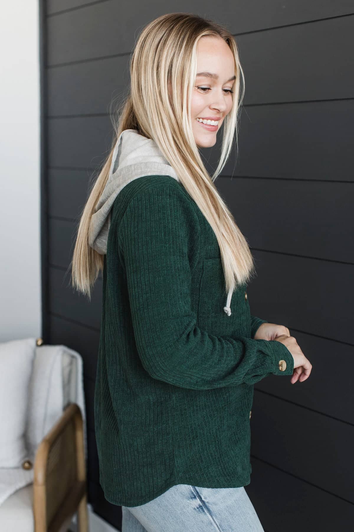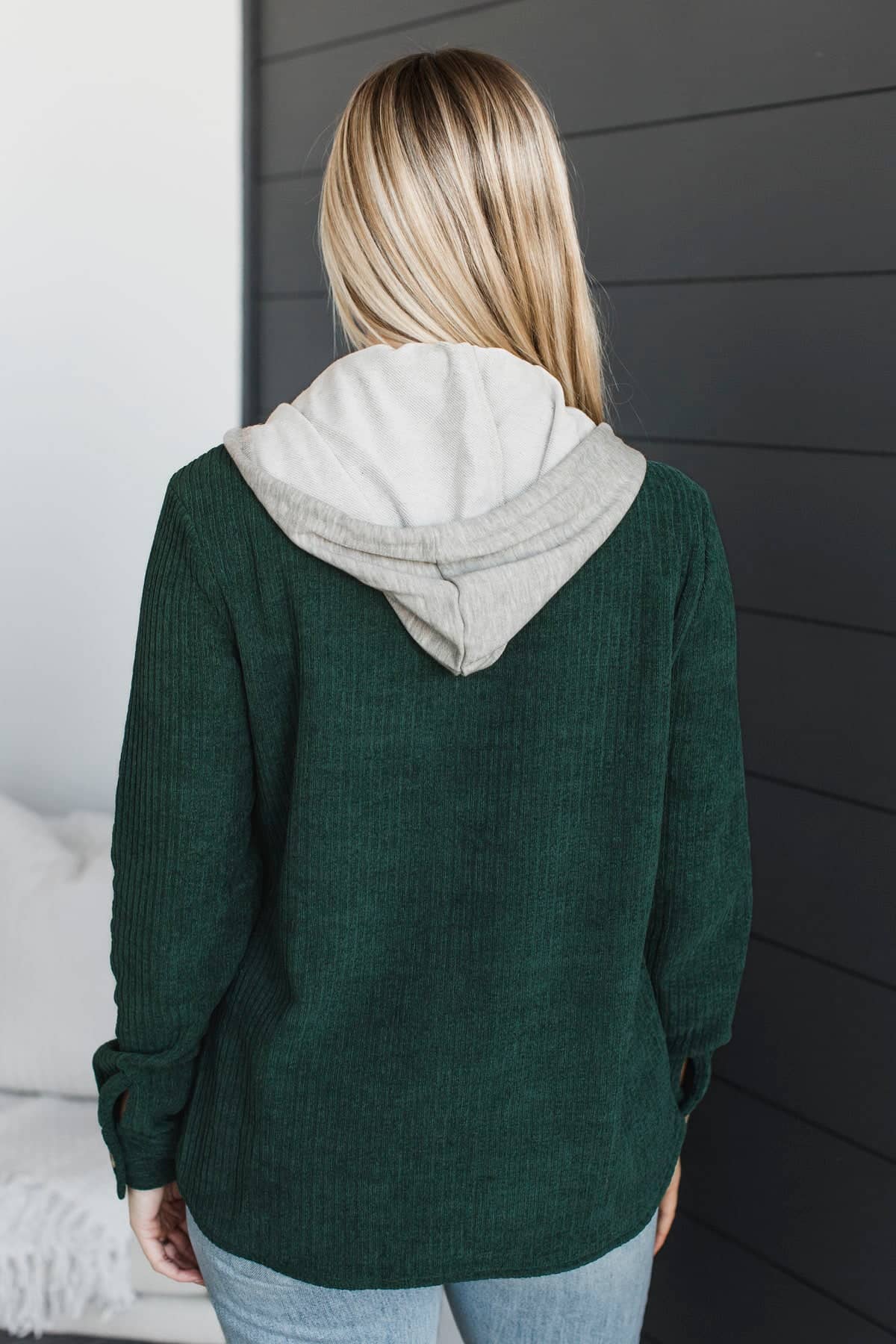 Exceptional Sights Ribbed Button Jacket- Hunter Green