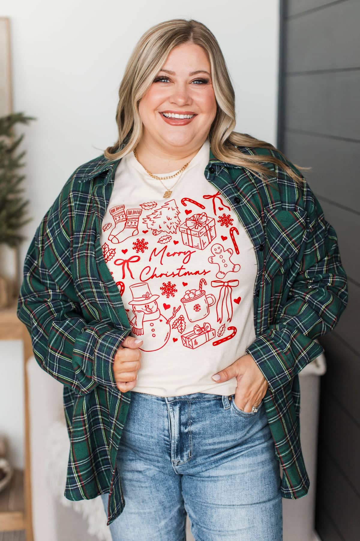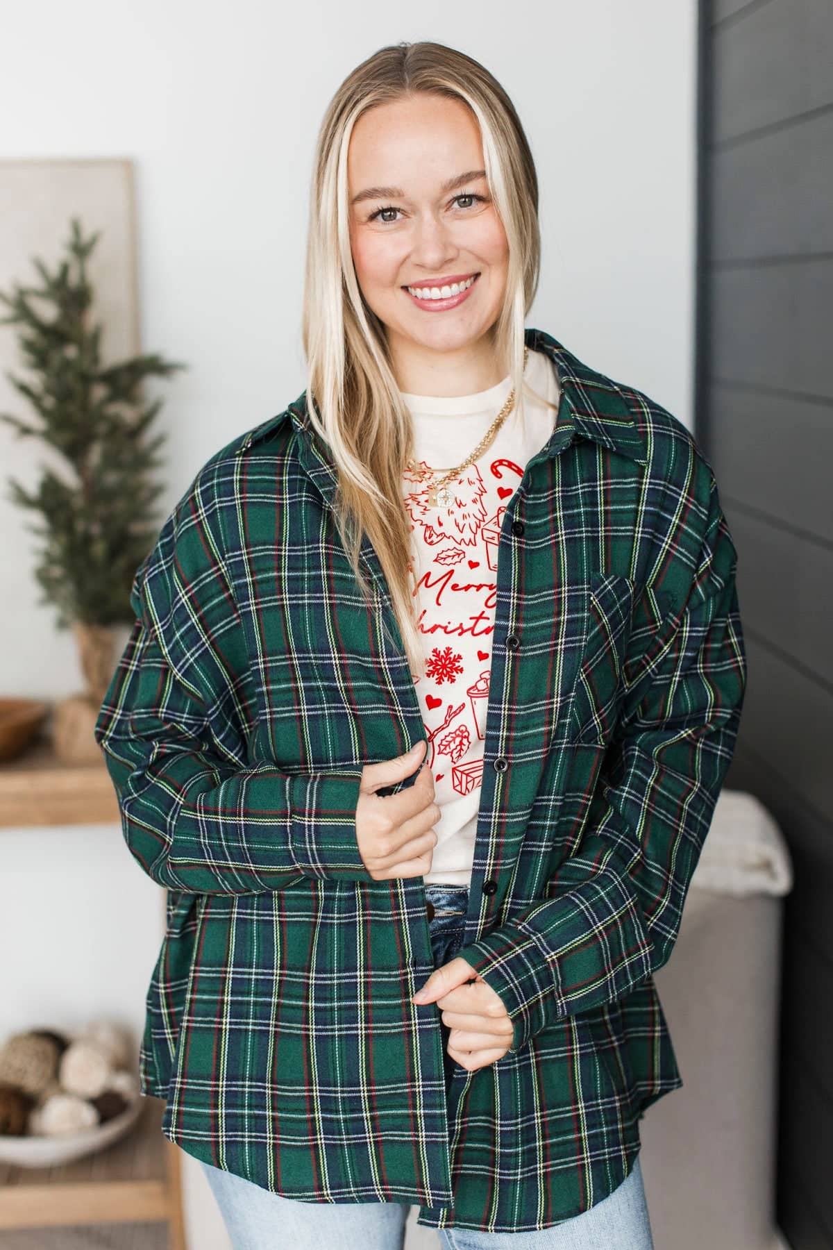 Unbelievably Blessed Plaid Button Top- Hunter Green