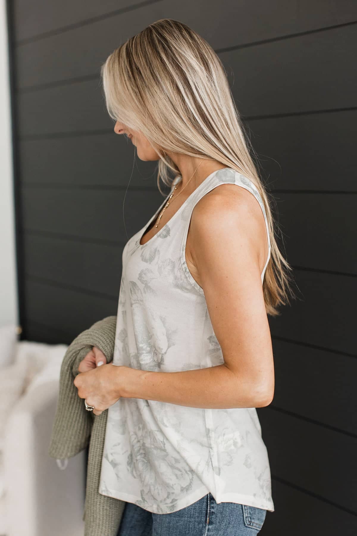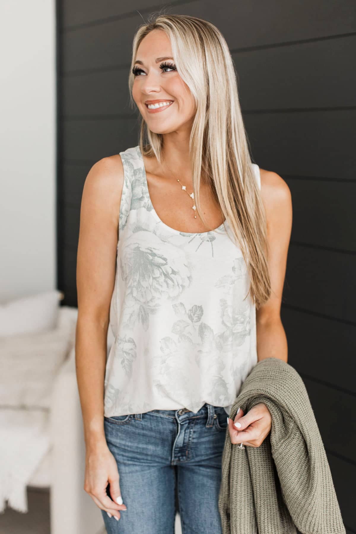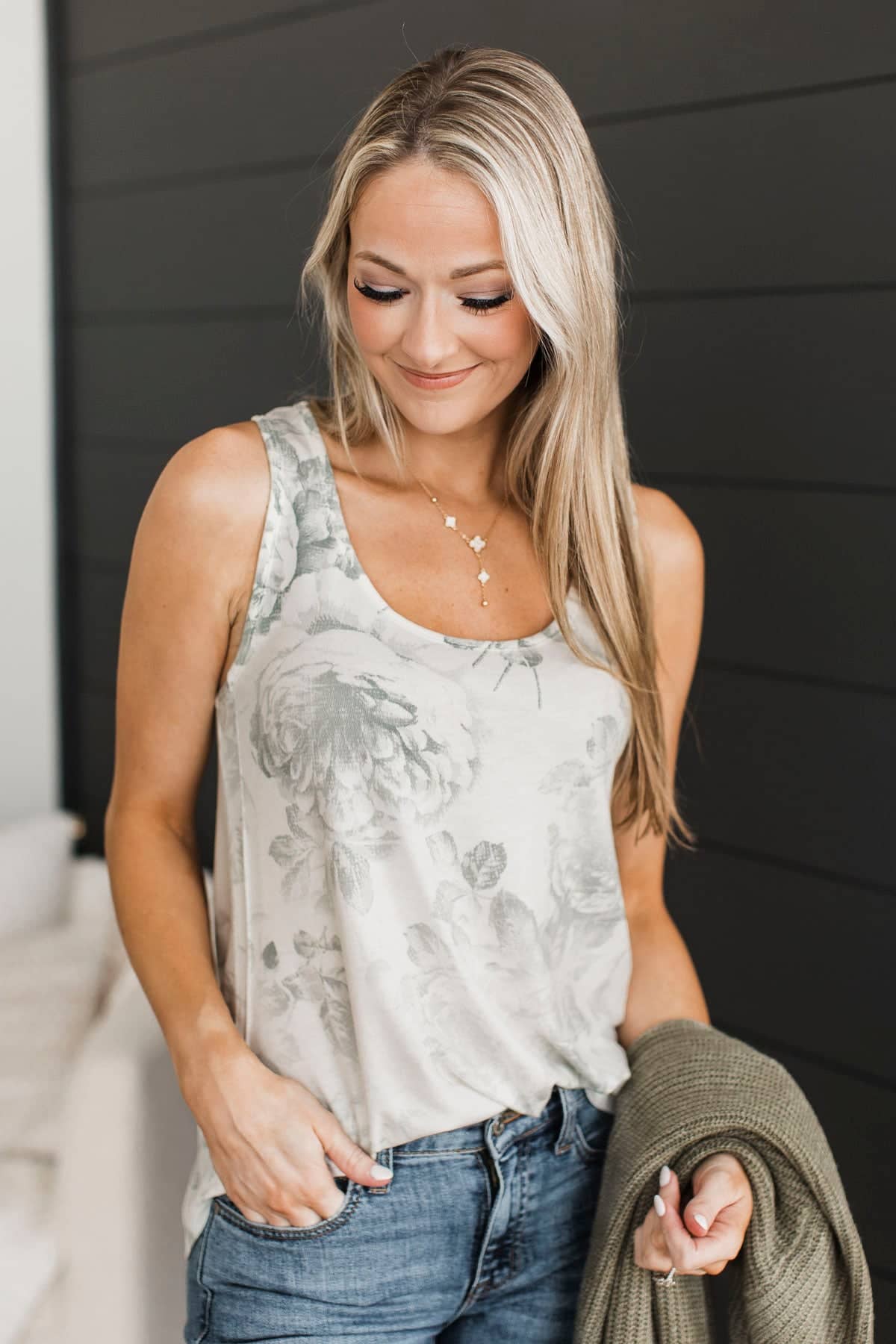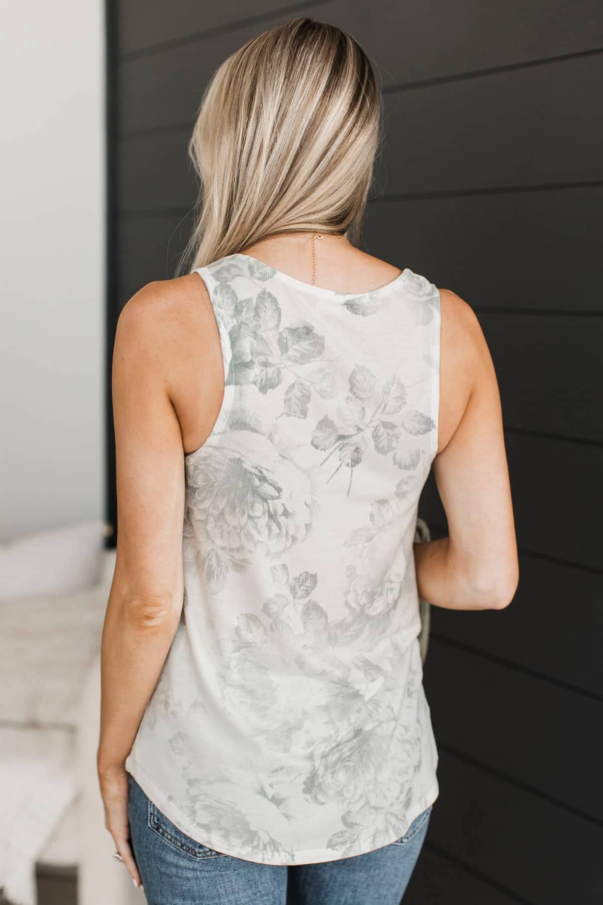 Feeling Sensational Floral Tank Top- Ivory & Grey