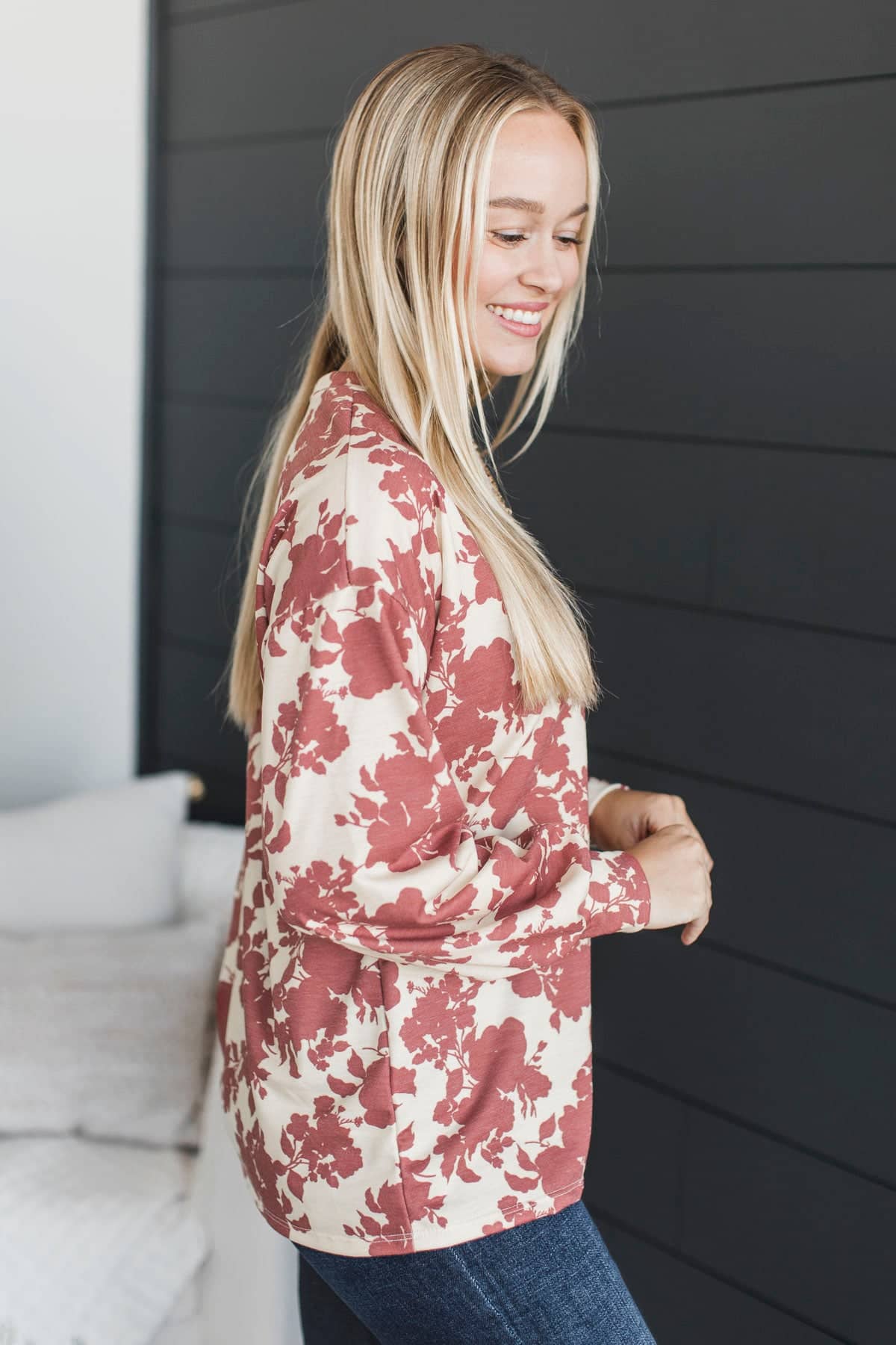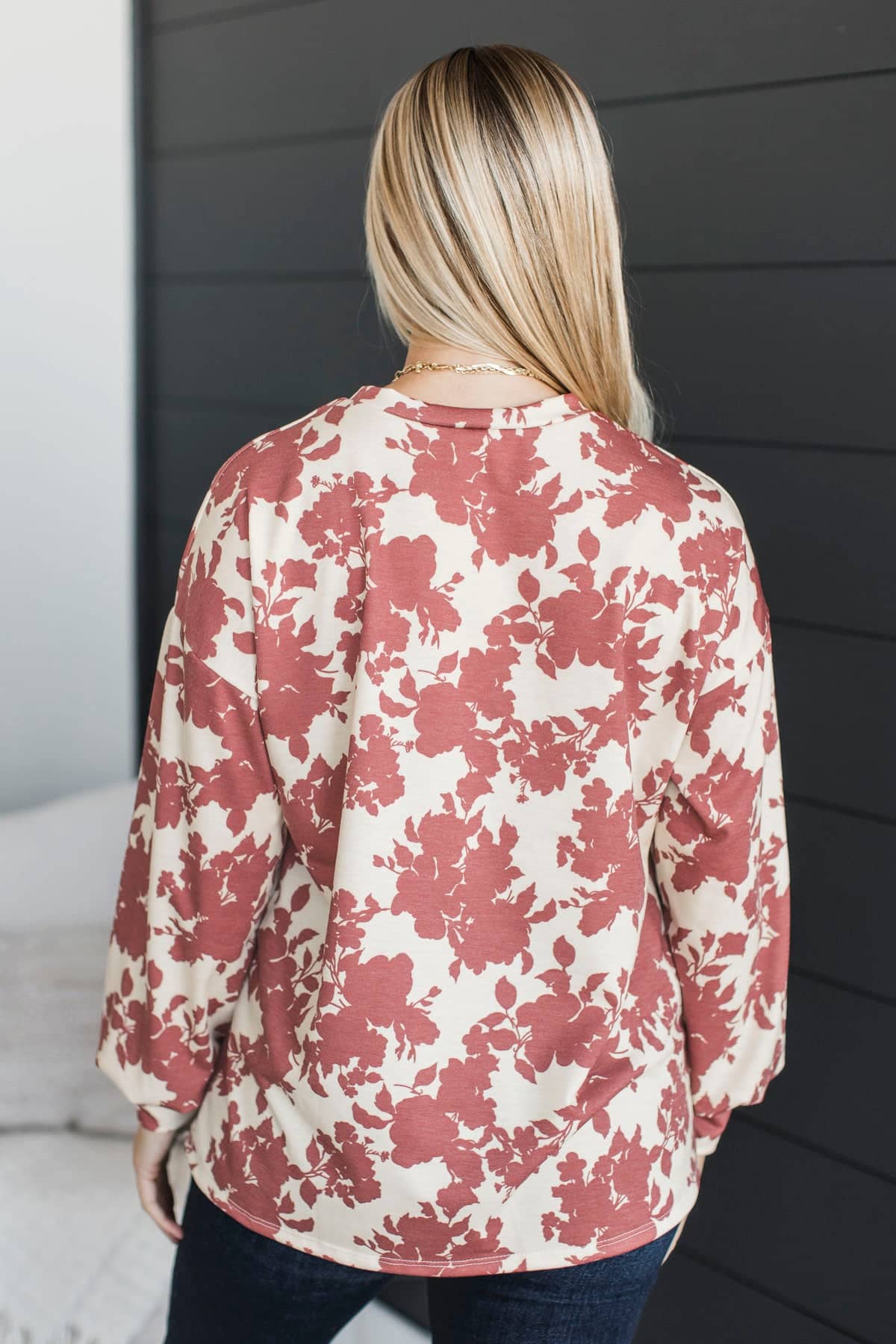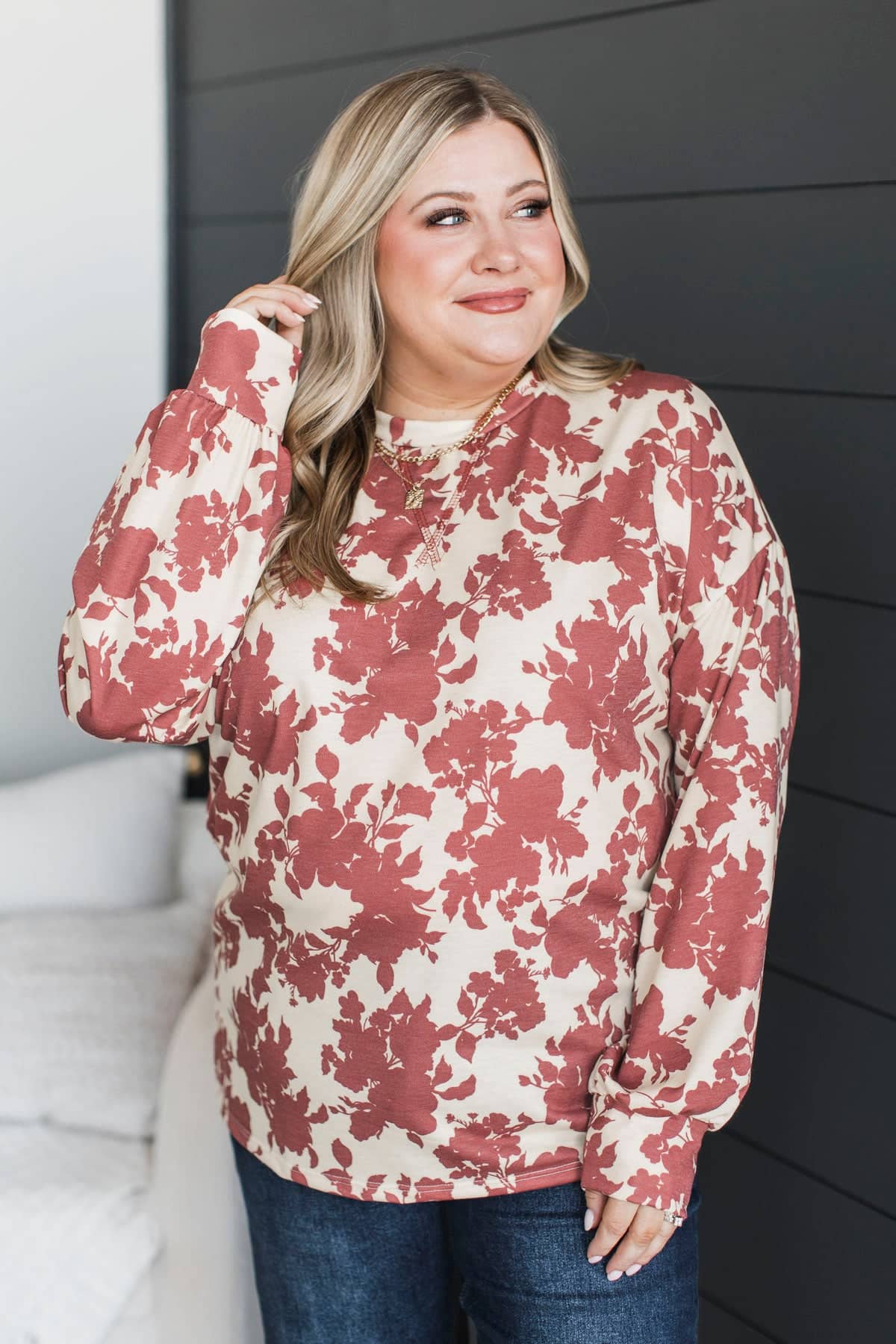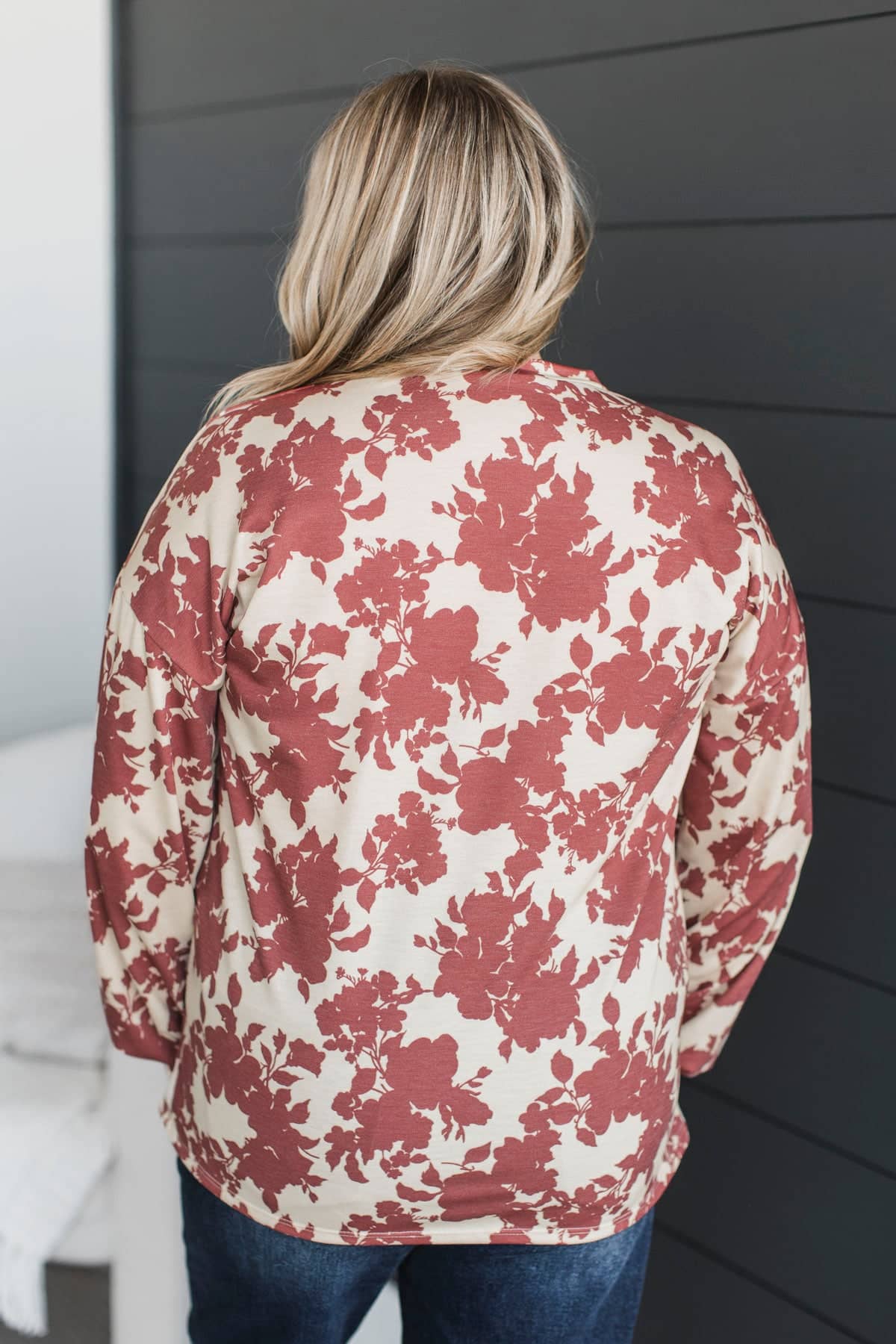 Feeling Sentimental Floral Top- Light Beige & Brick