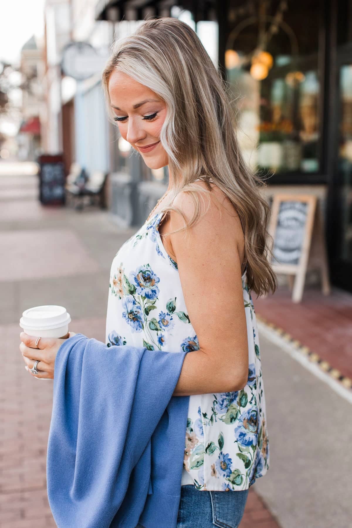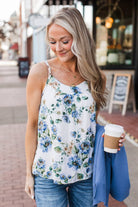 Fields Of Blooms Floral Tank Top- Off-White & Blue