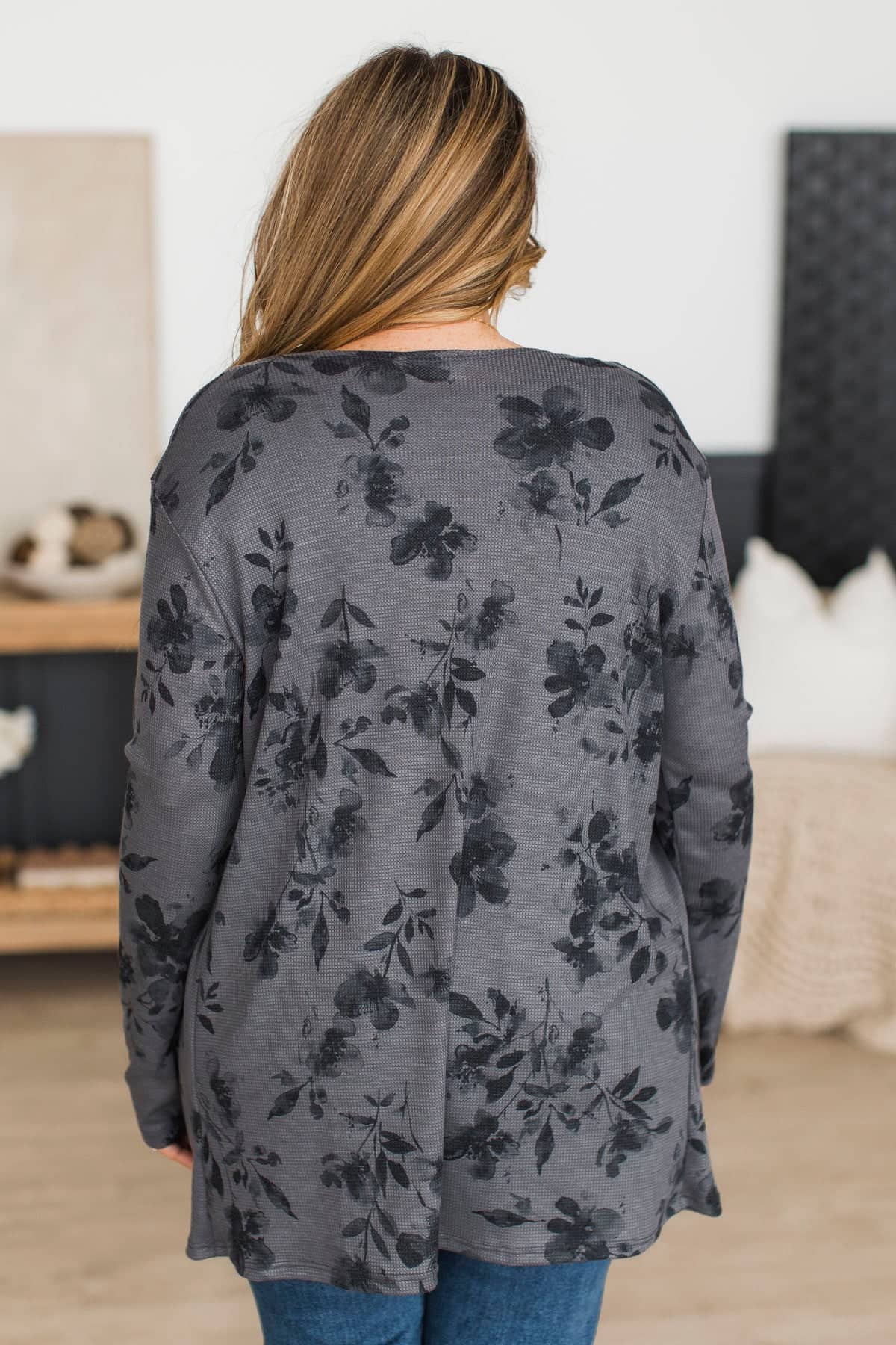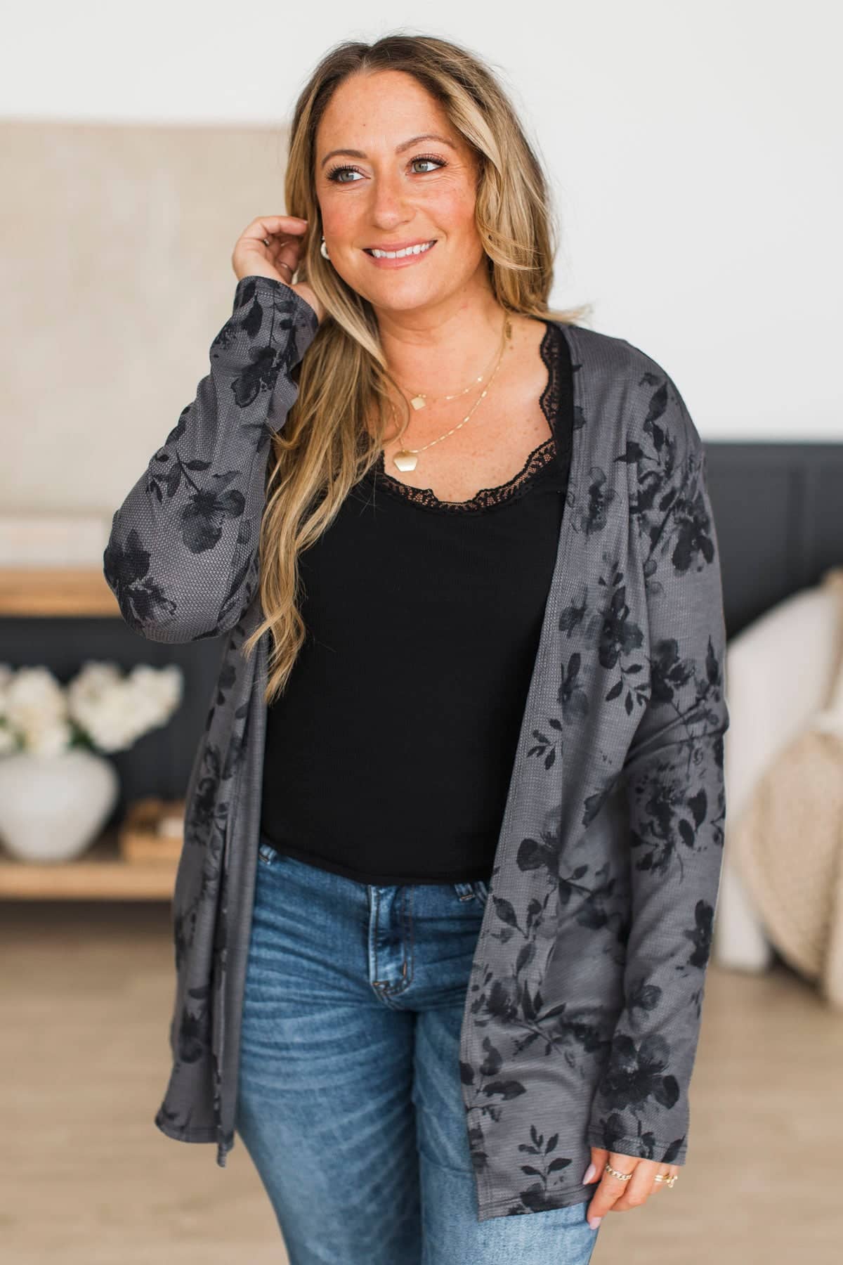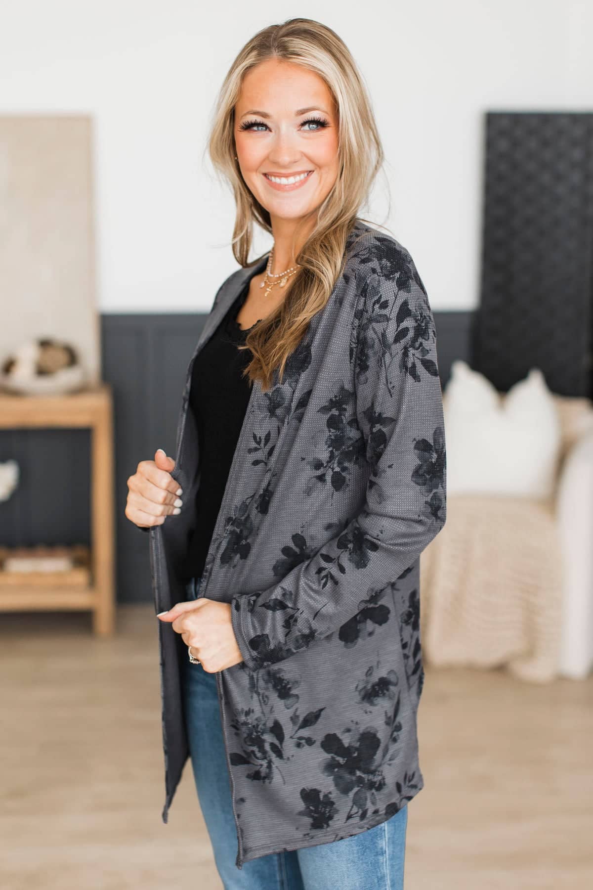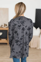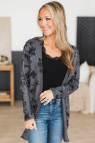 Fresh Breeze Open Front Floral Cardigan- Charcoal & Black
