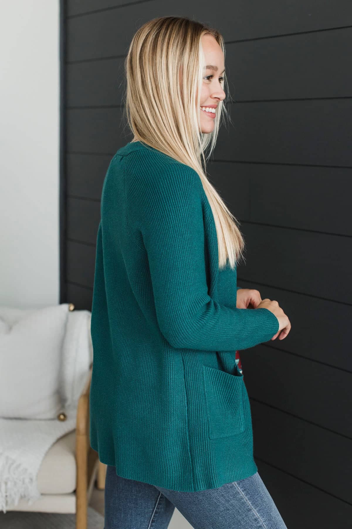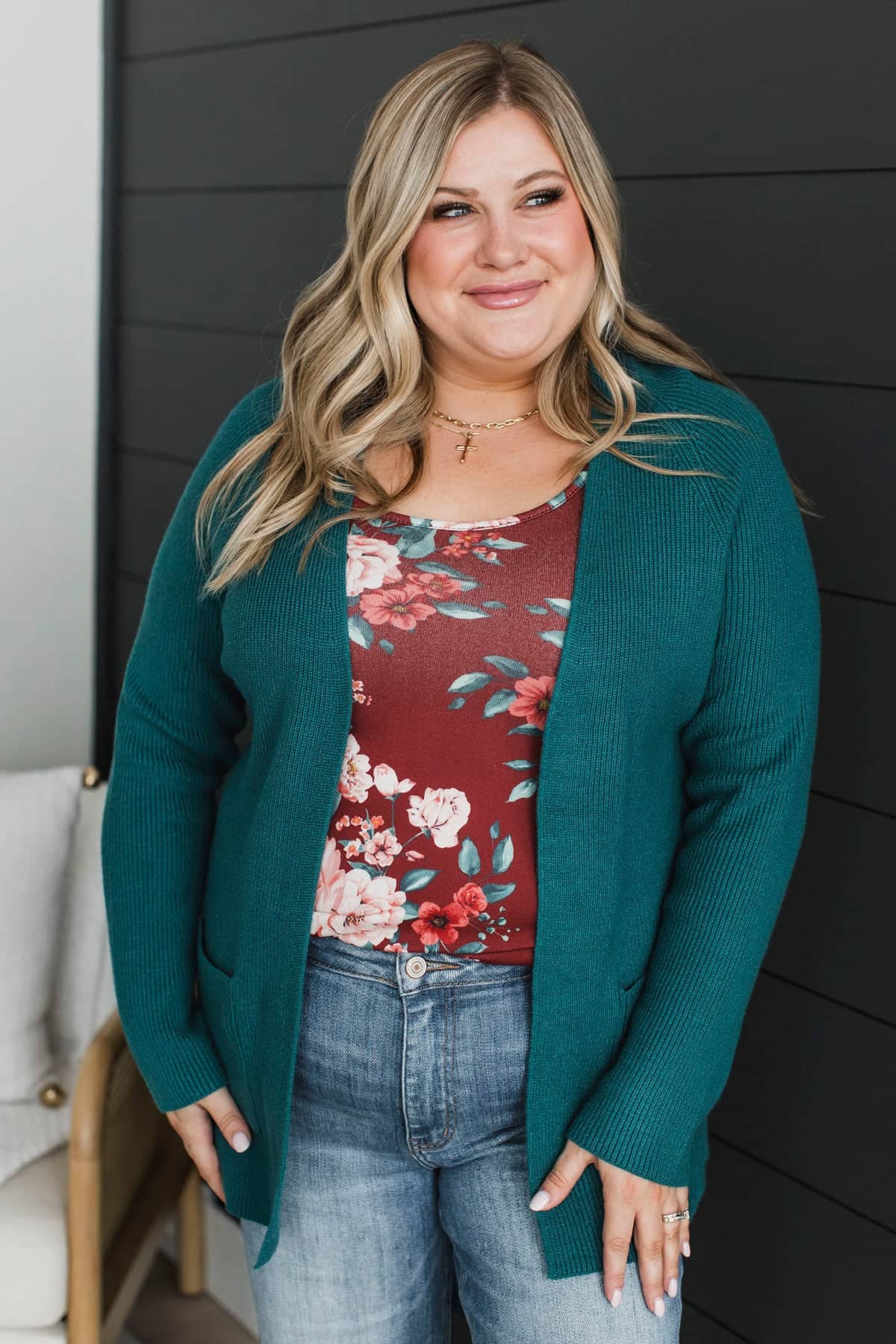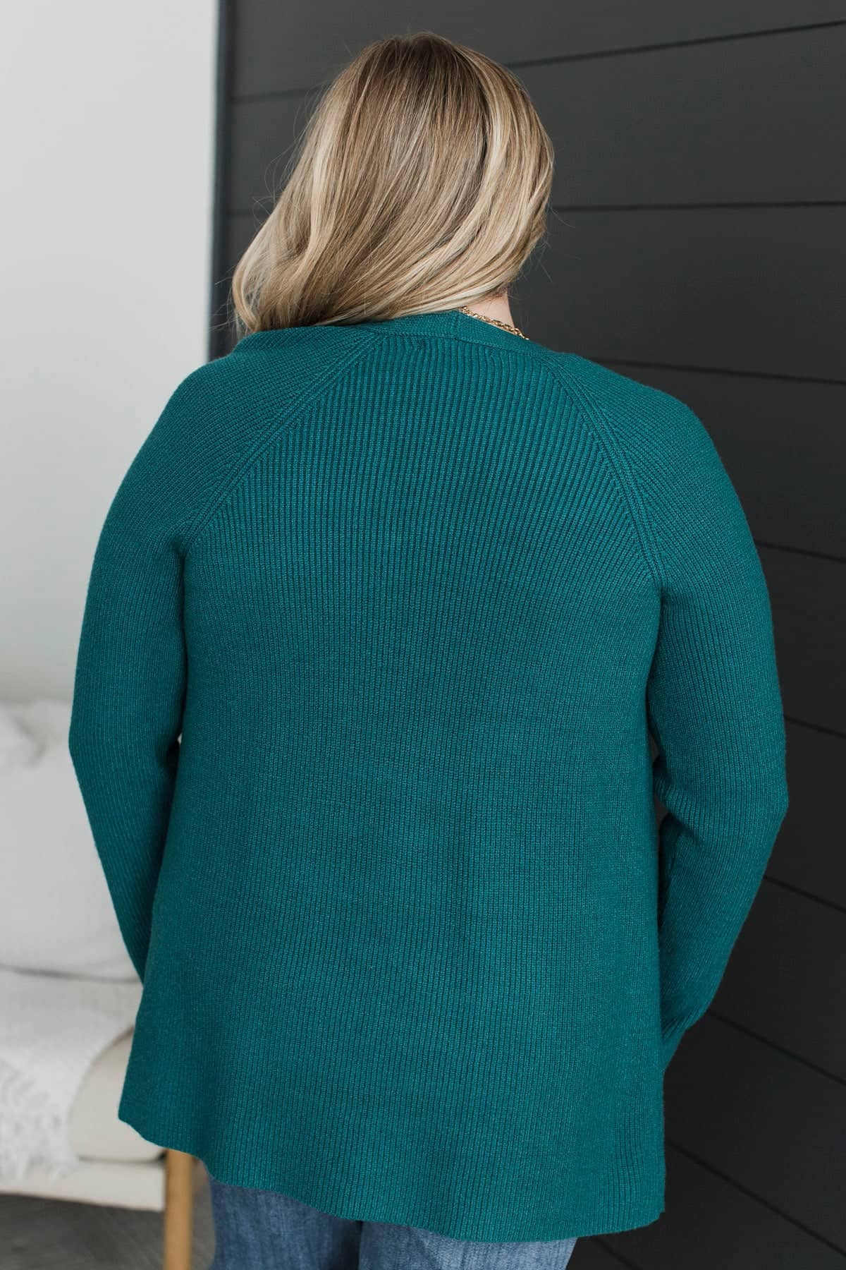 Gaze Upon Me Open Front Knit Cardigan- Teal