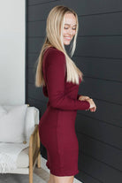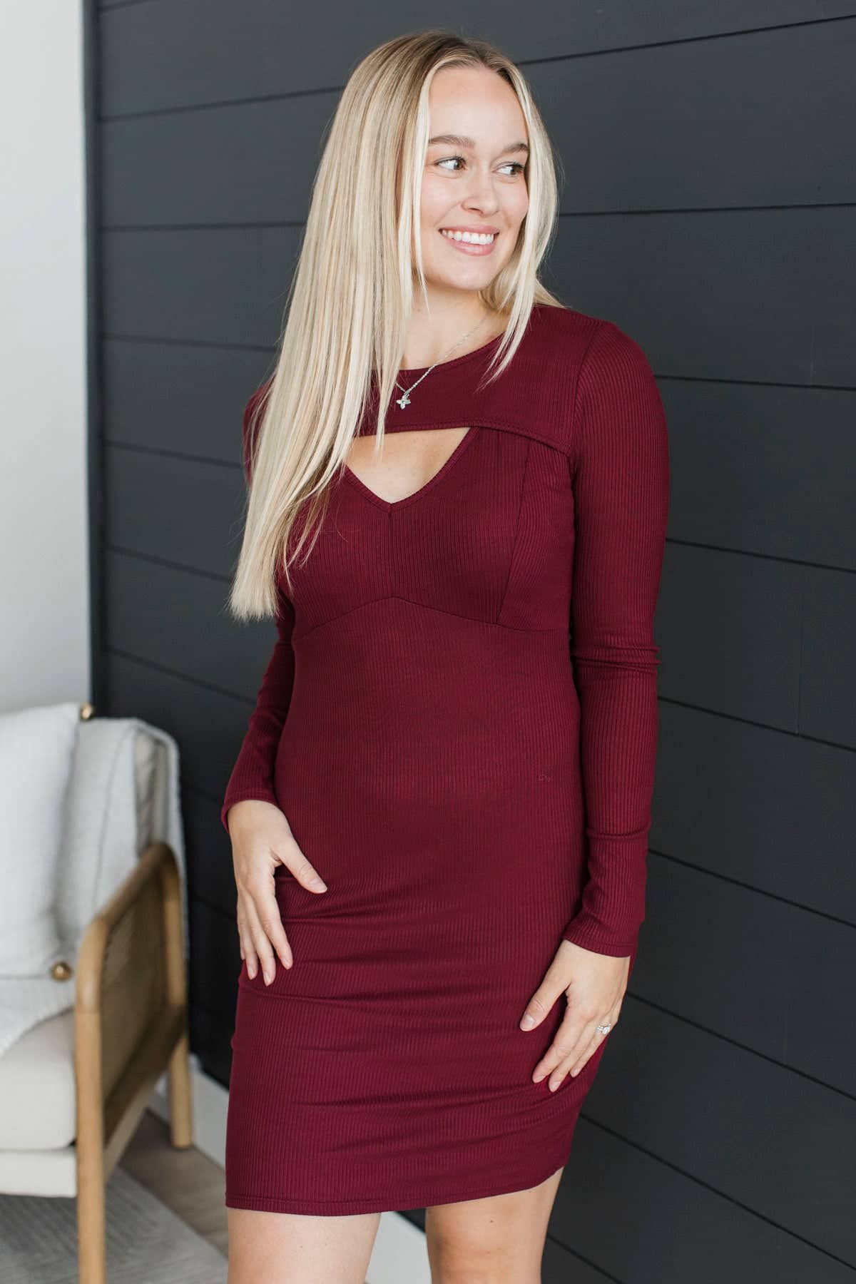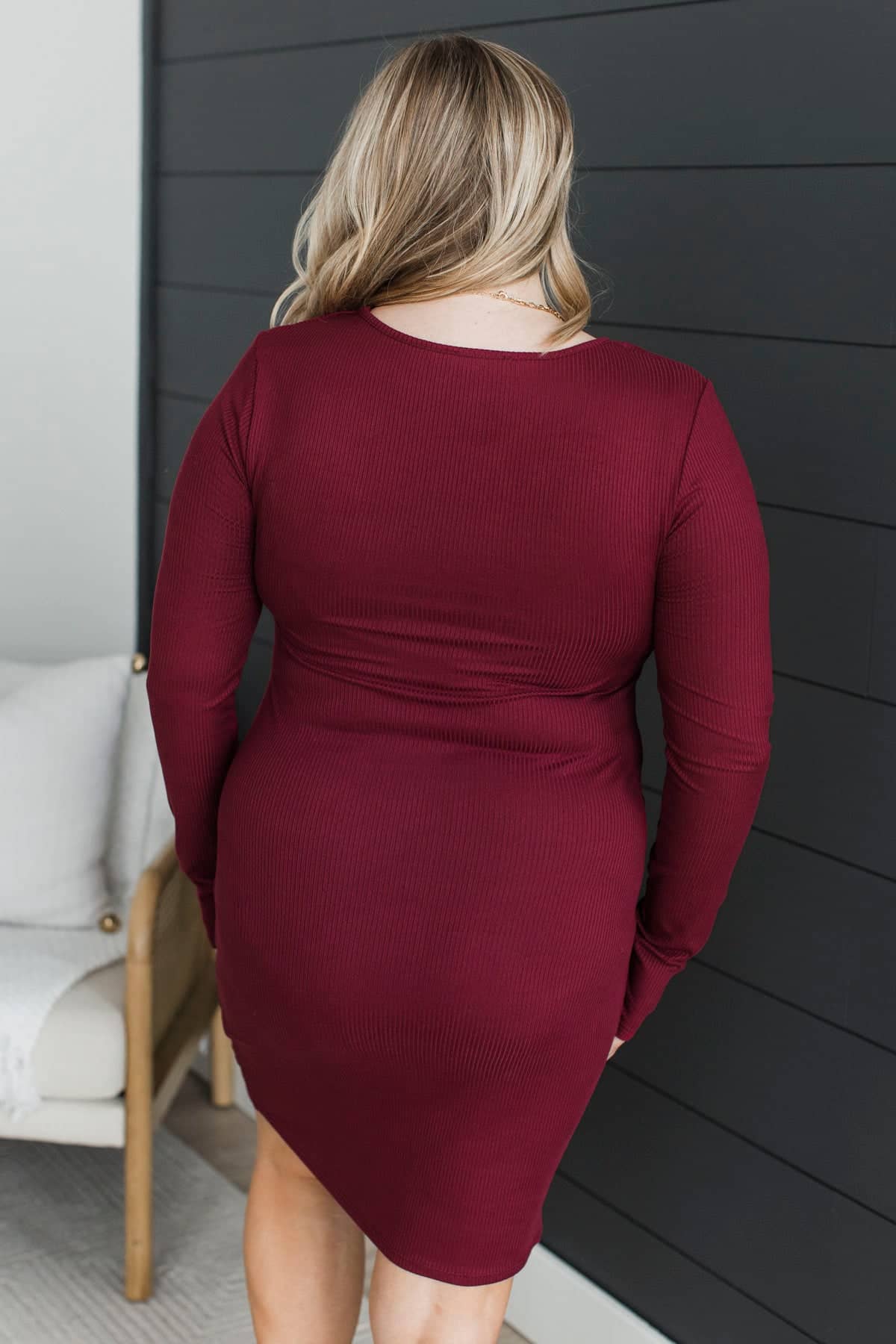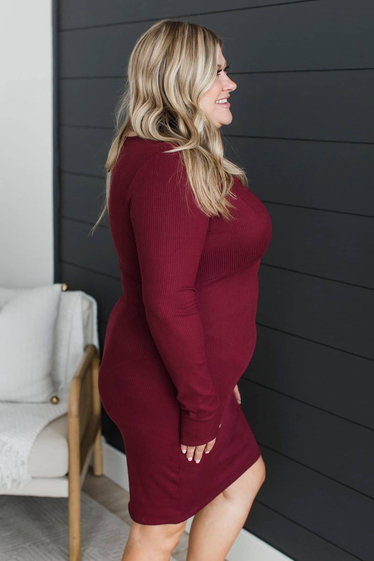 Good Composure Long Sleeve Ribbed Dress- Burgundy