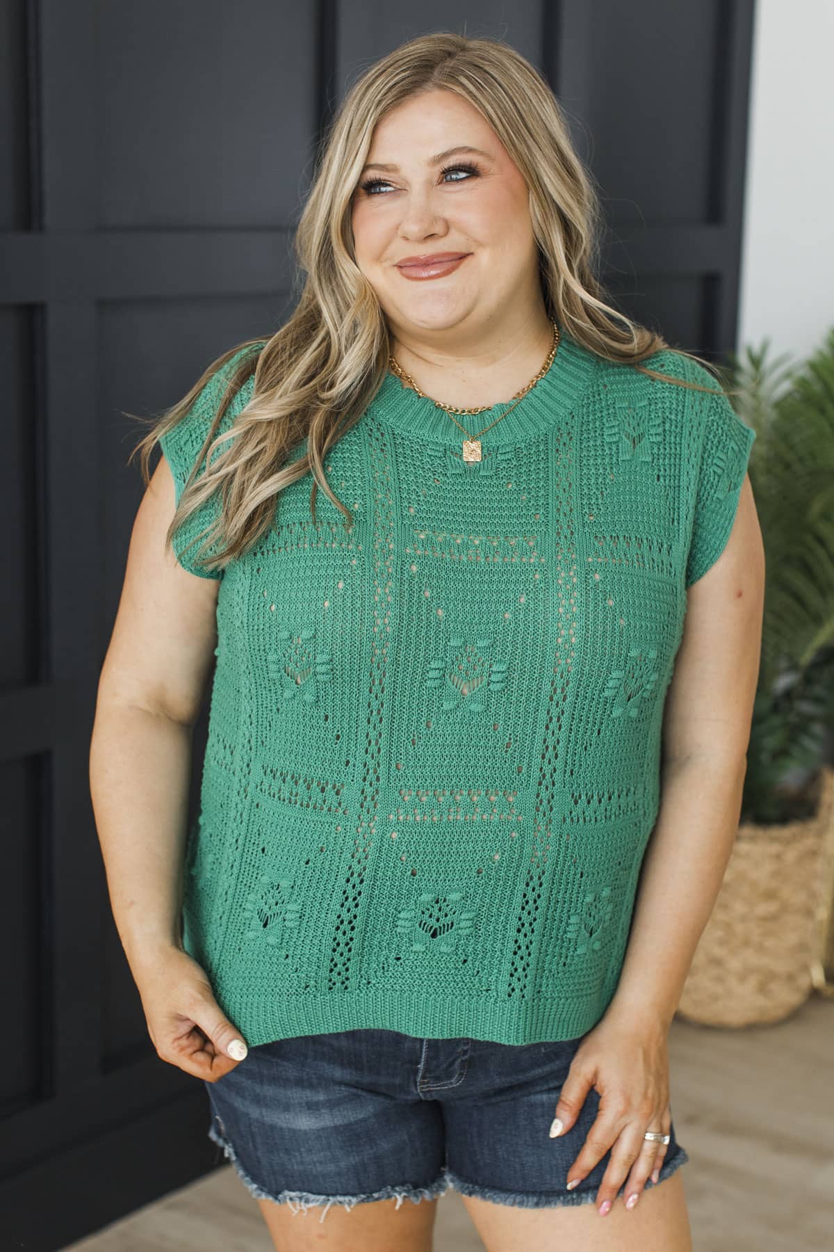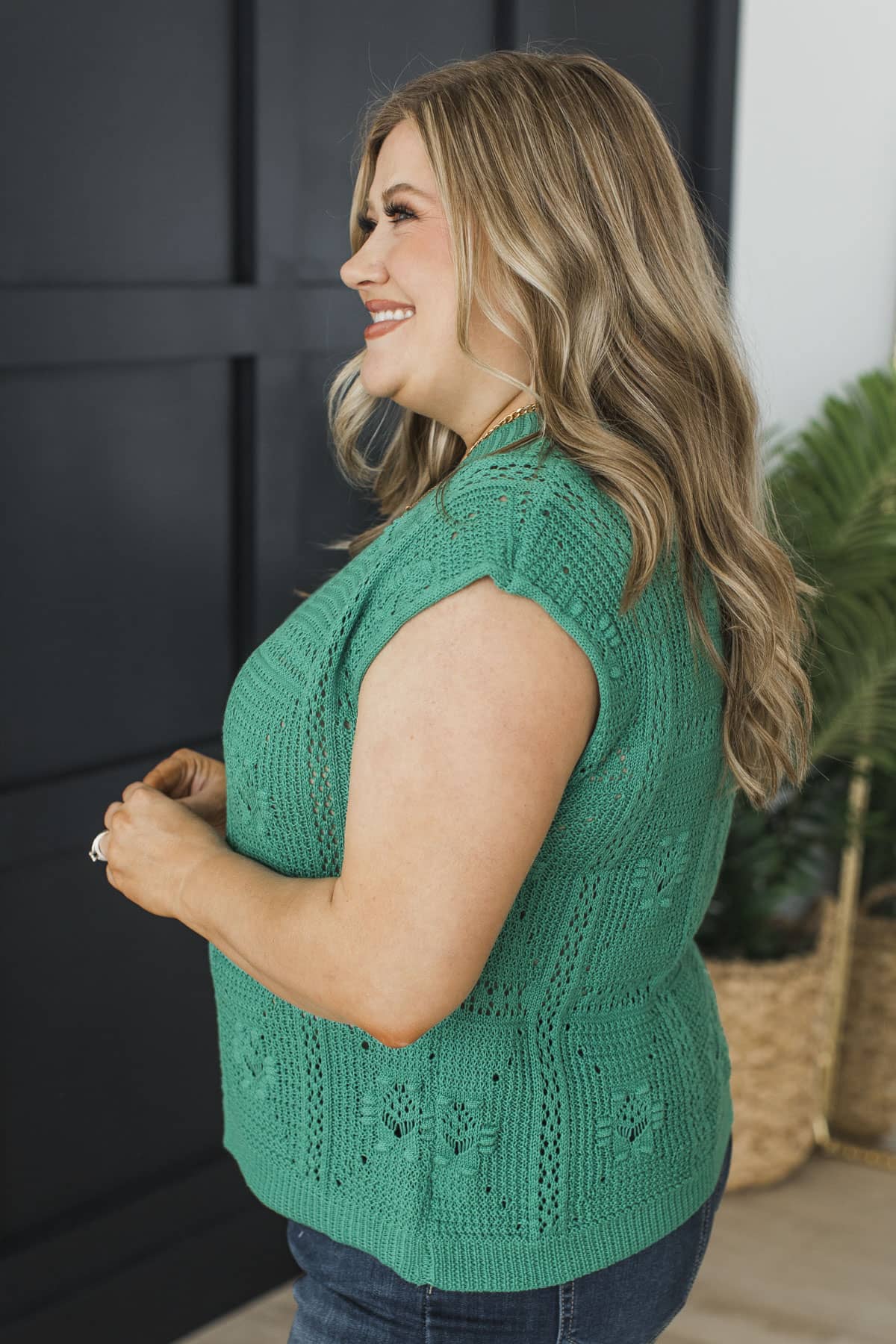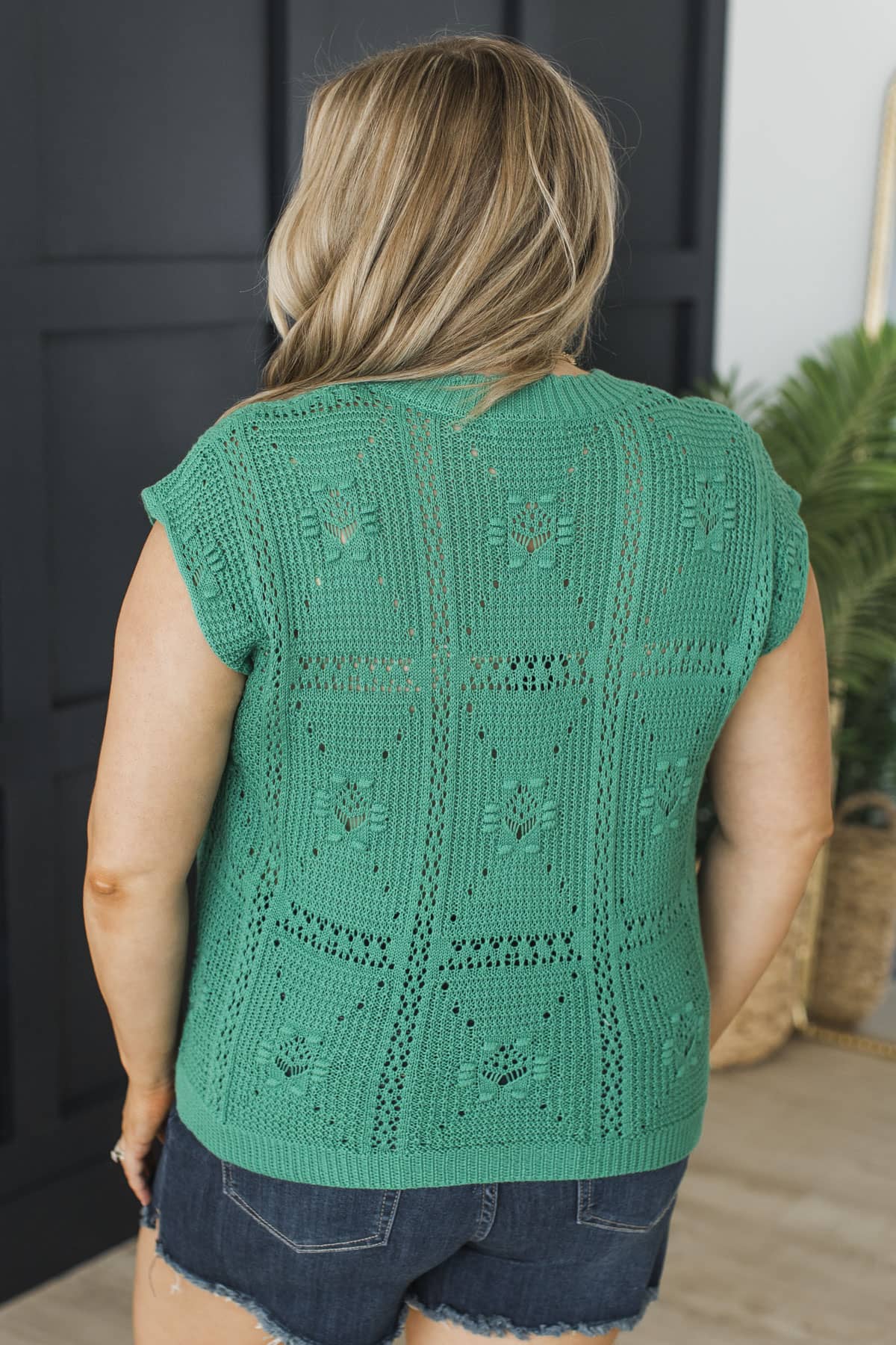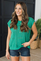 Good Idea Cap Sleeve Crochet Knit Top- Jade Green