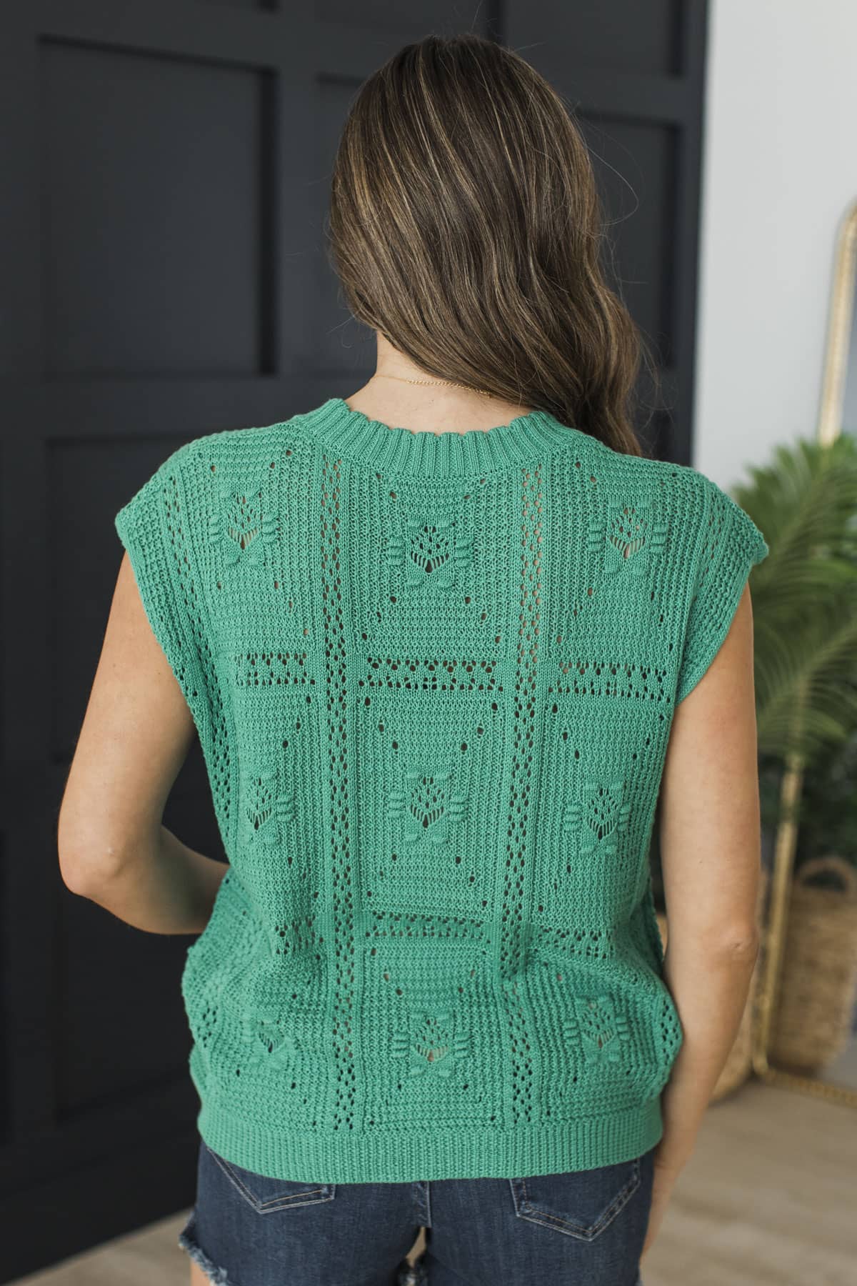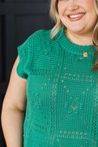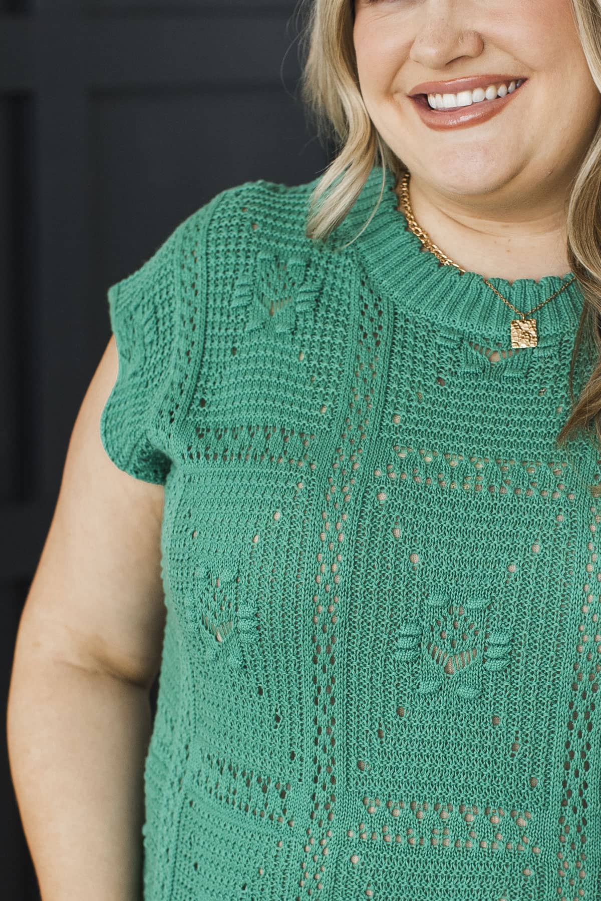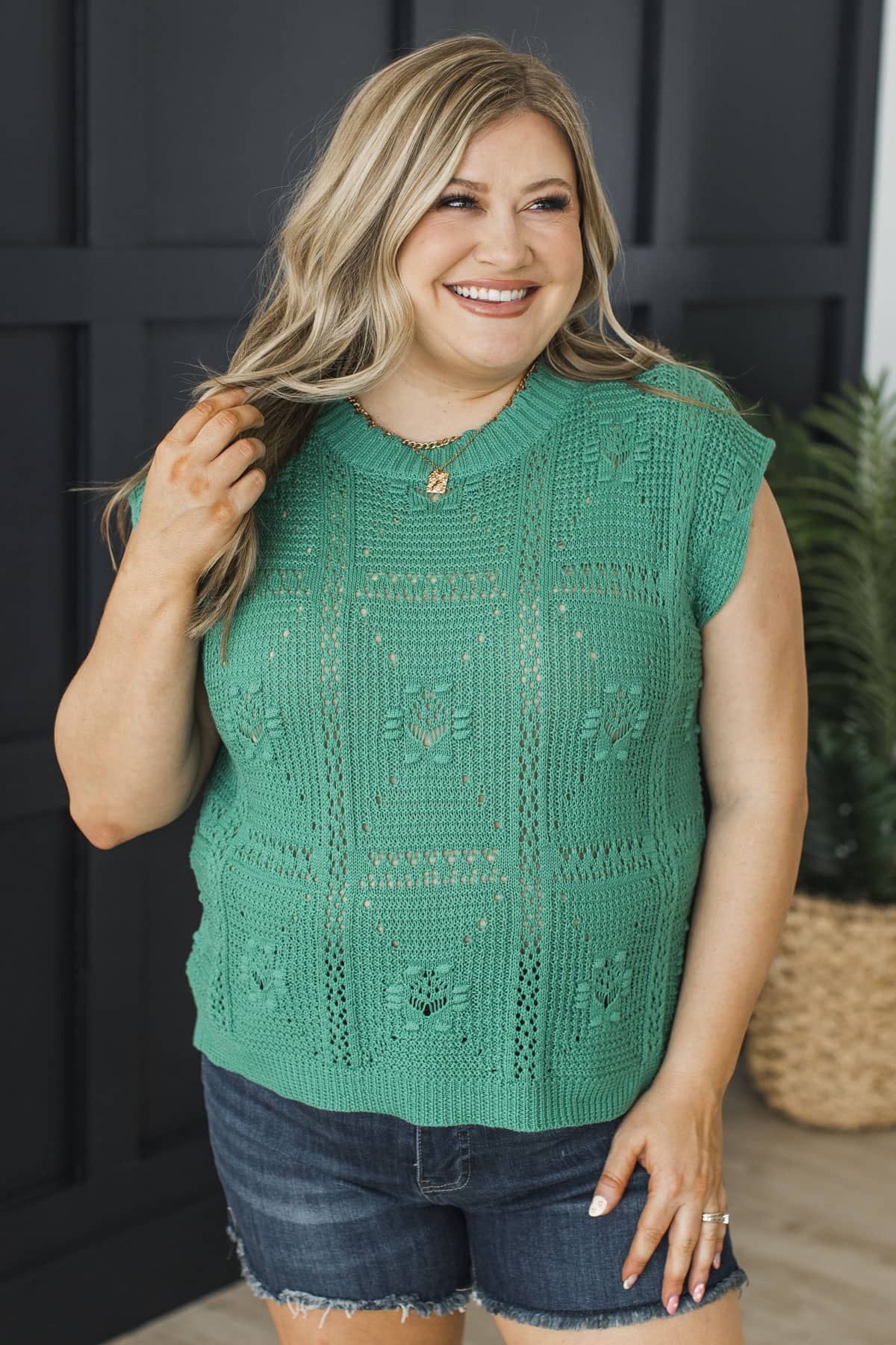 Good Idea Cap Sleeve Crochet Knit Top- Jade Green