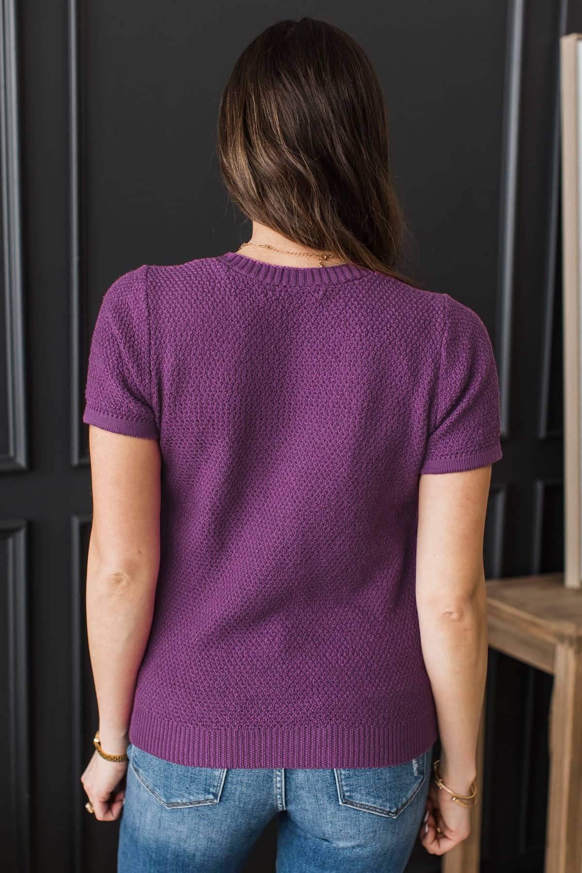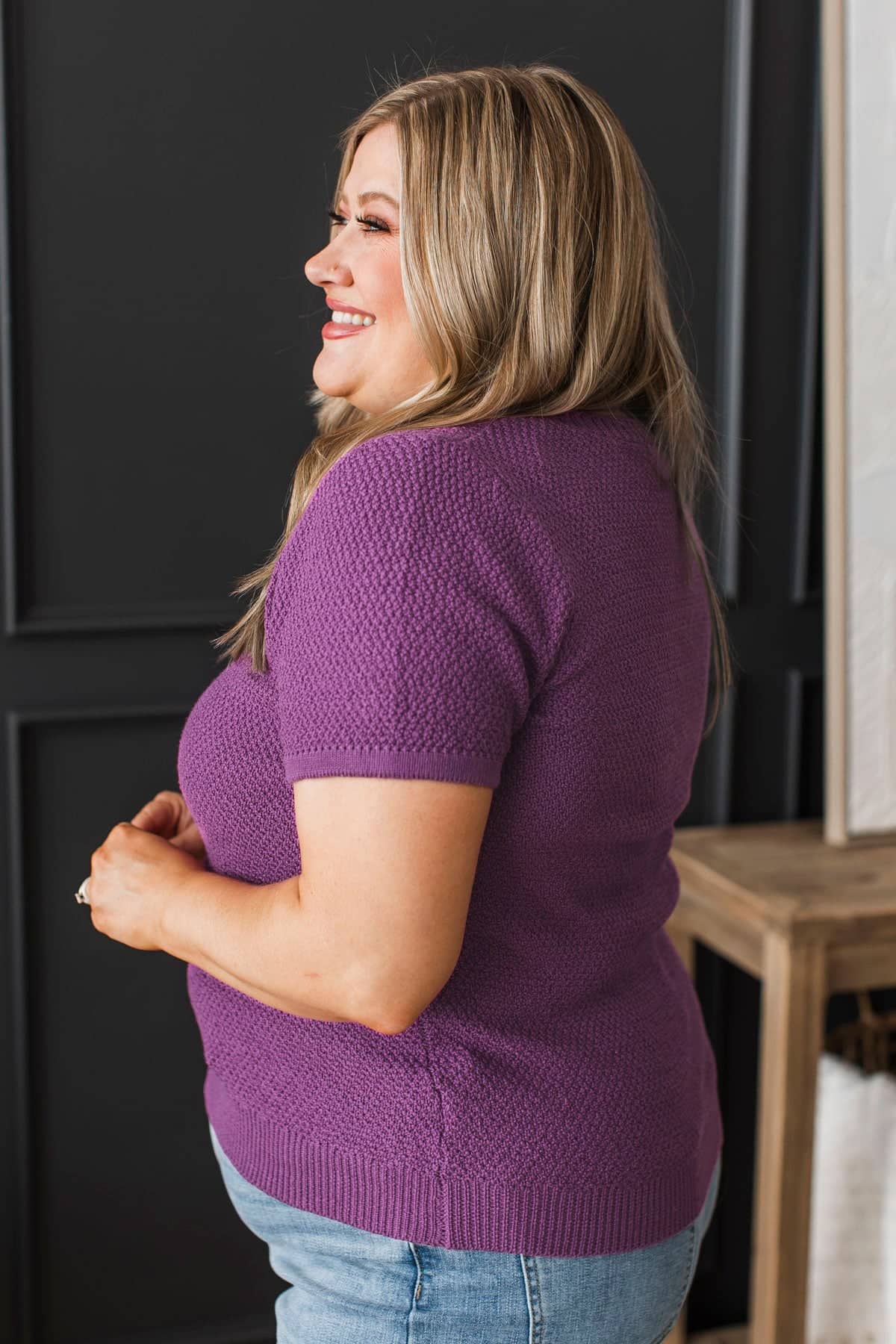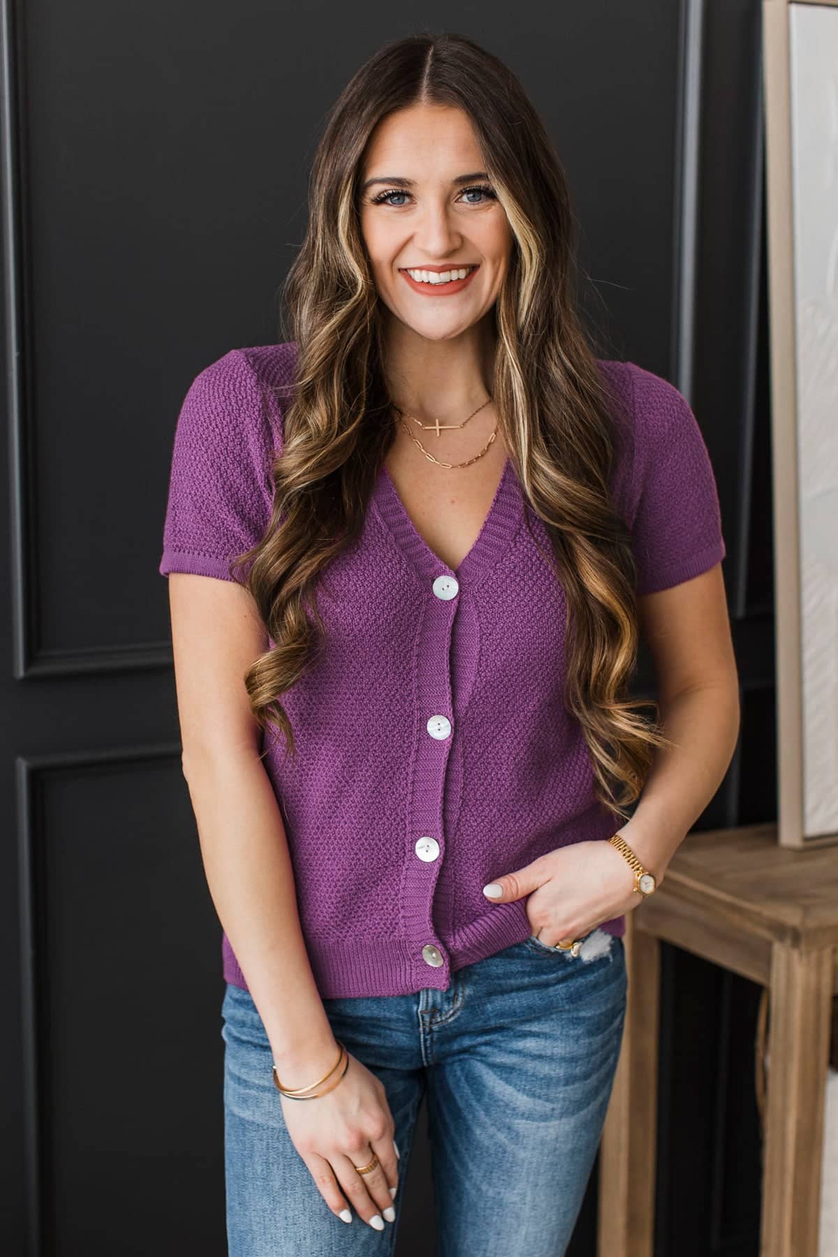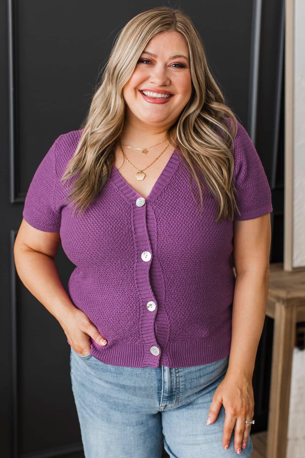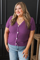 Ground Breaking Short Sleeve Button Cardigan- Dark Orchid
