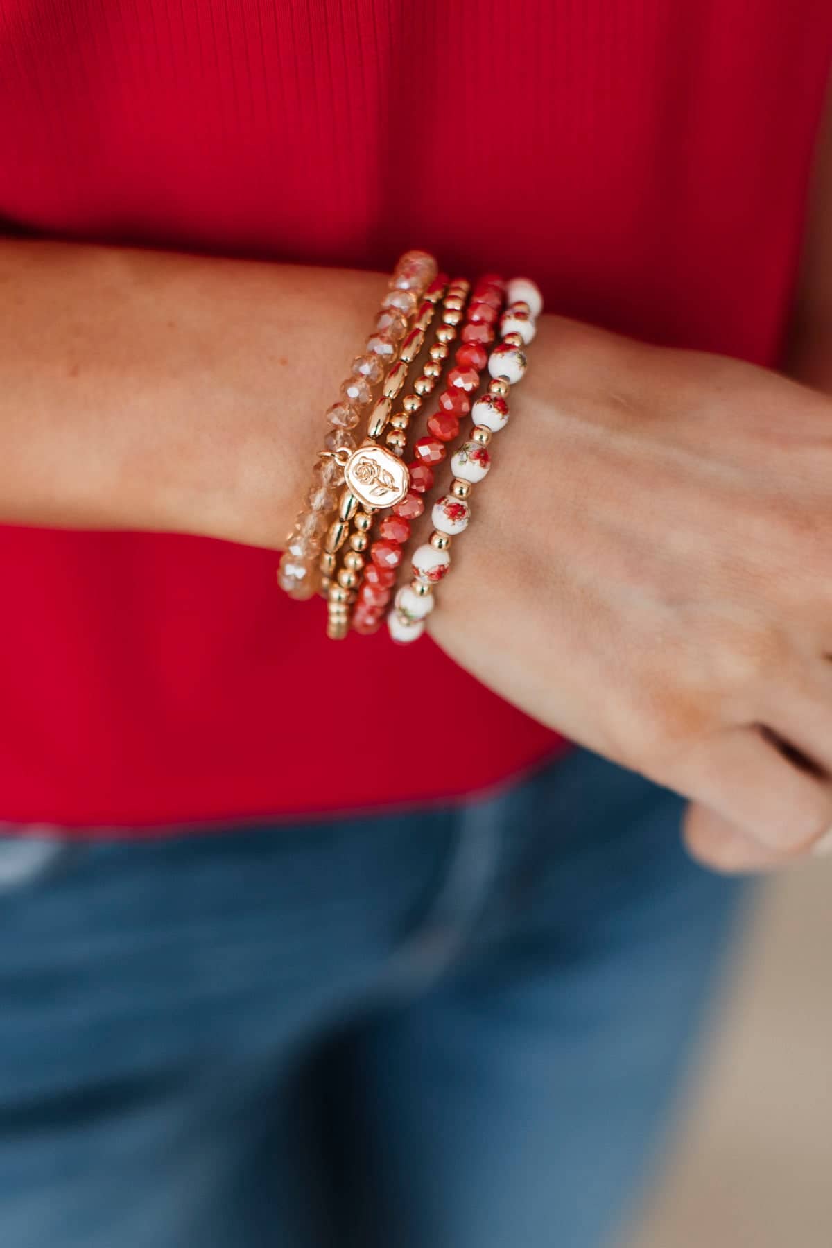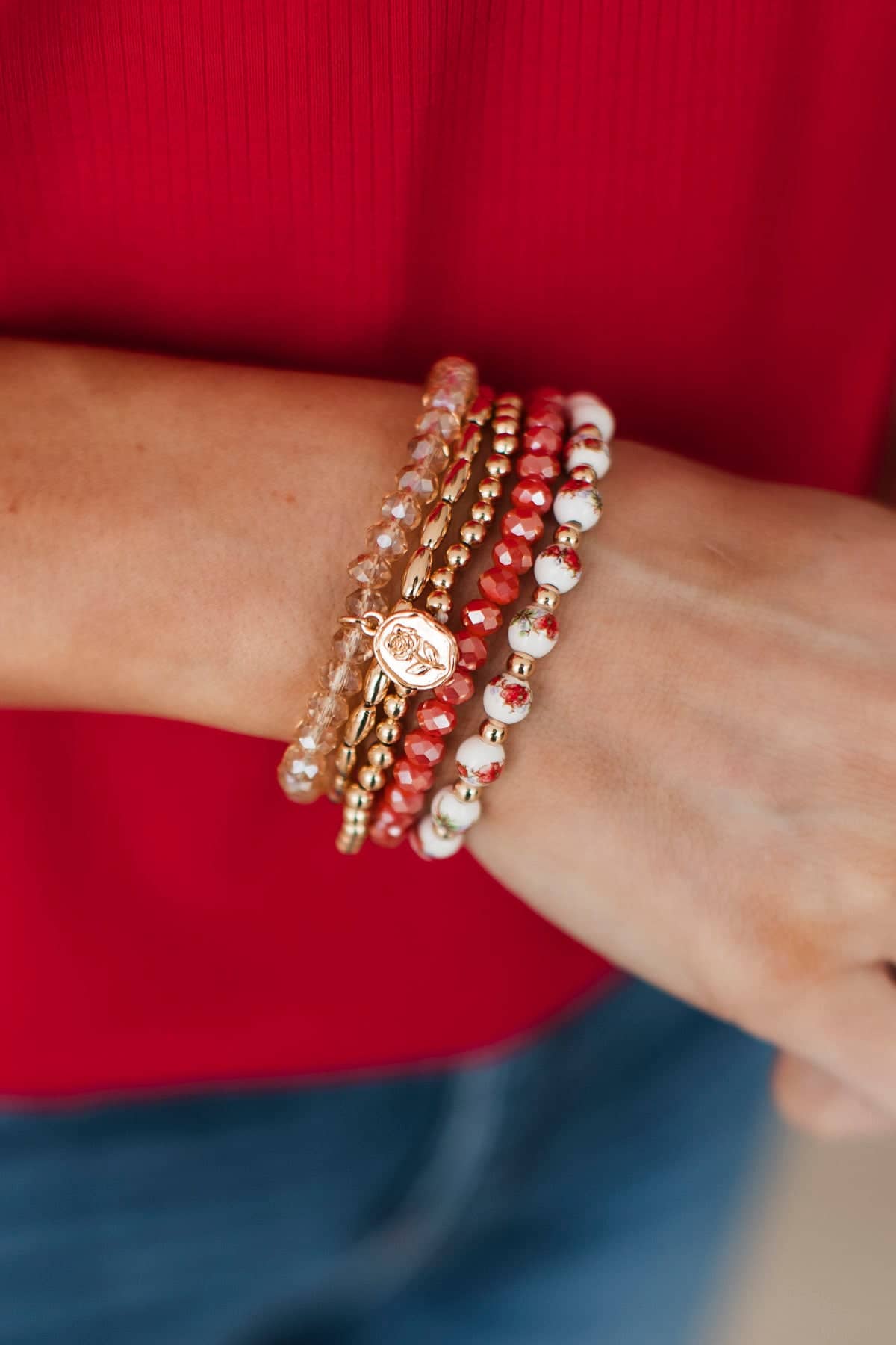 Heart Full of Gold Beaded Bracelet Set- Coral