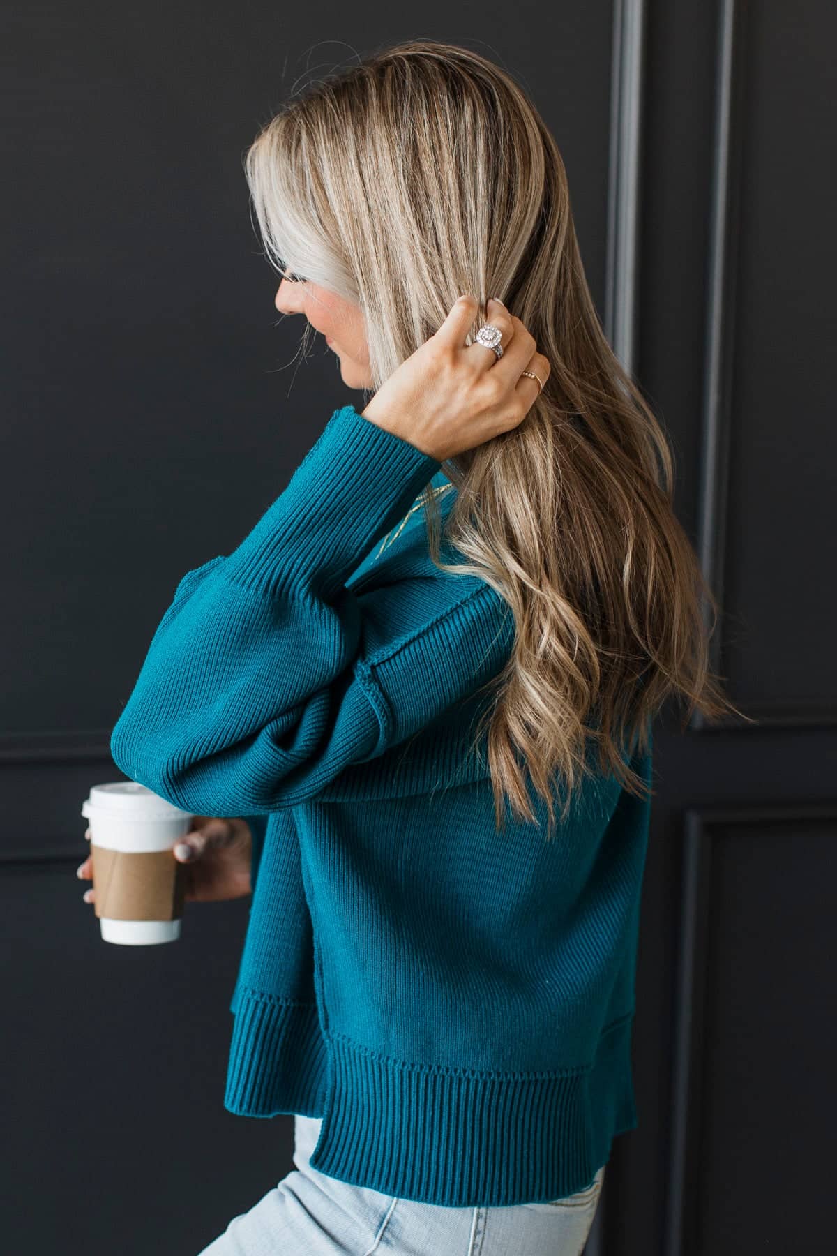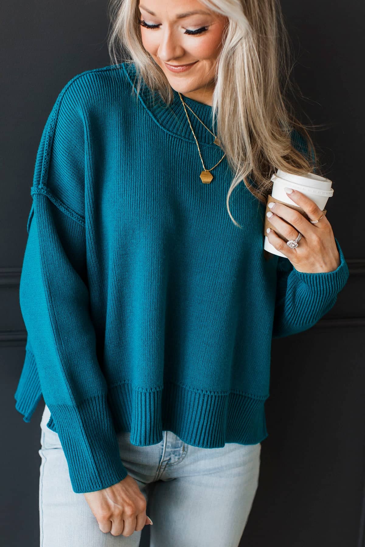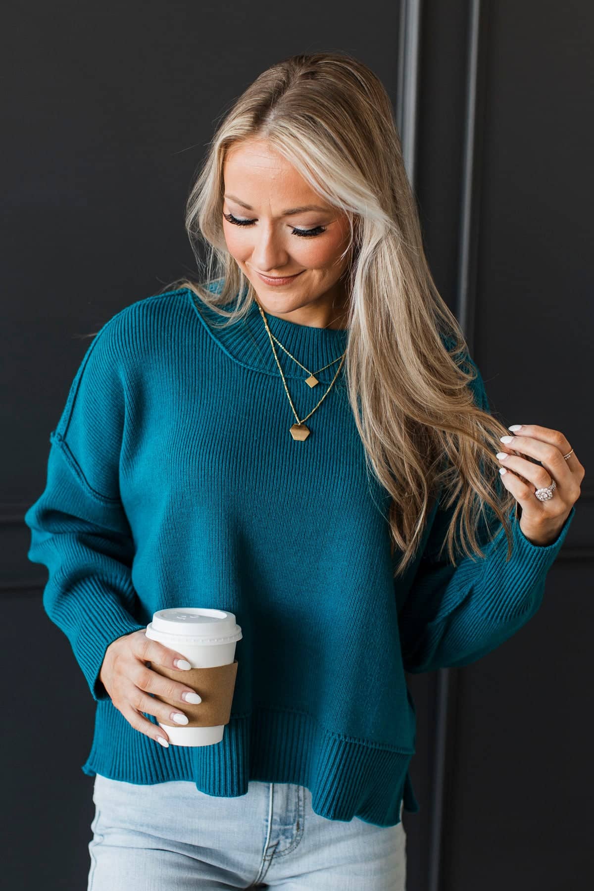 Here To Stay Ribbed Knit Sweater- Dark Teal