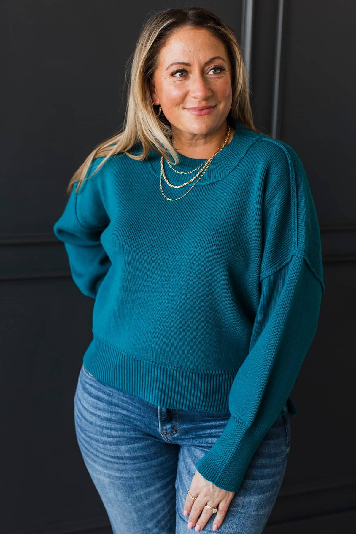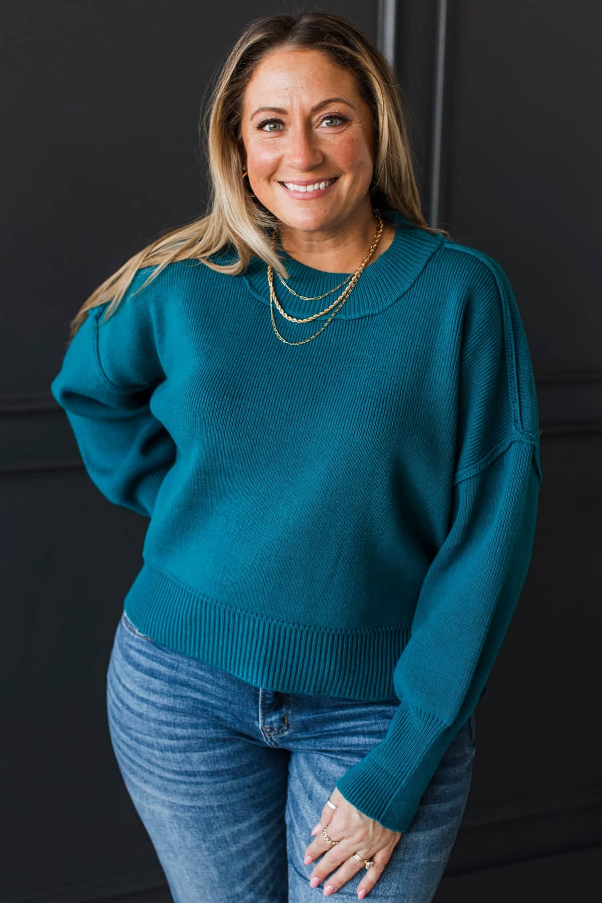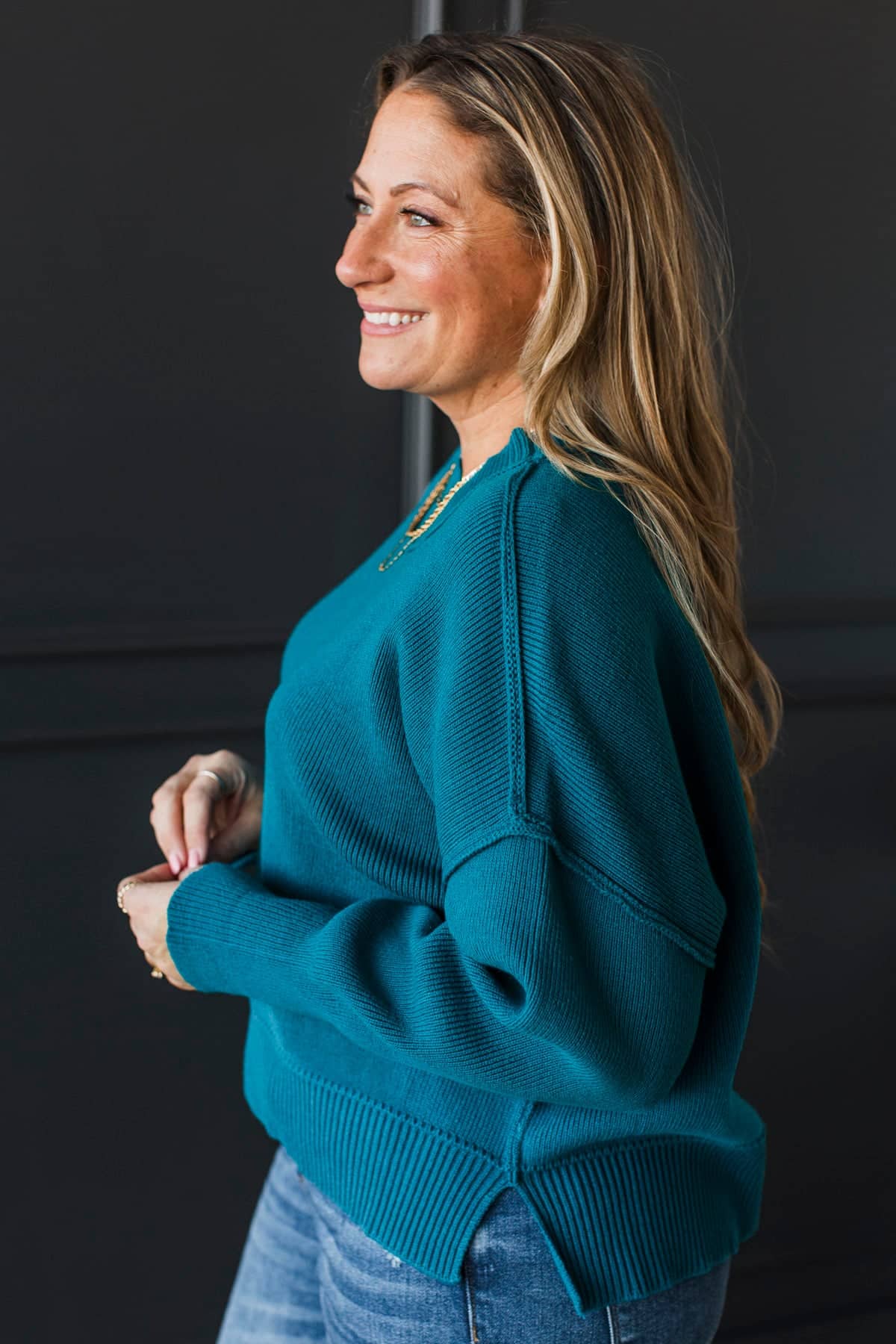Here To Stay Ribbed Knit Sweater- Dark Teal
