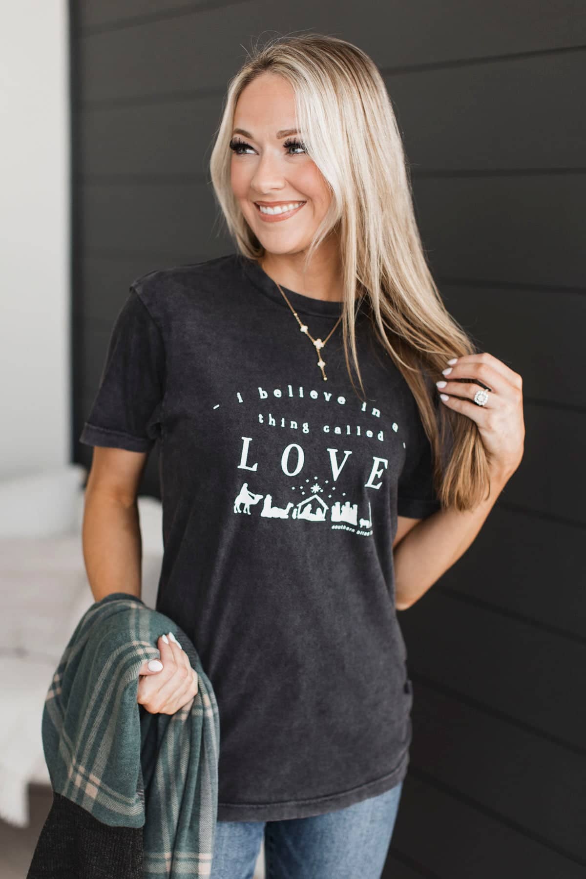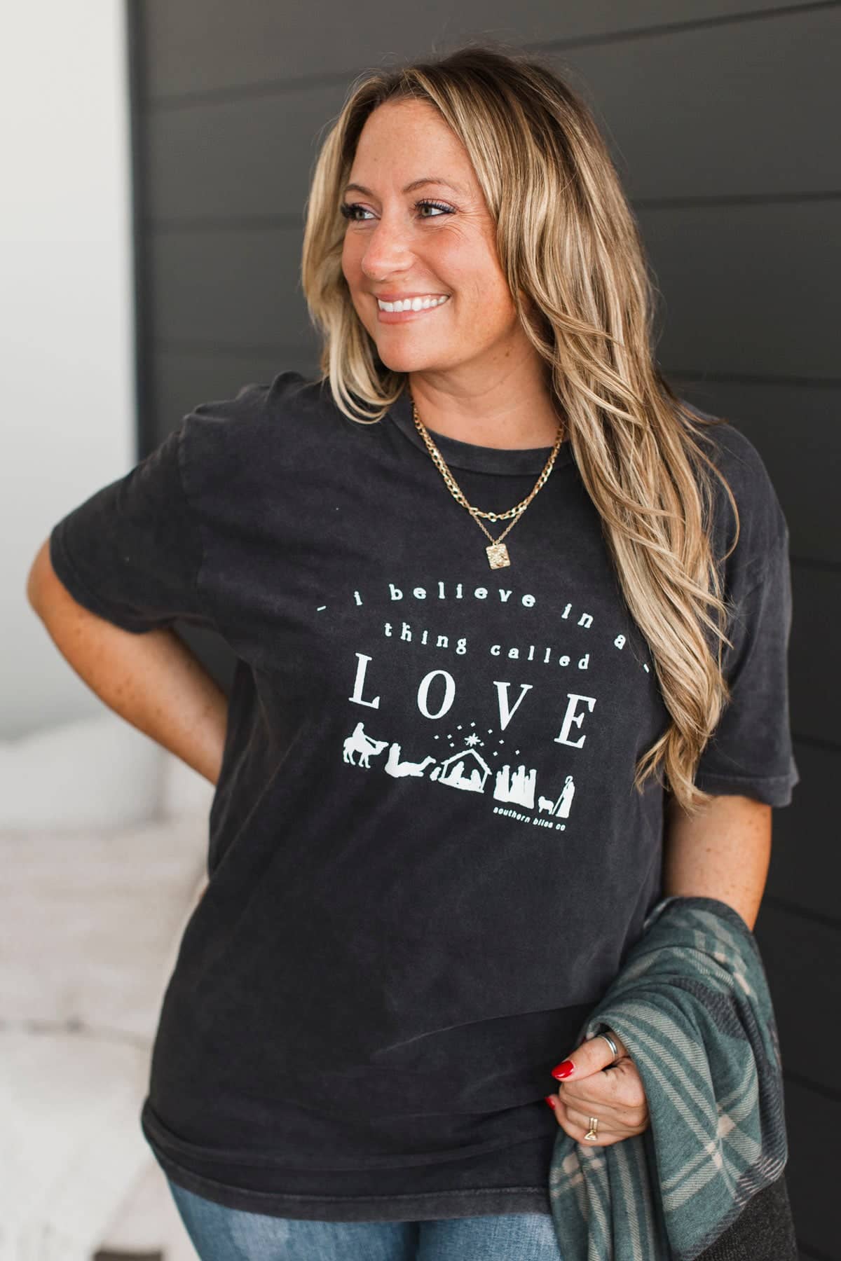 "I Believe In A Thing Called Love" Graphic Tee- Black