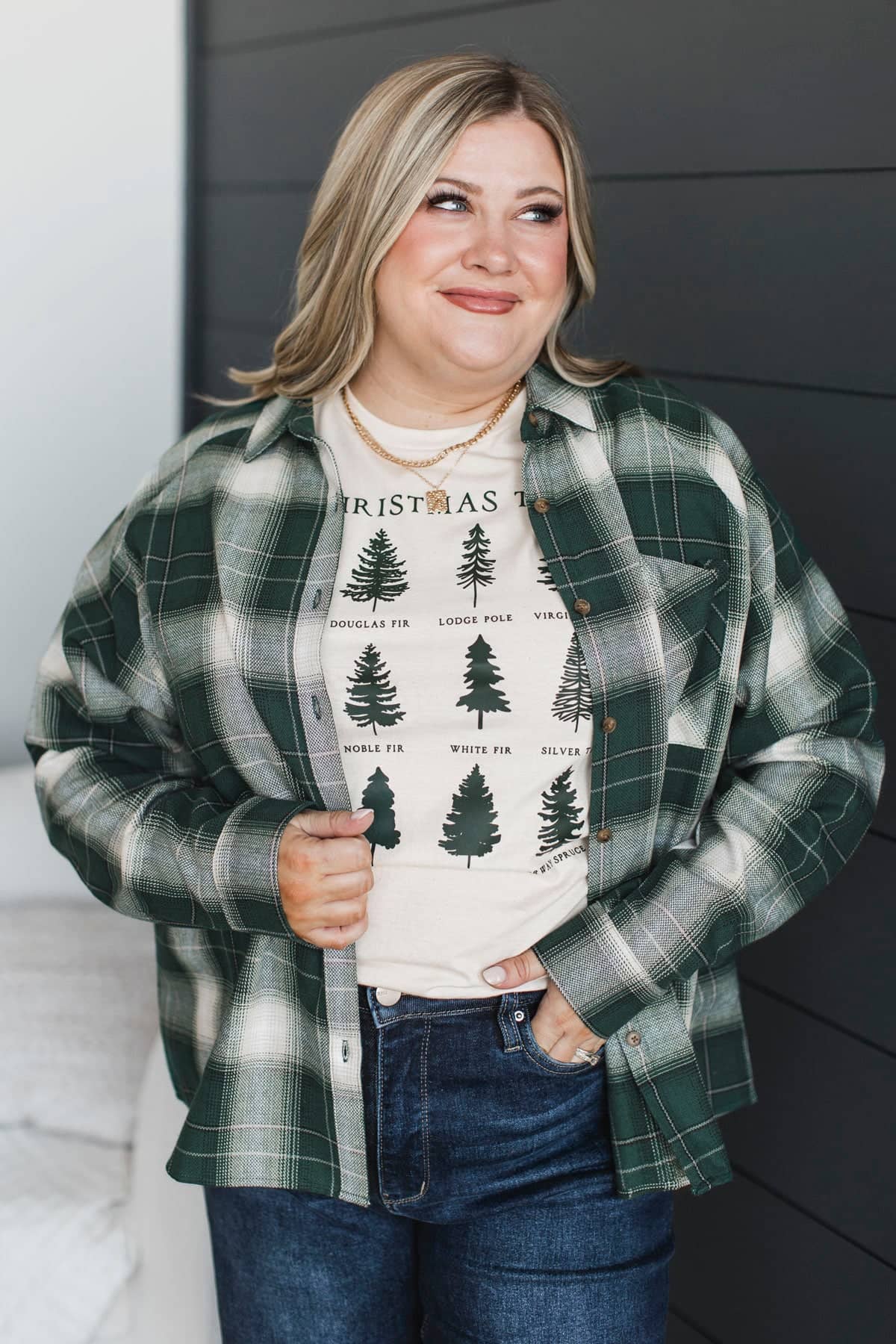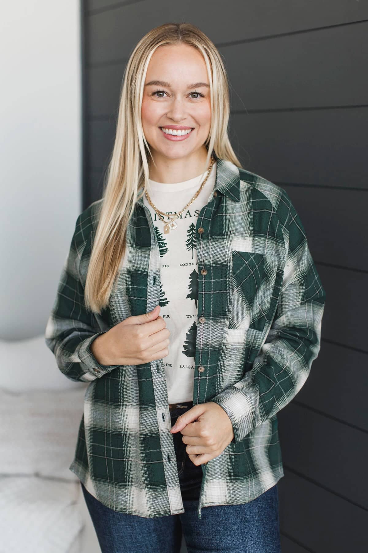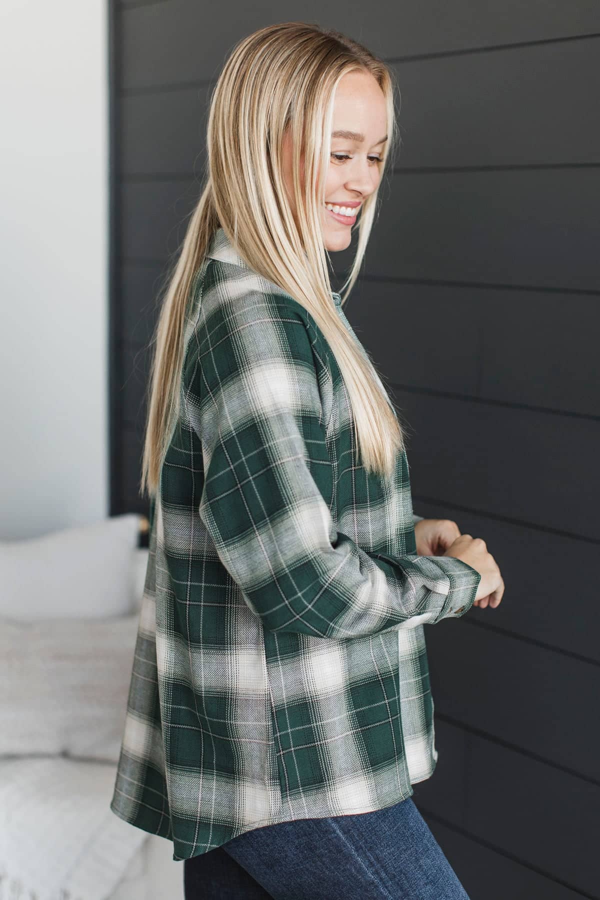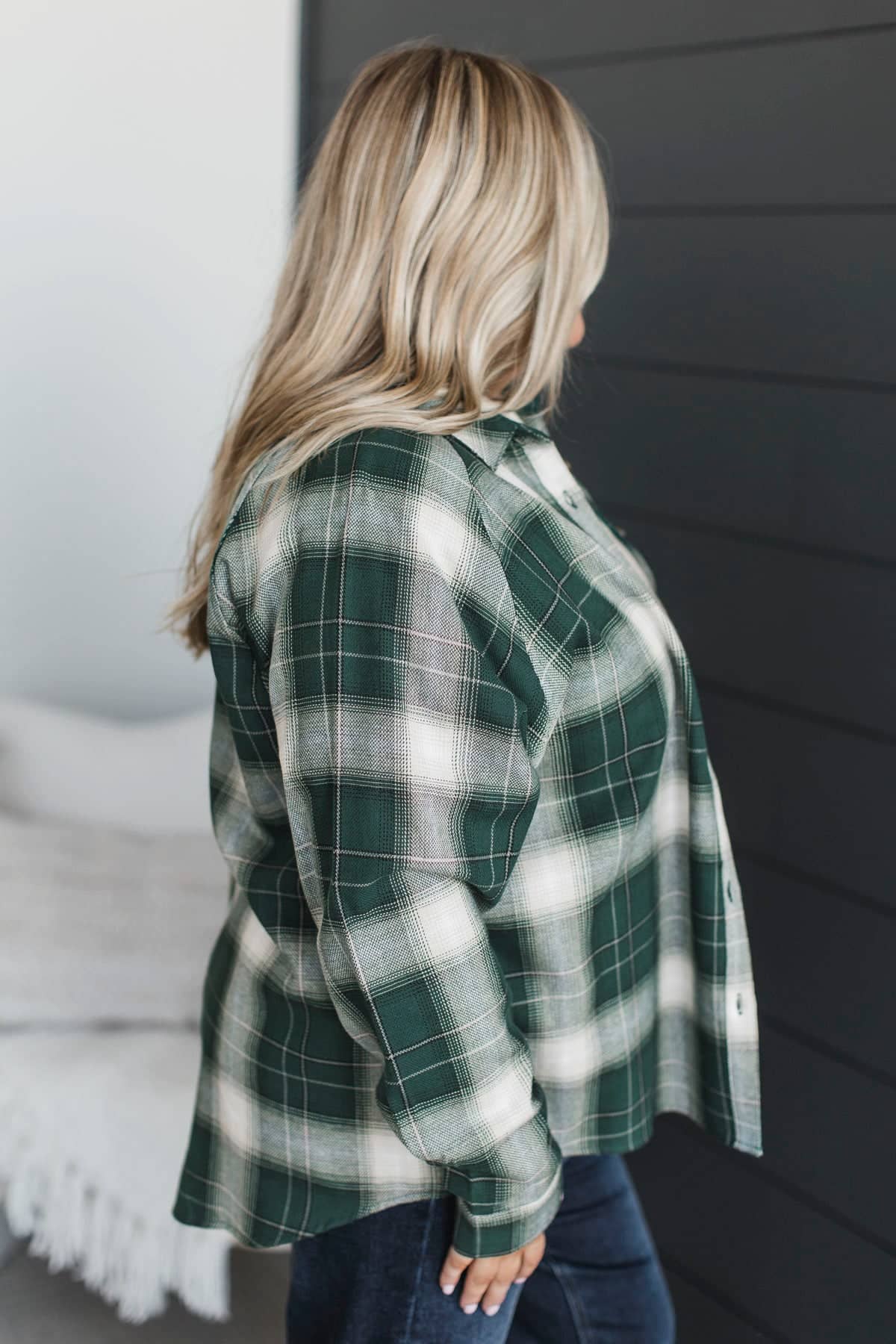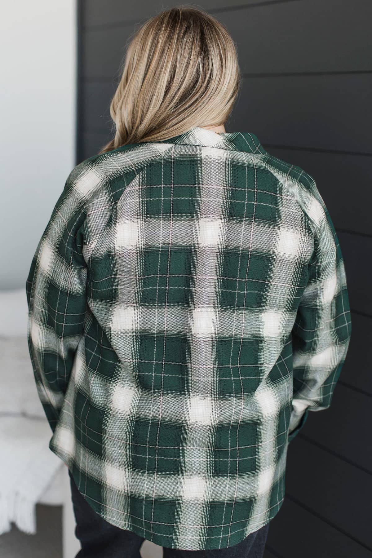 In Abundance Plaid Button Top- Hunter Green