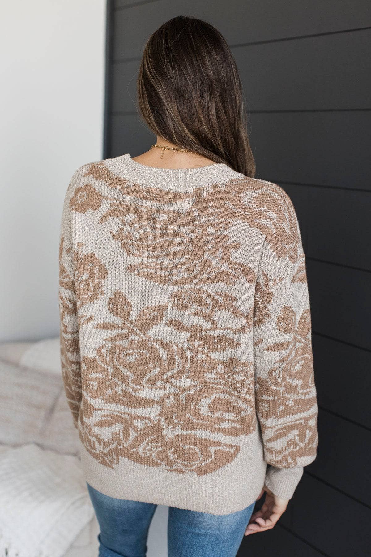 Inspiring Feelings Floral Knit Sweater- Taupe
