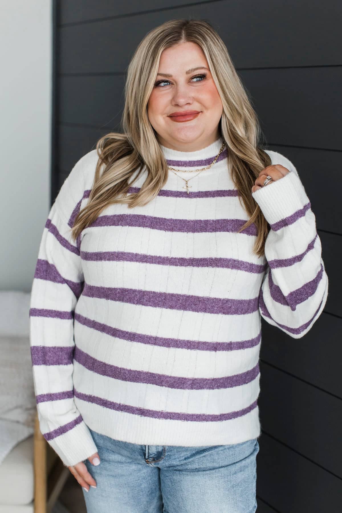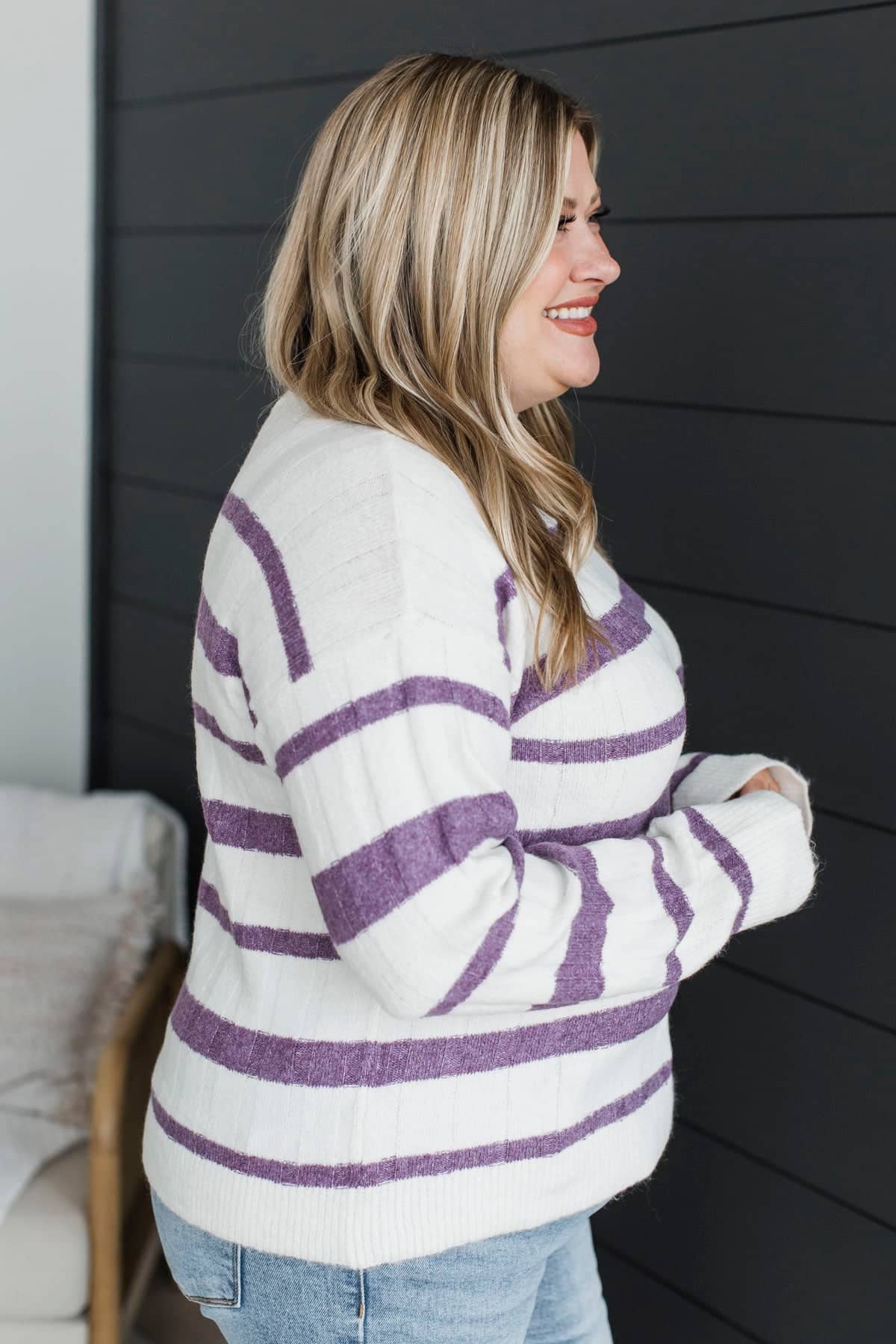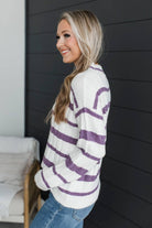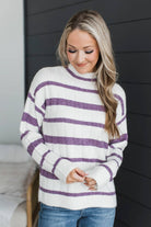 Life Is Now Striped Knit Sweater- Ivory & Purple