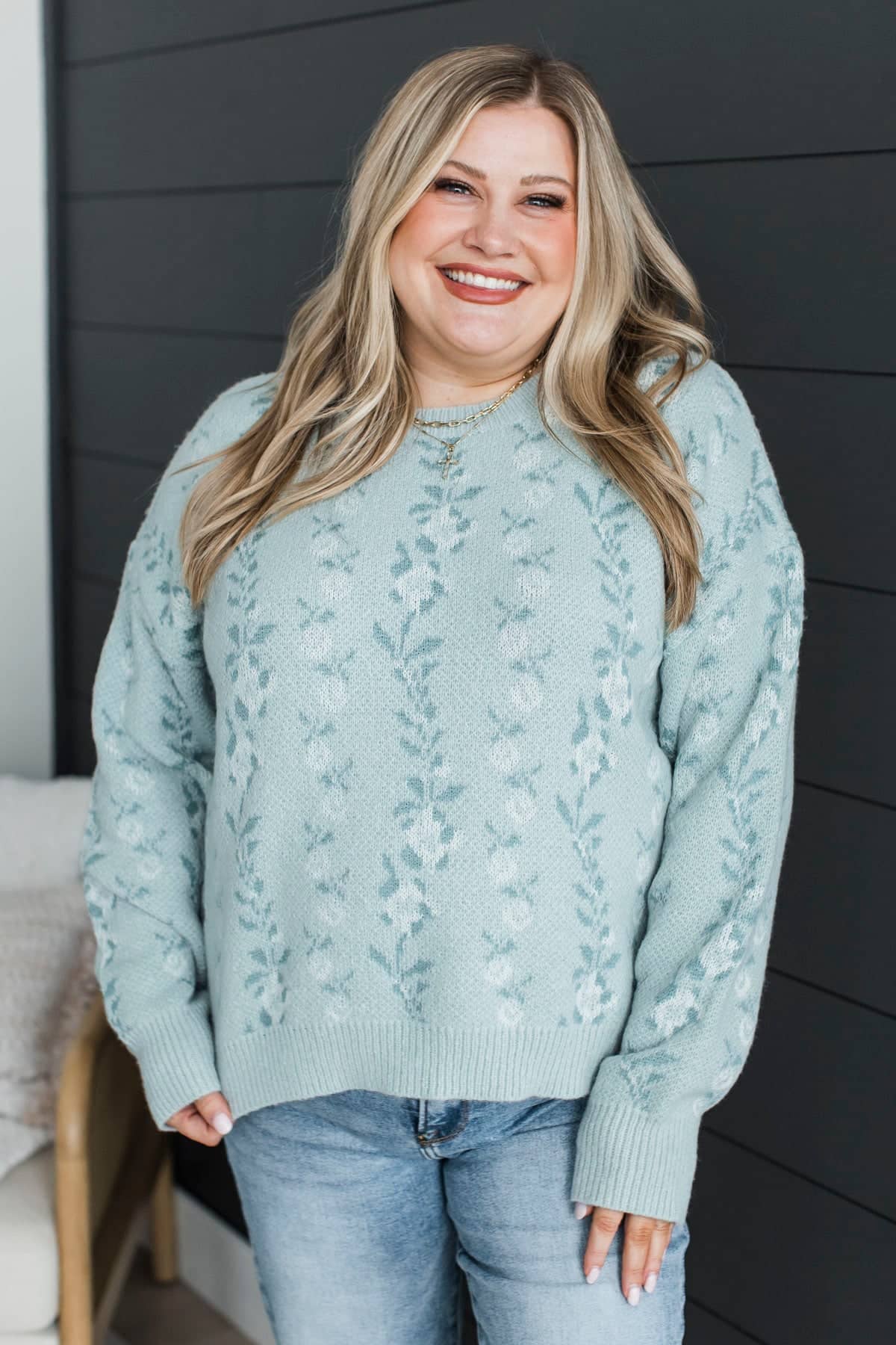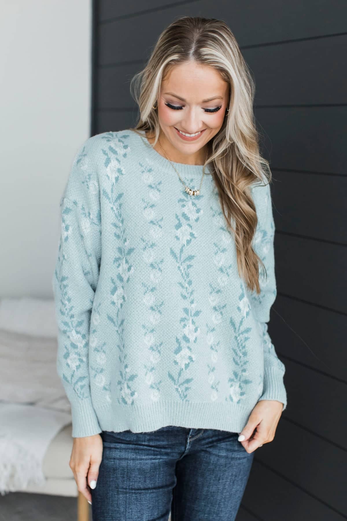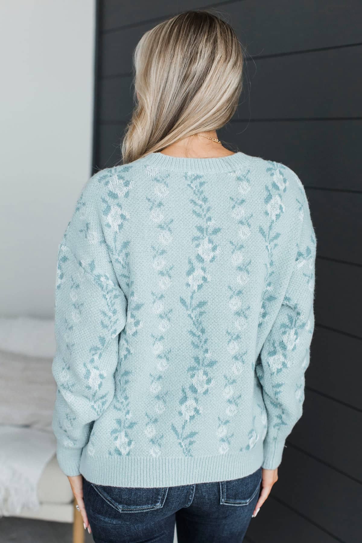 Little Joys Floral Stripe Knit Sweater- Dusty Mint