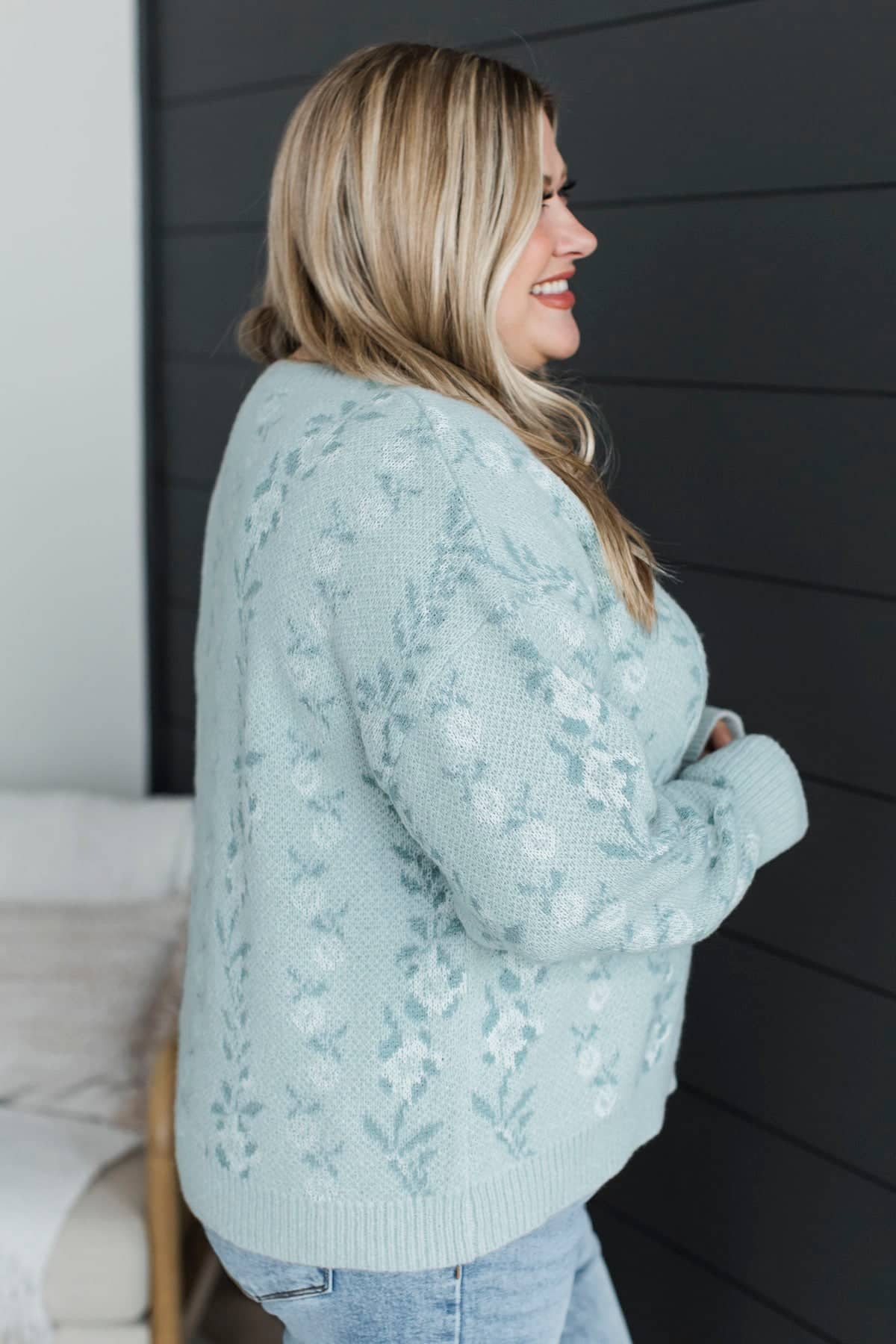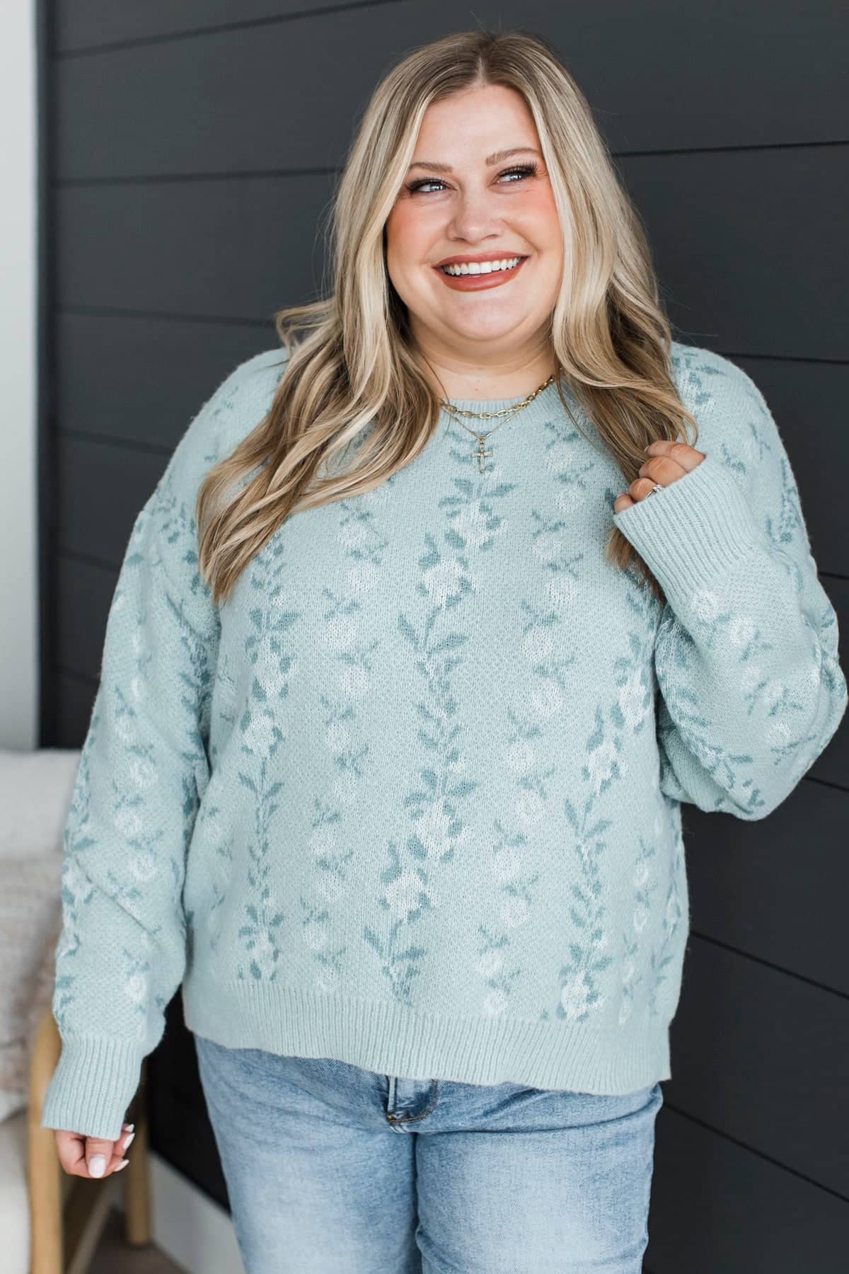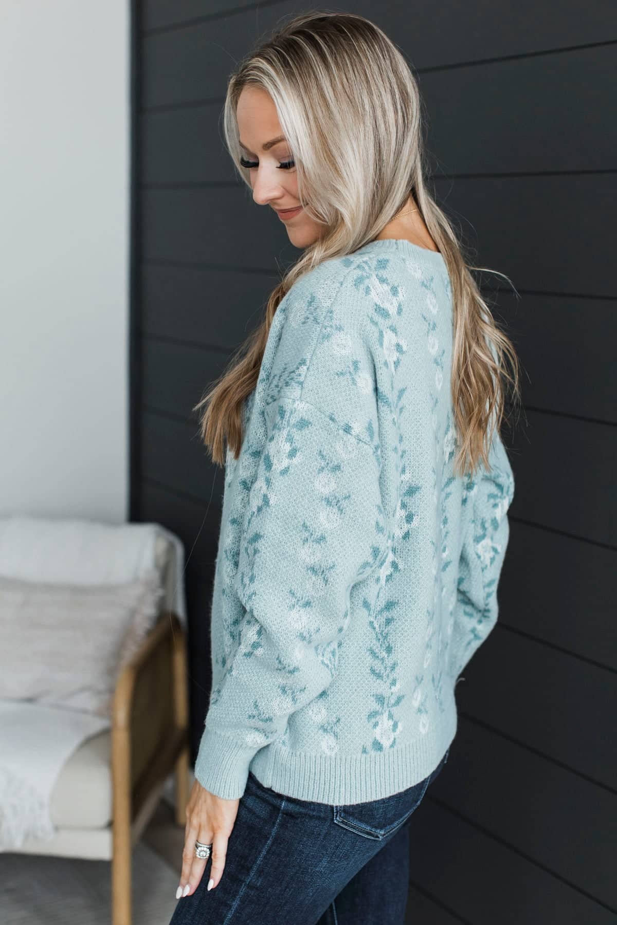 Little Joys Floral Stripe Knit Sweater- Dusty Mint