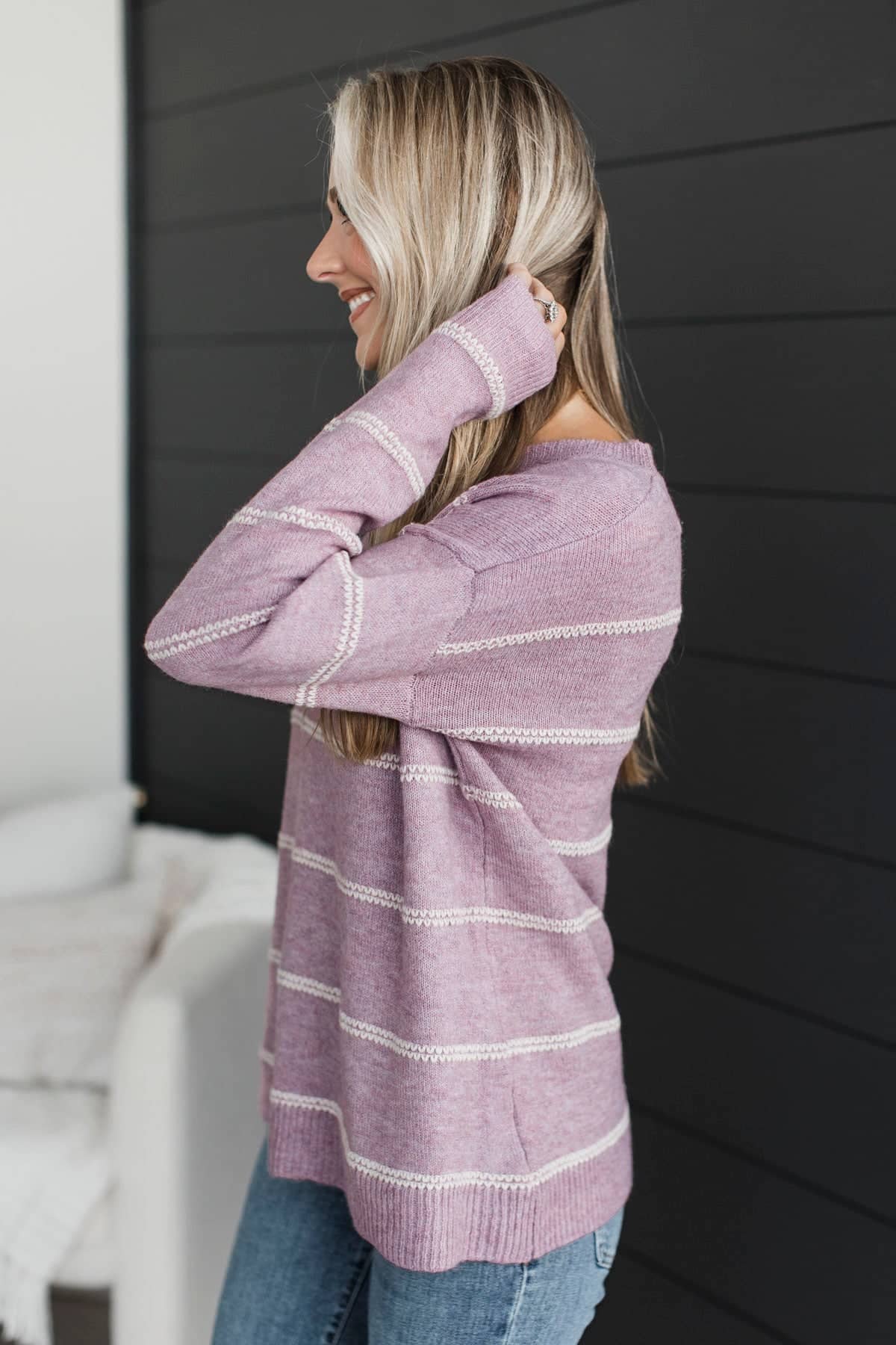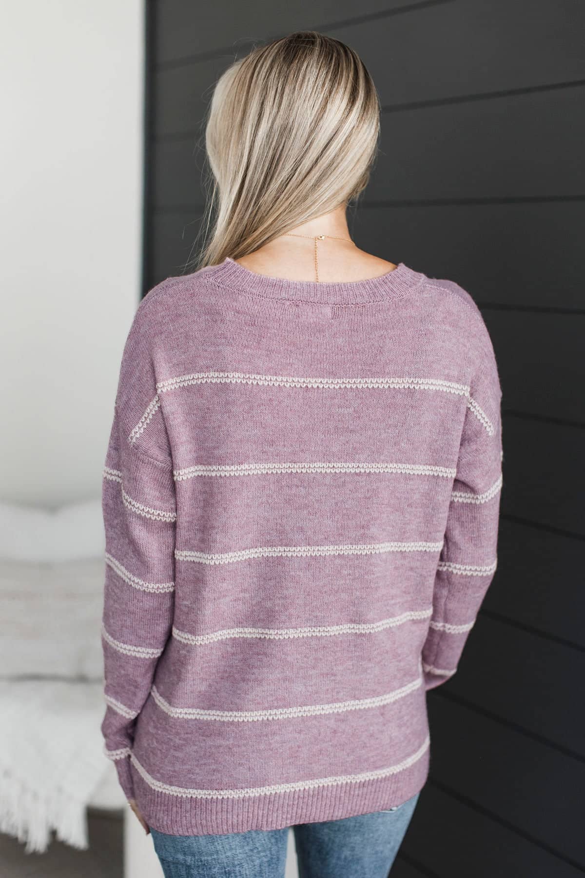 Looking Marvelous Striped Sweater- Dusty Lilac