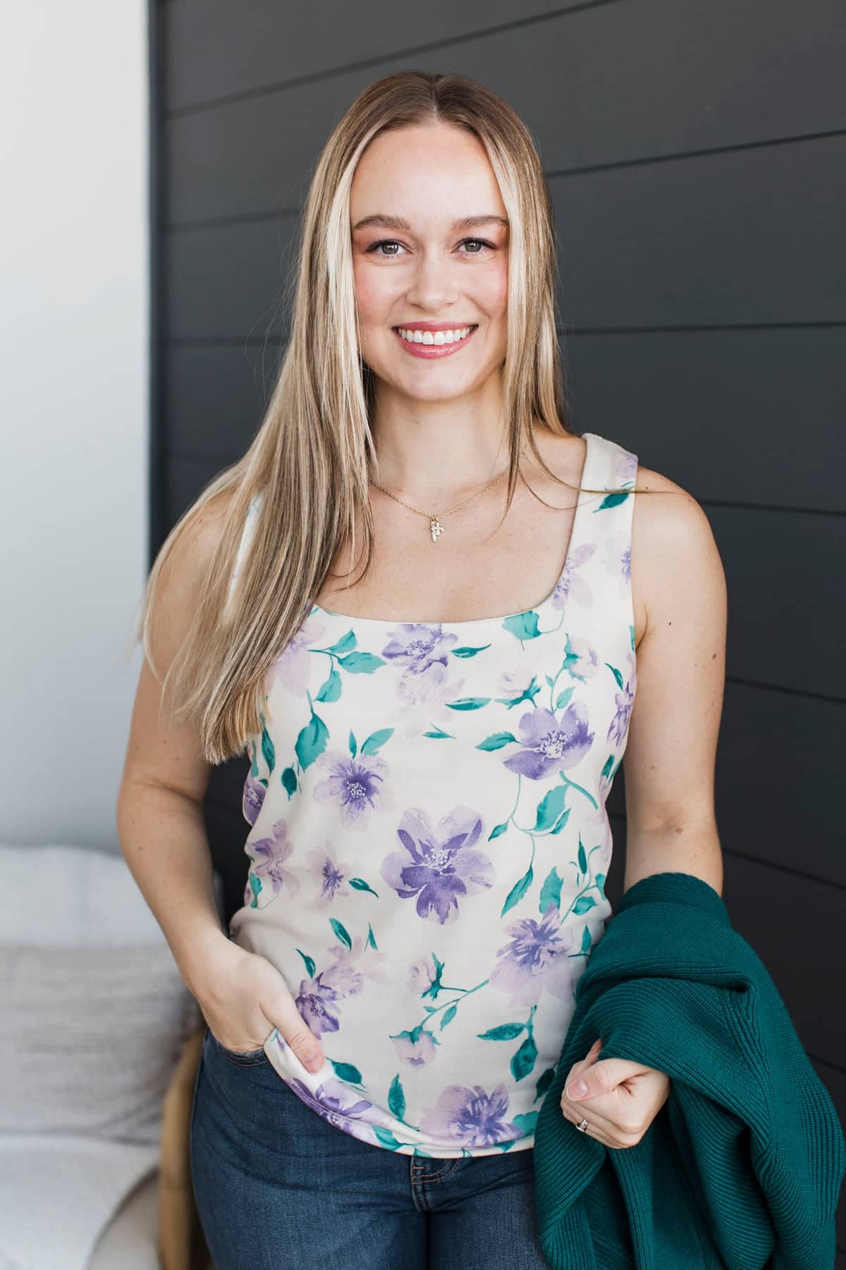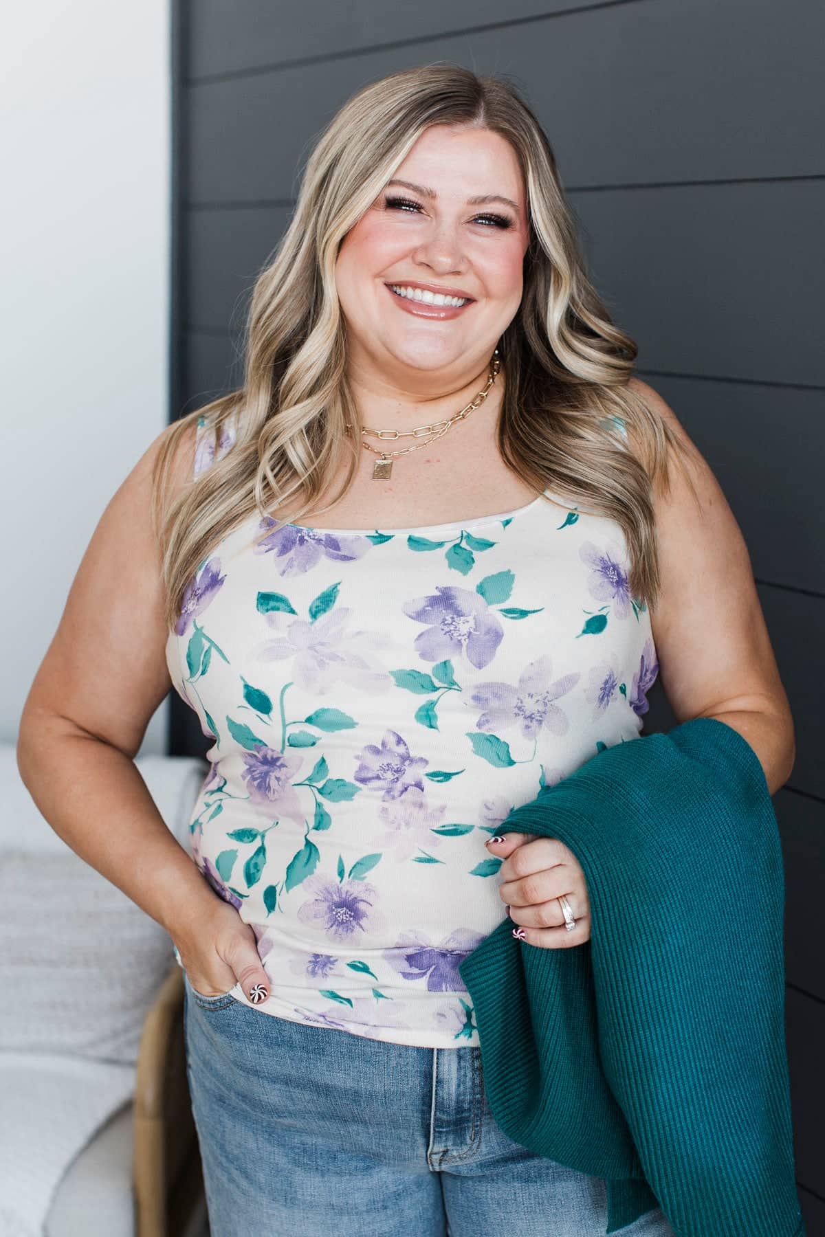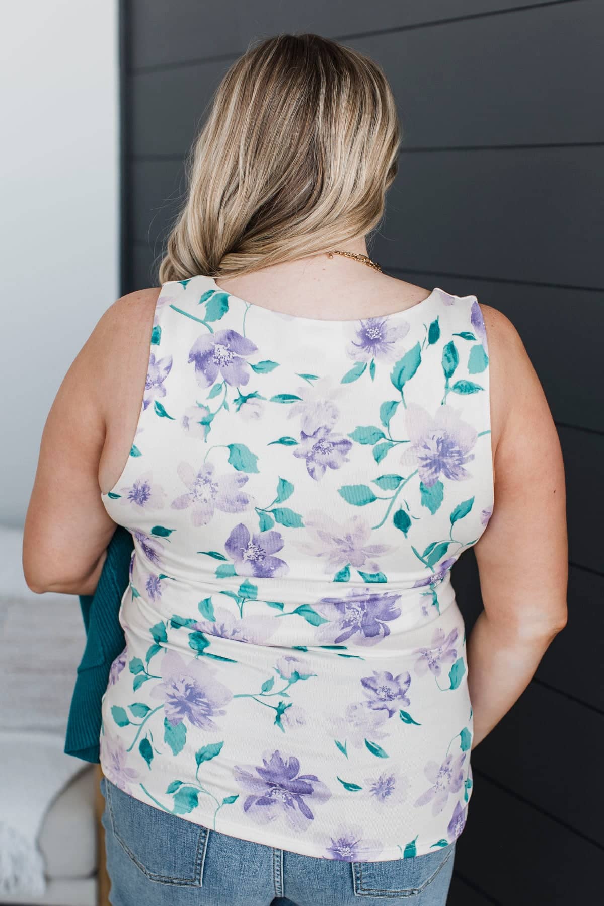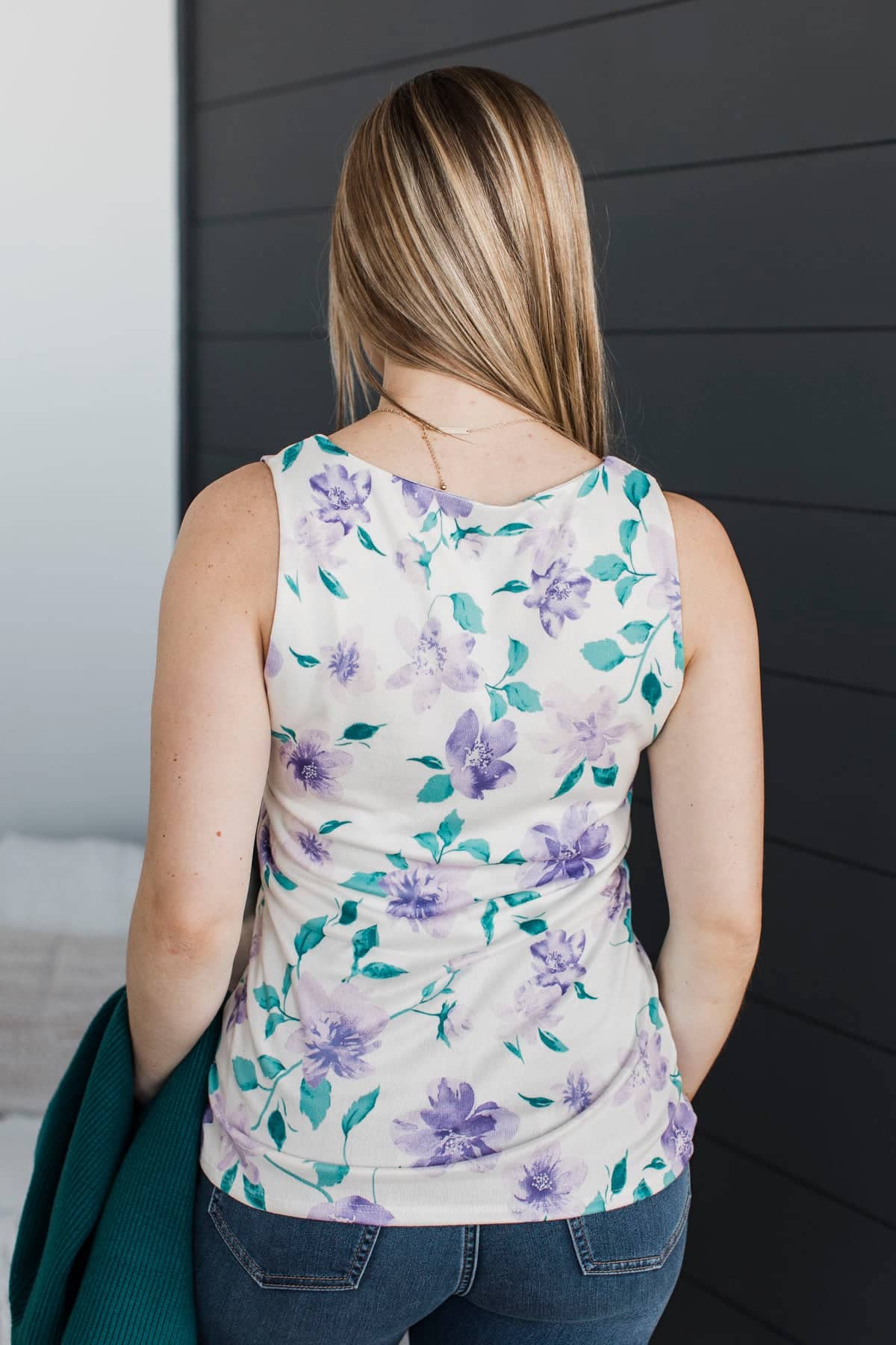 Love & Laughter Floral Tank Top- Ivory & Violet