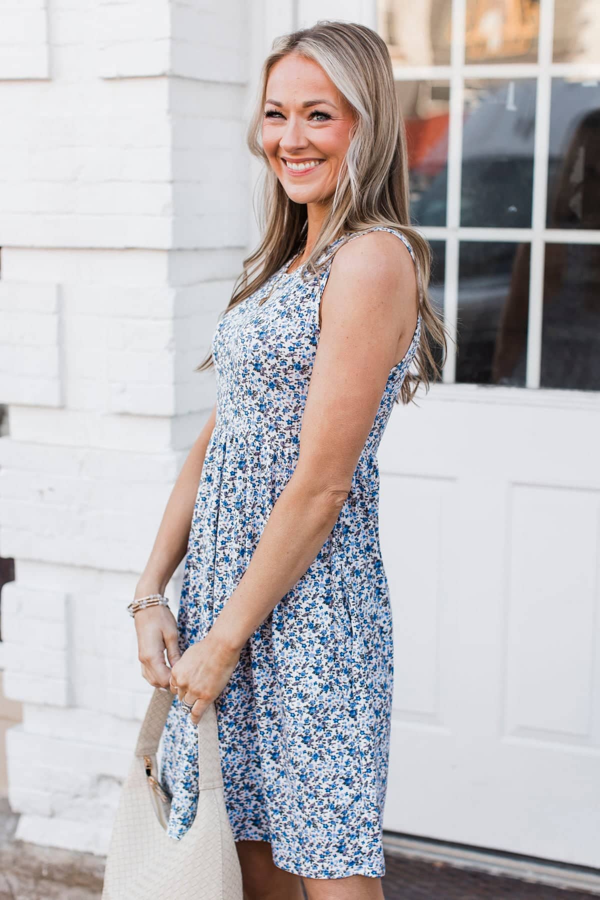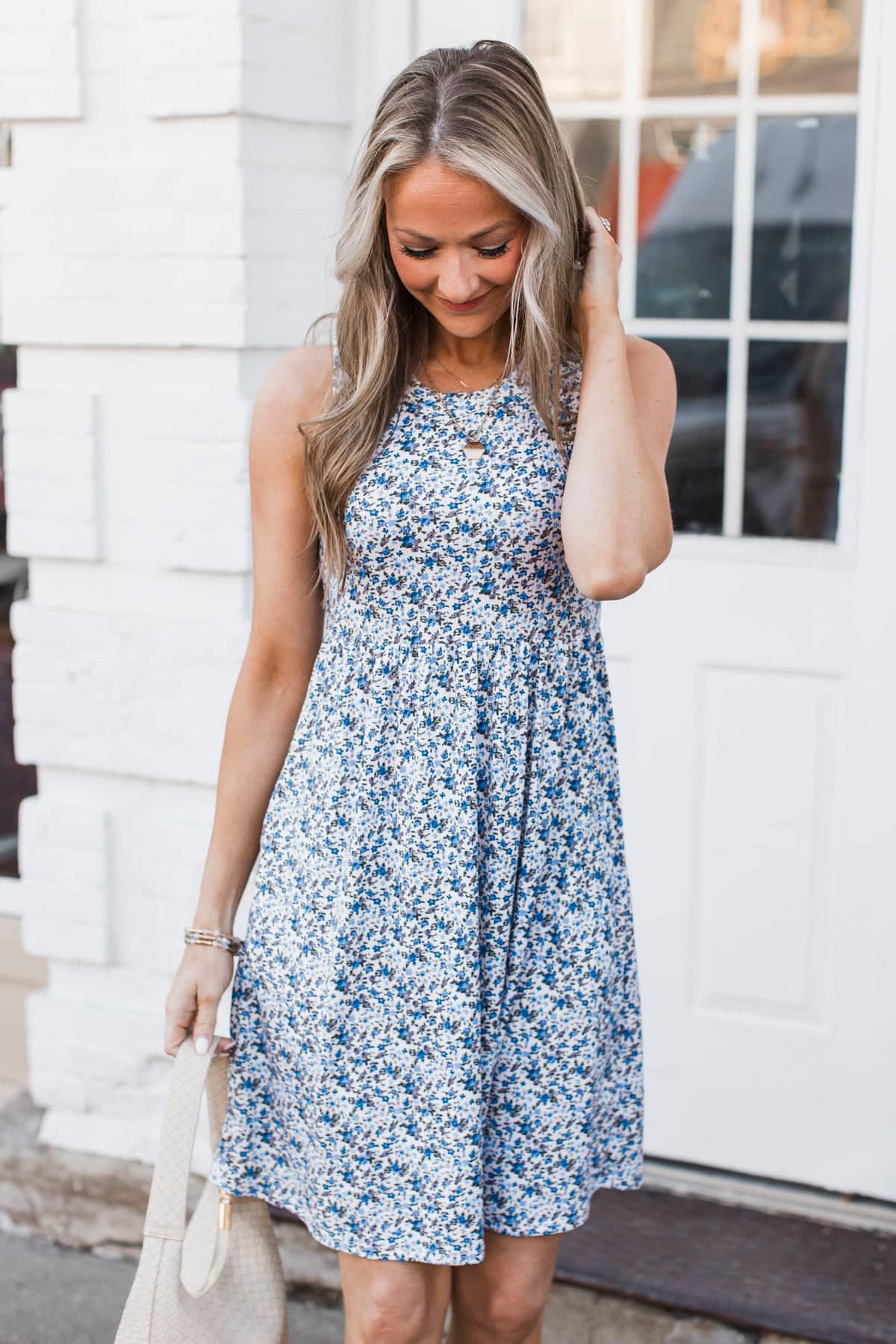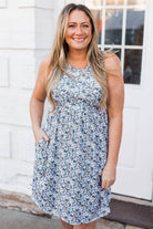 Loving This Feeling Floral Dress- Ivory & Blue