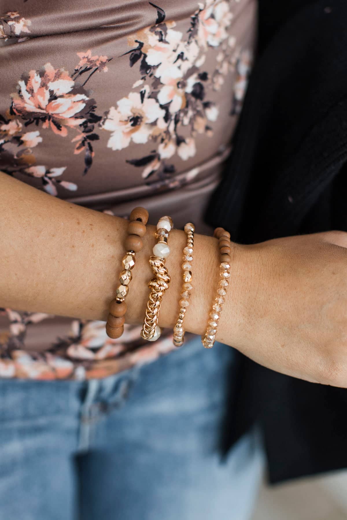 • 4-piece stackable bracelet set with stretchy elastic bands