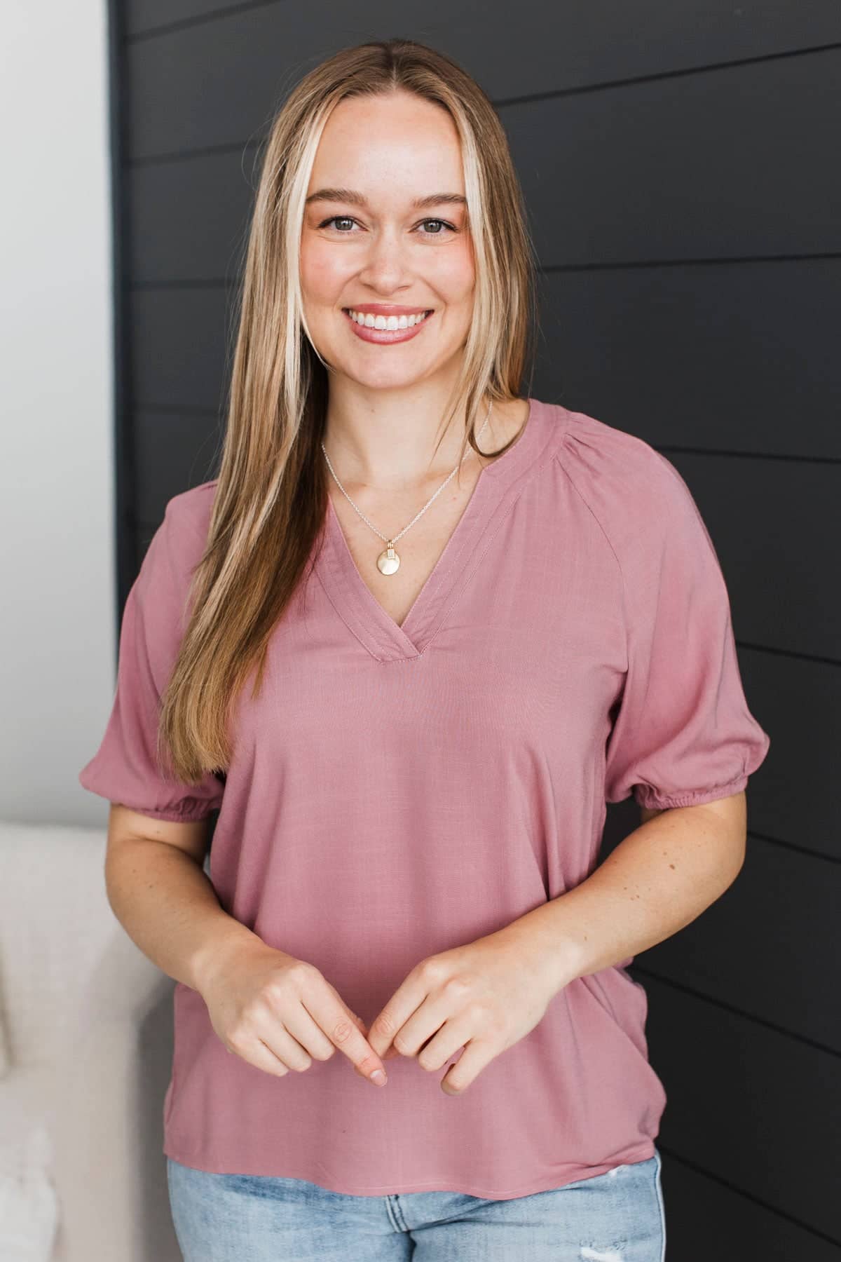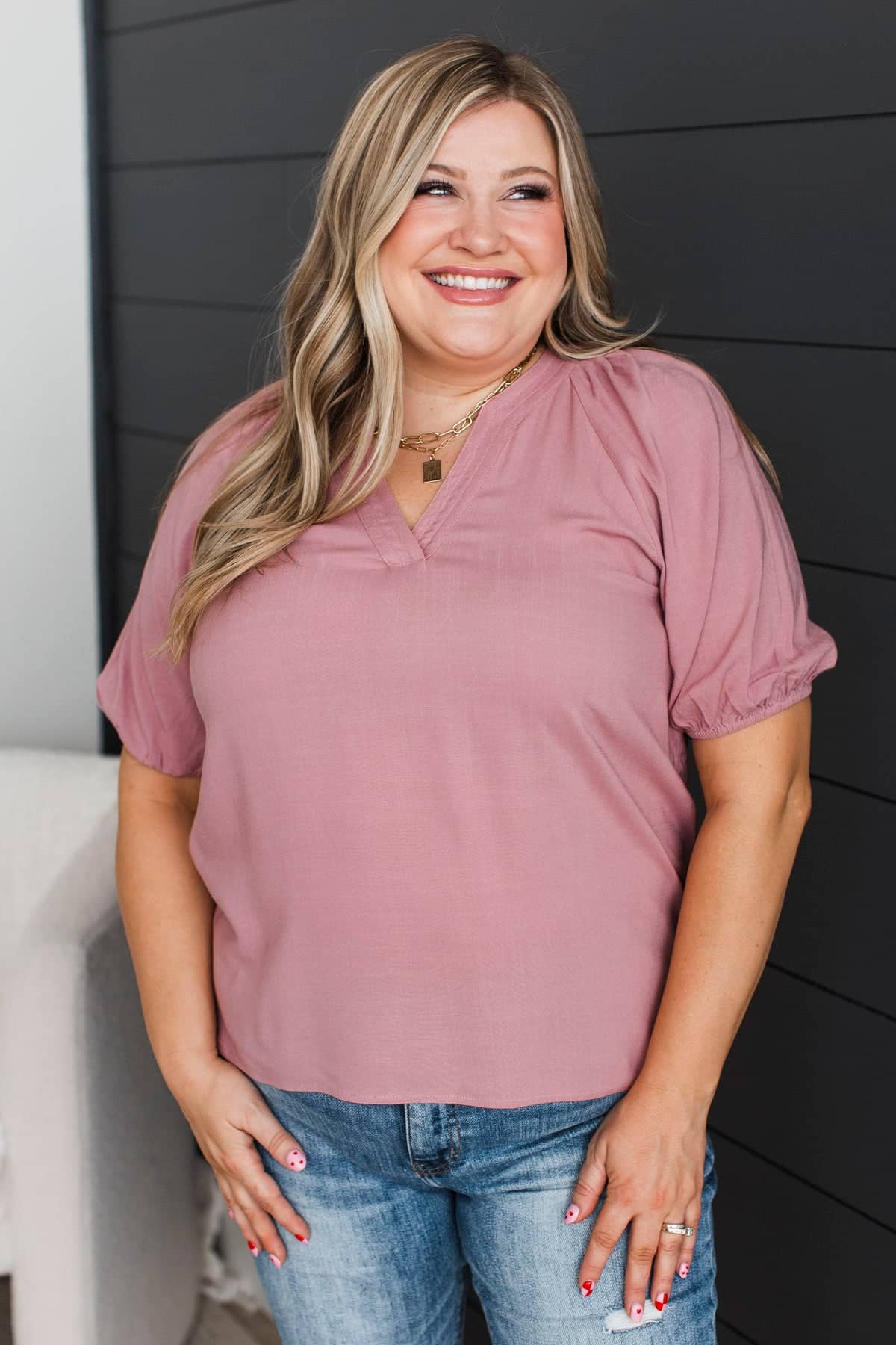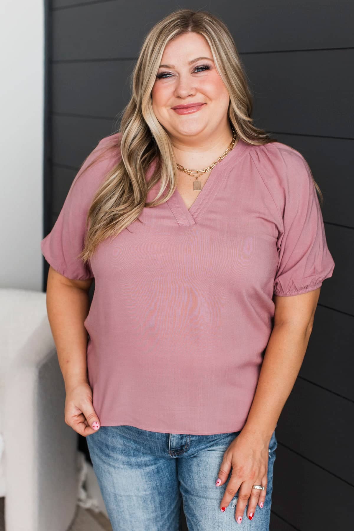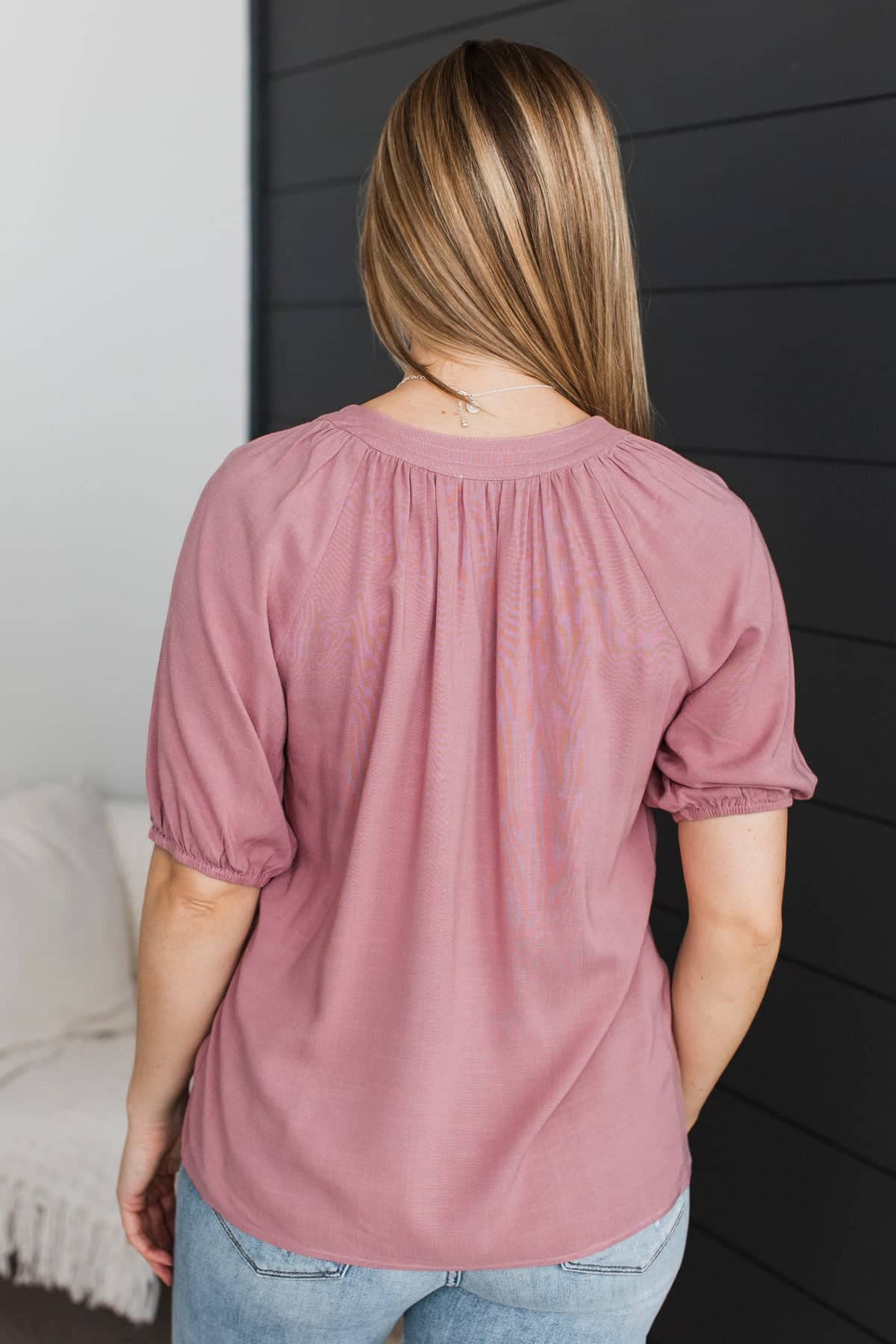 Magic In Every Moment V-Neck Blouse- Dusty Mauve