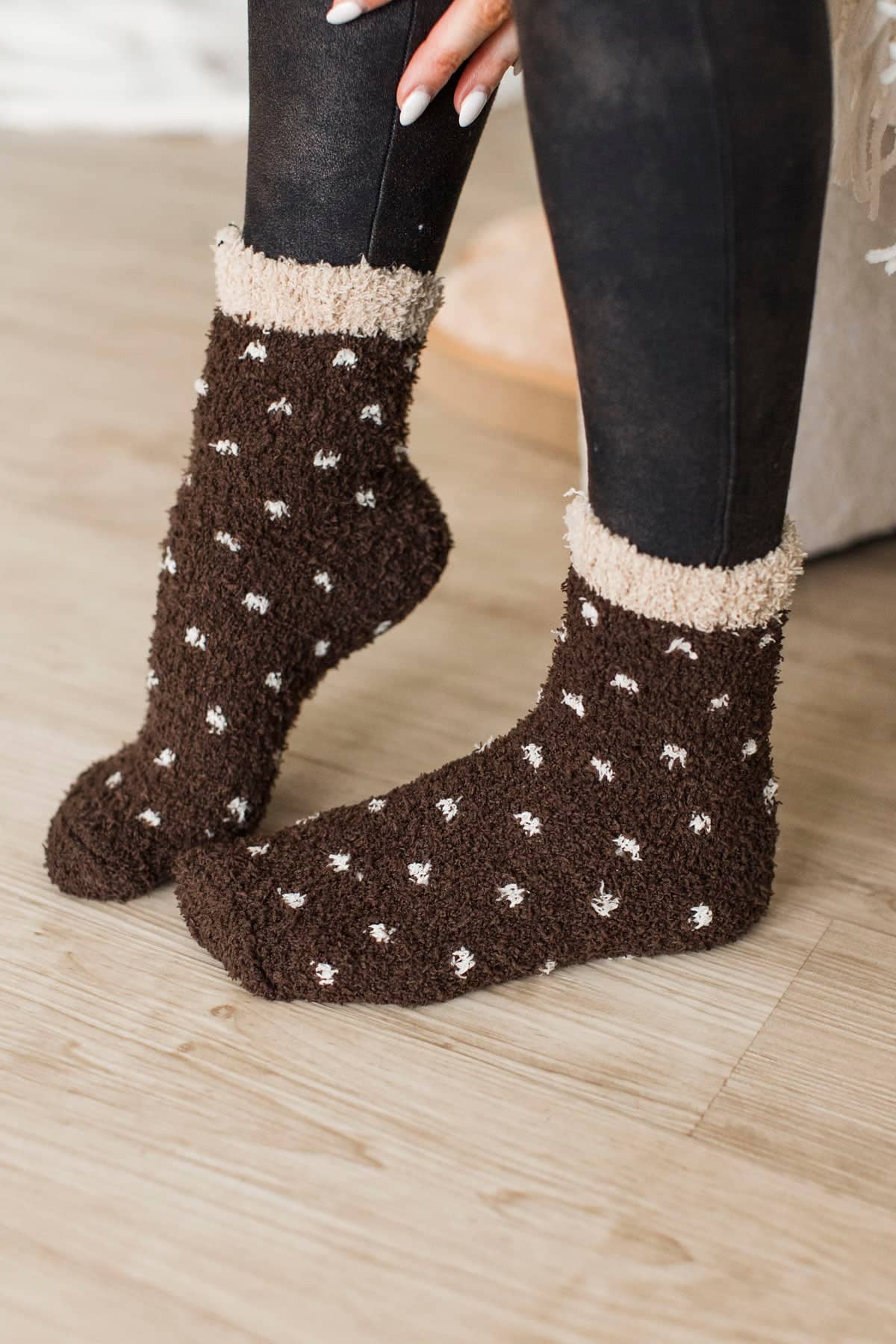 Majorly Cozy Fuzzy Knit Socks- Brown Spots
