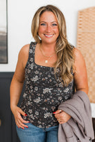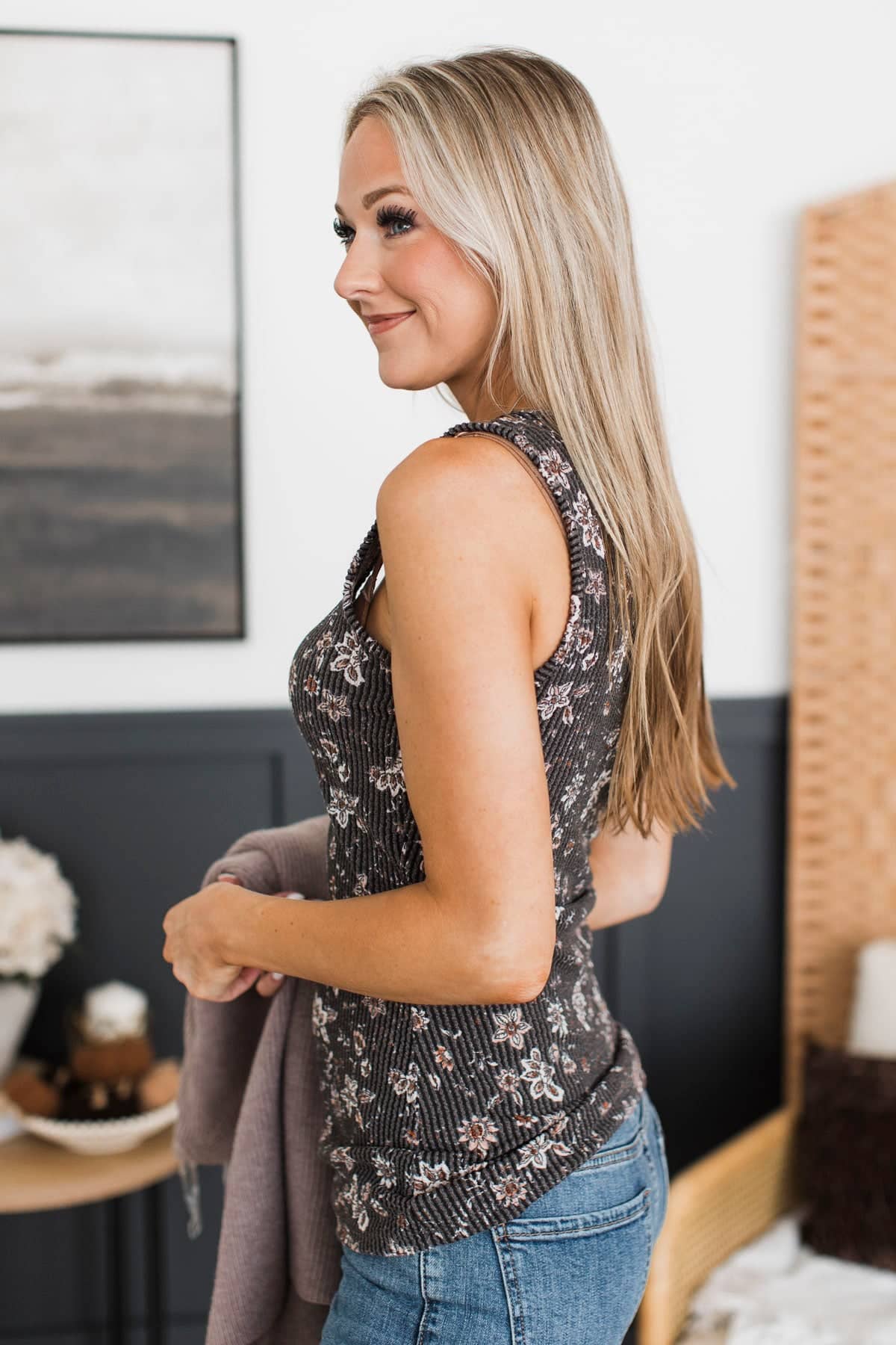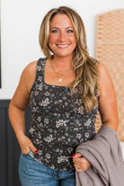 Memorable Feeling Floral Ribbed Tank Top- Black
