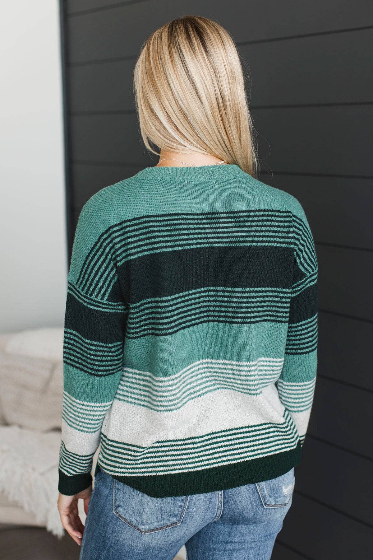 Nourish Your Soul Striped Knit Sweater- Wintergreen