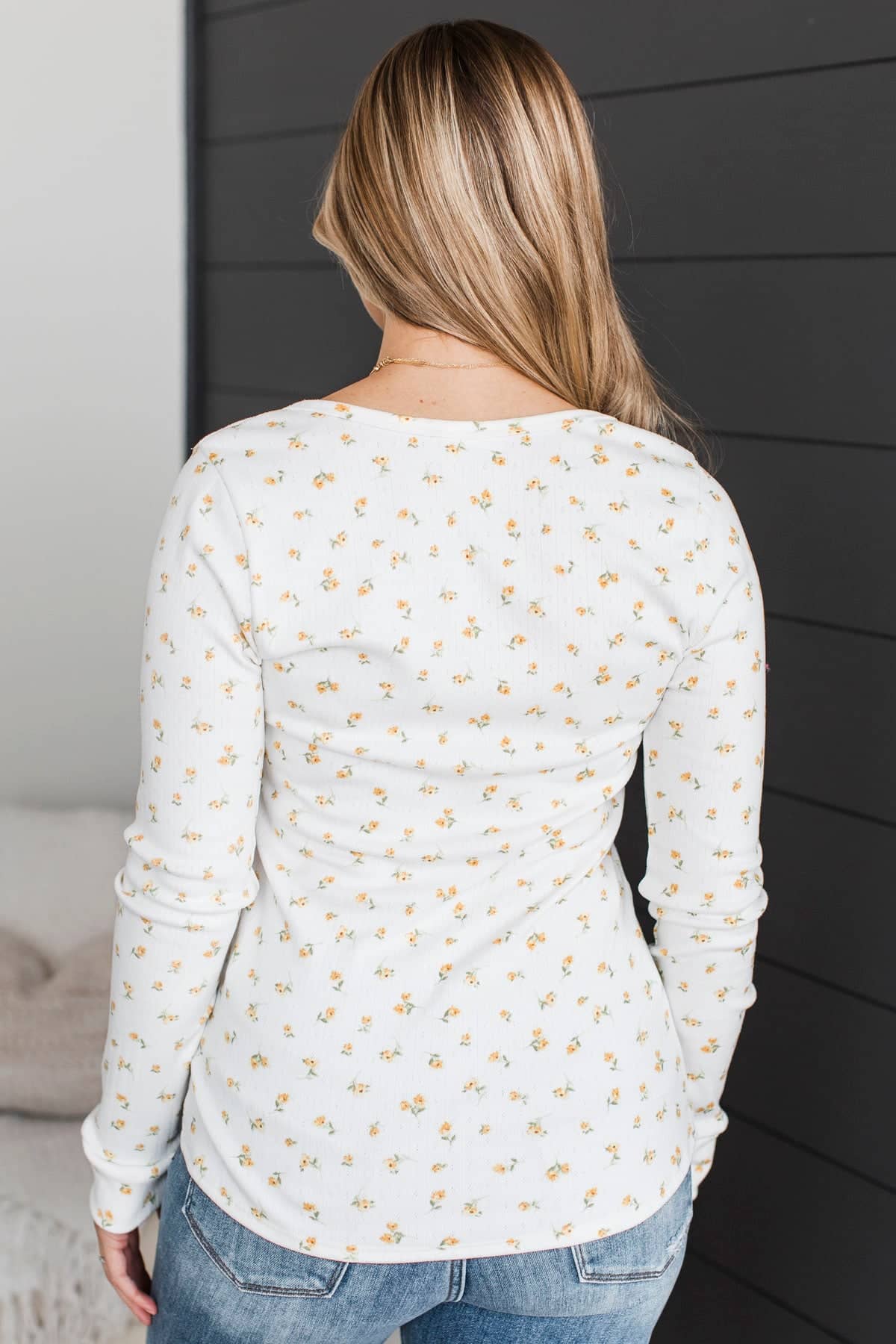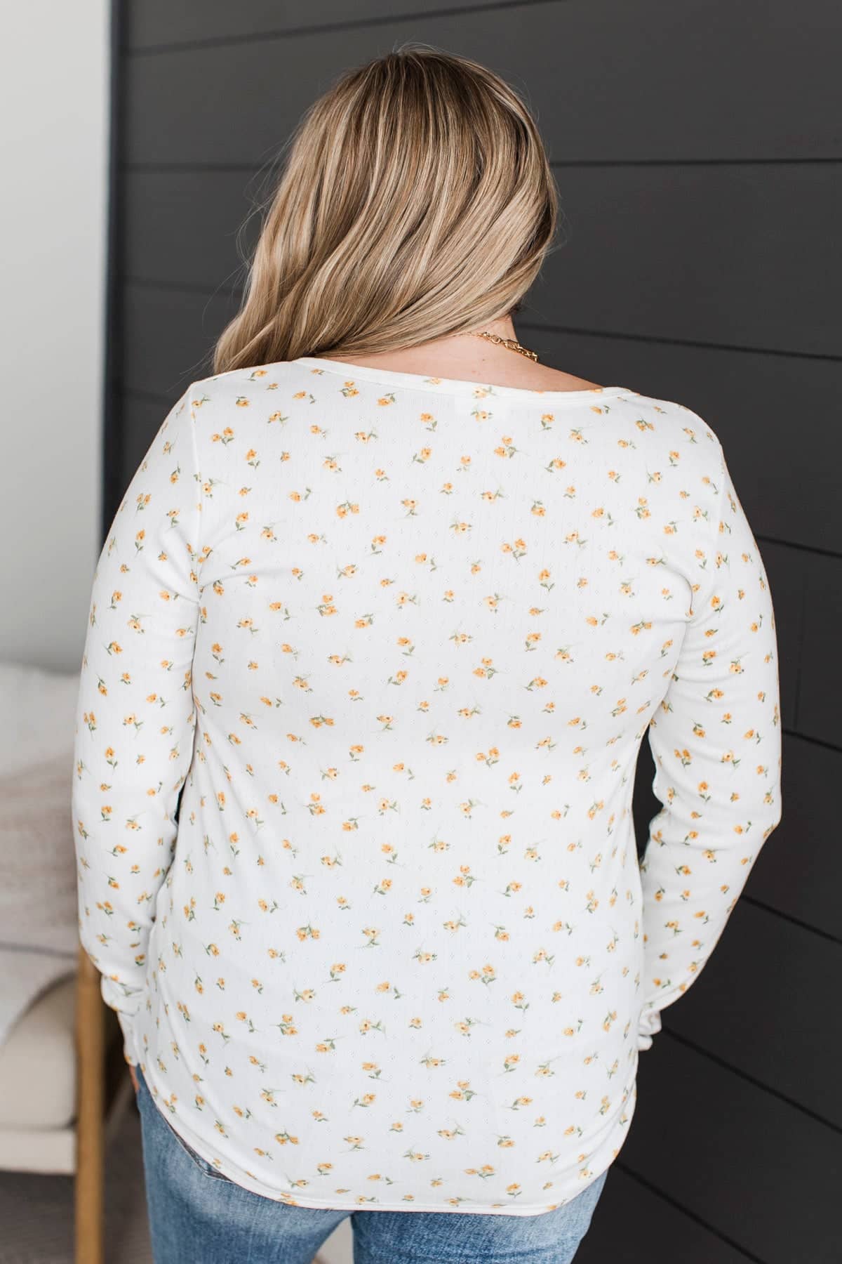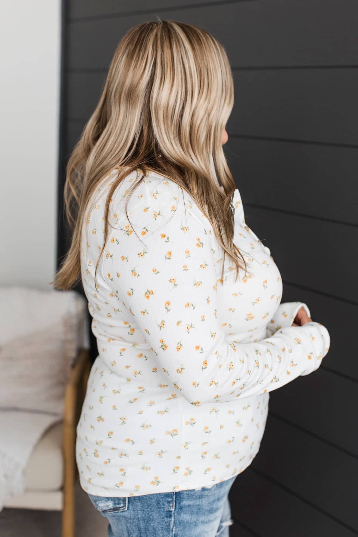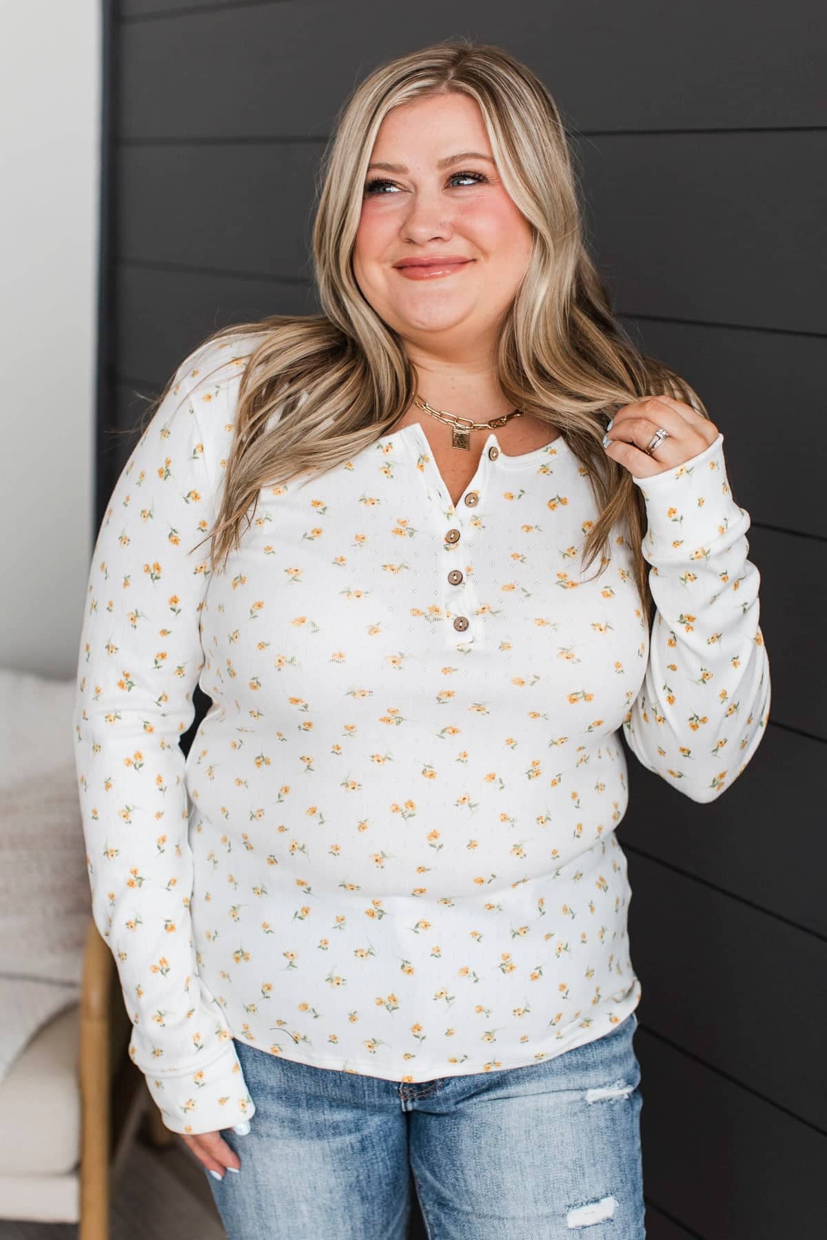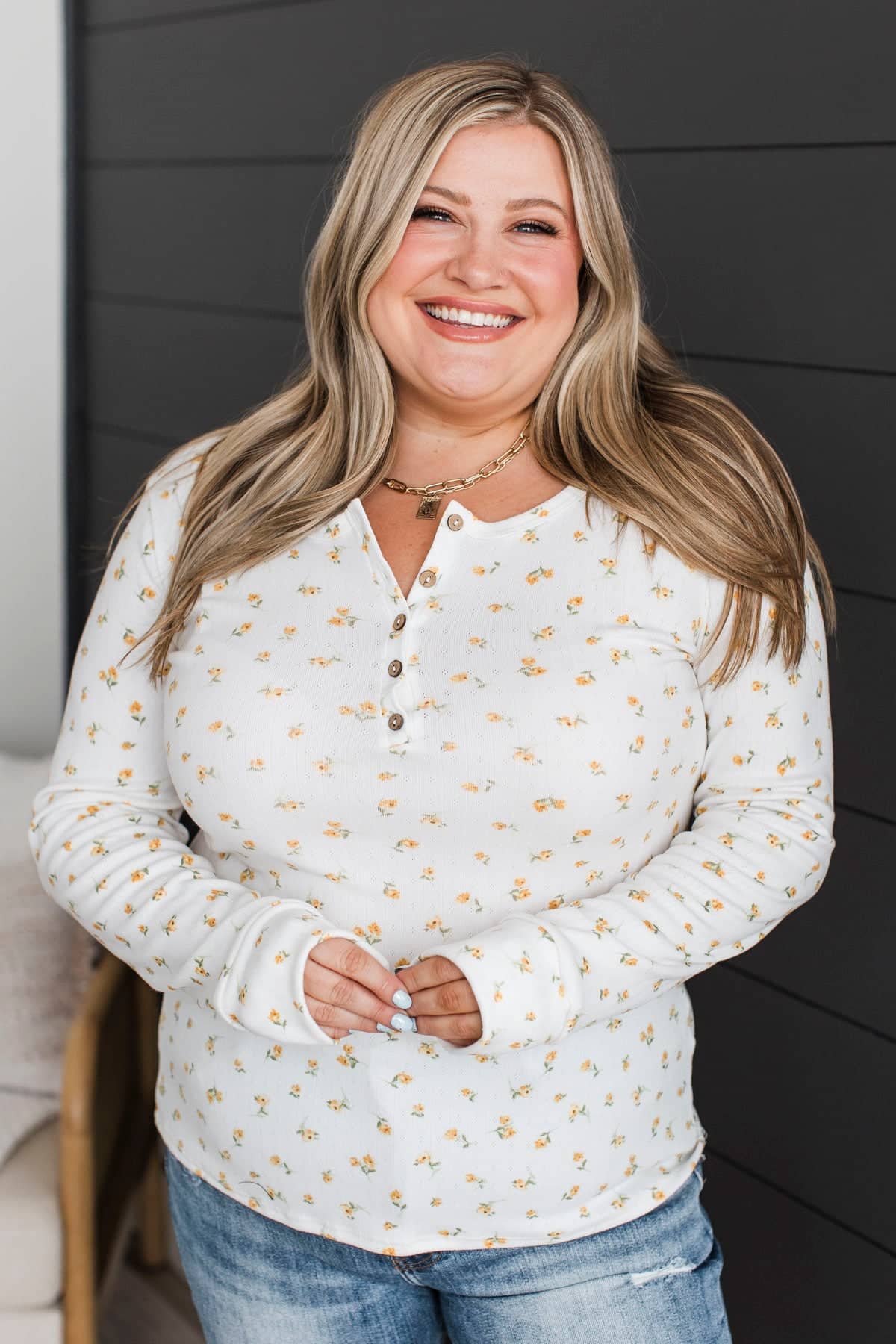 Open Your Heart Floral Henley Top- Ivory & Yellow