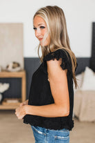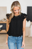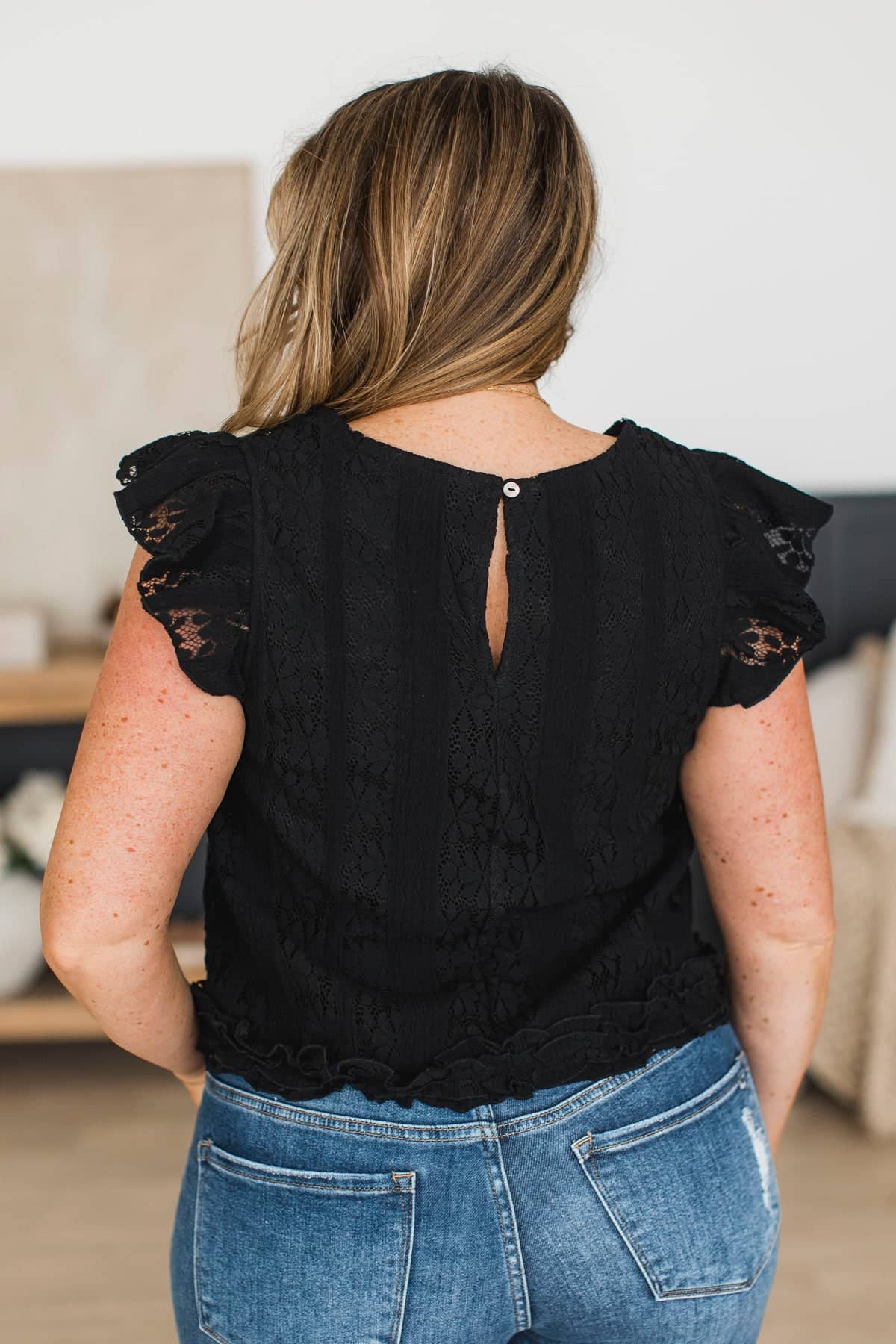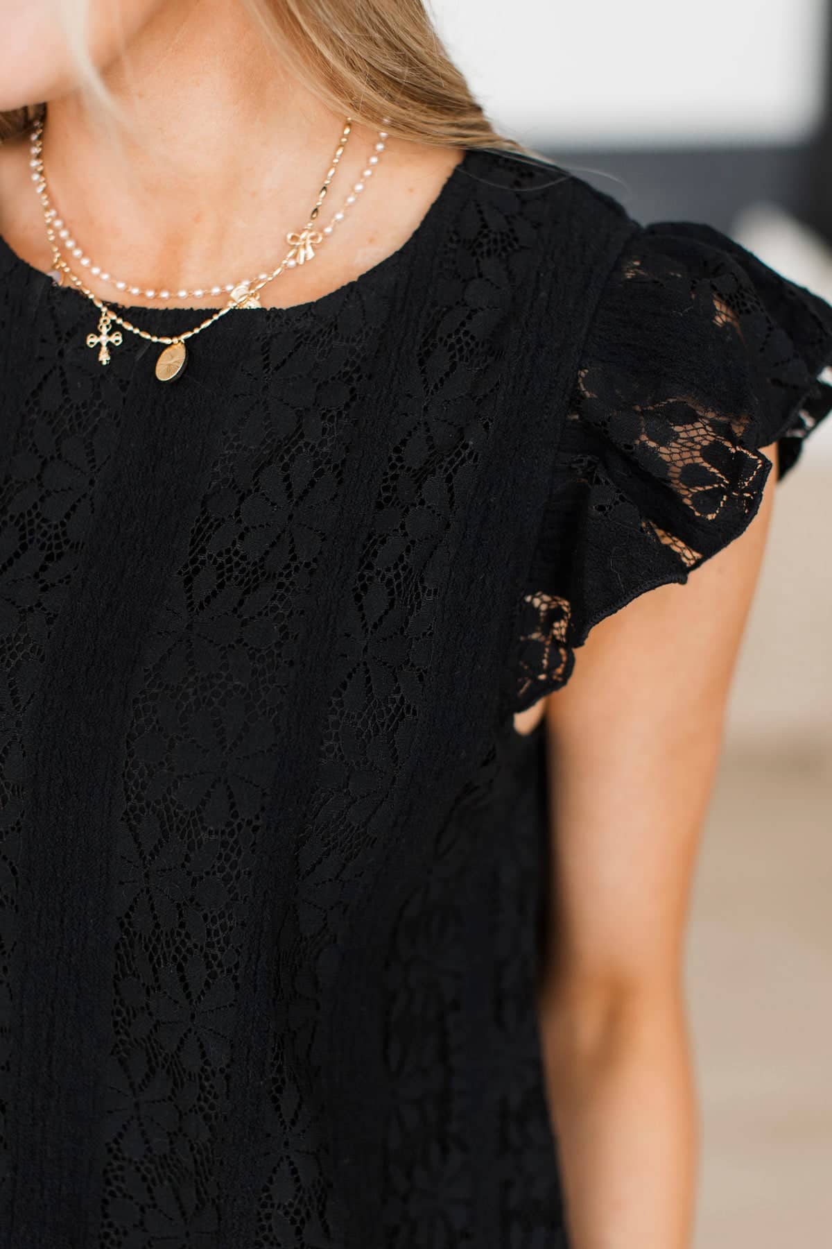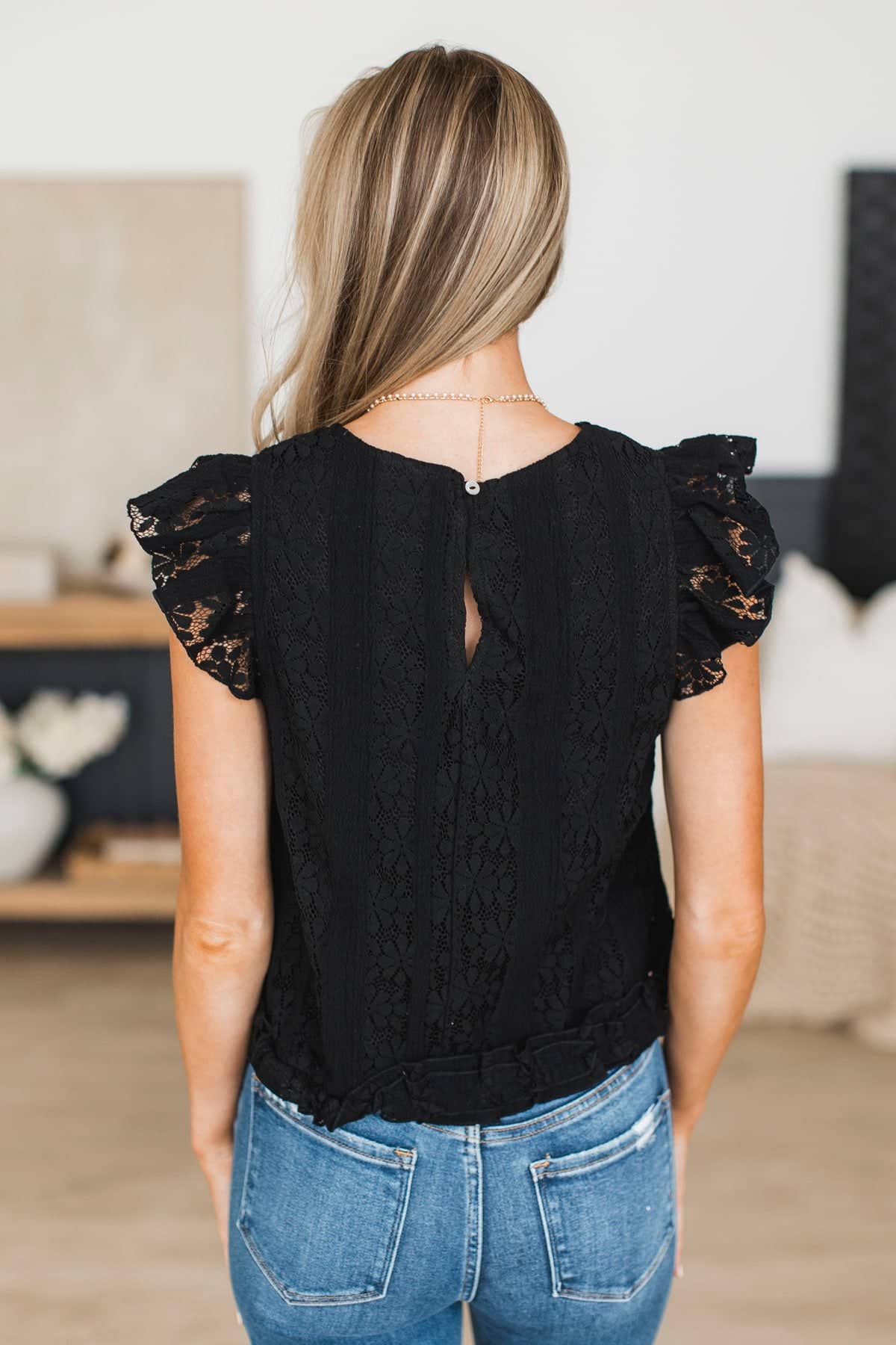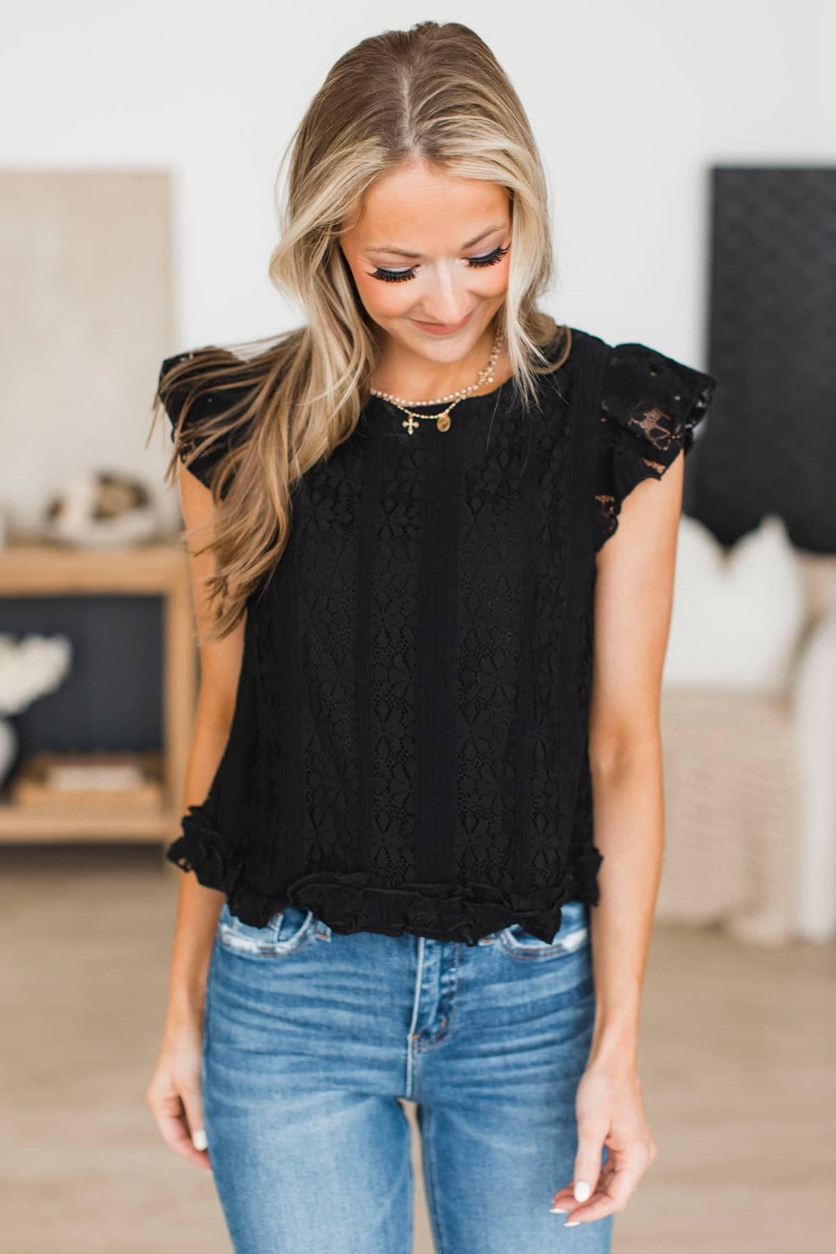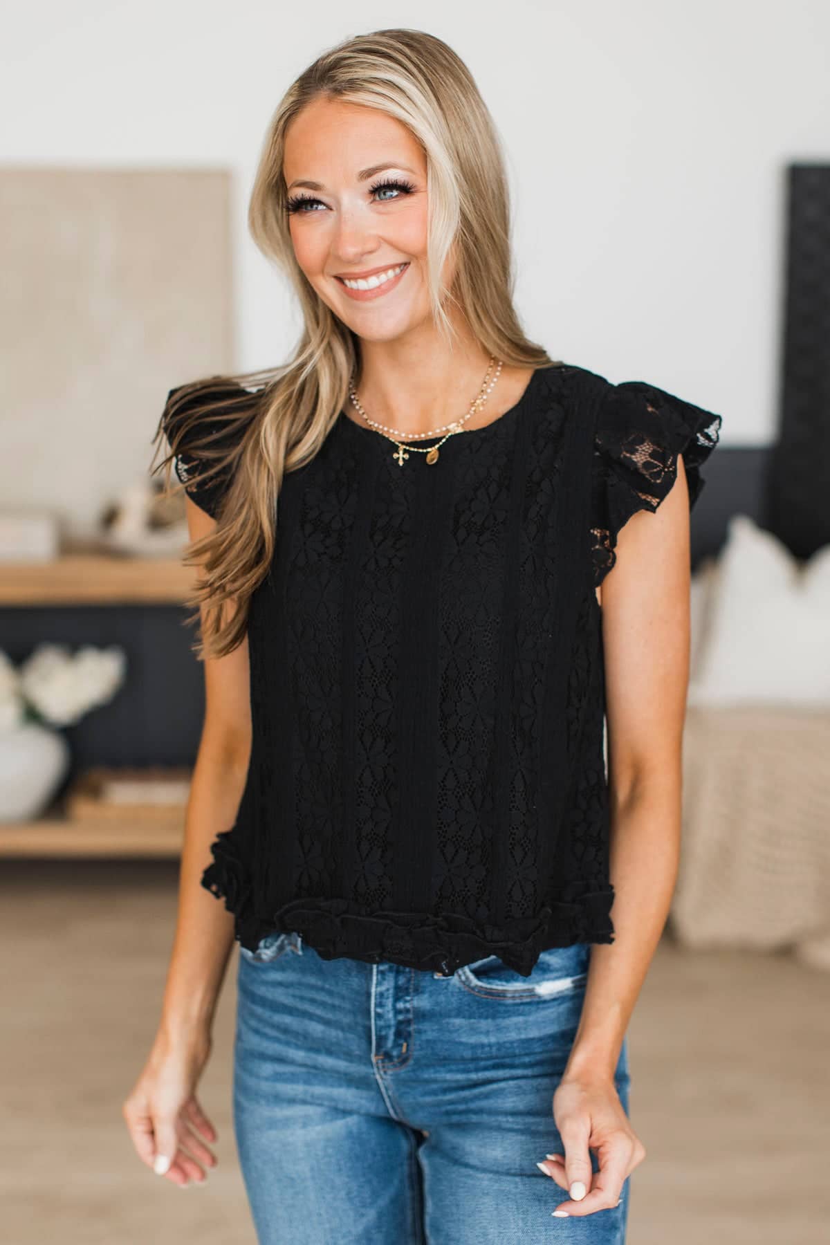 Reflections Of Me Floral Lace Ruffle Blouse- Black