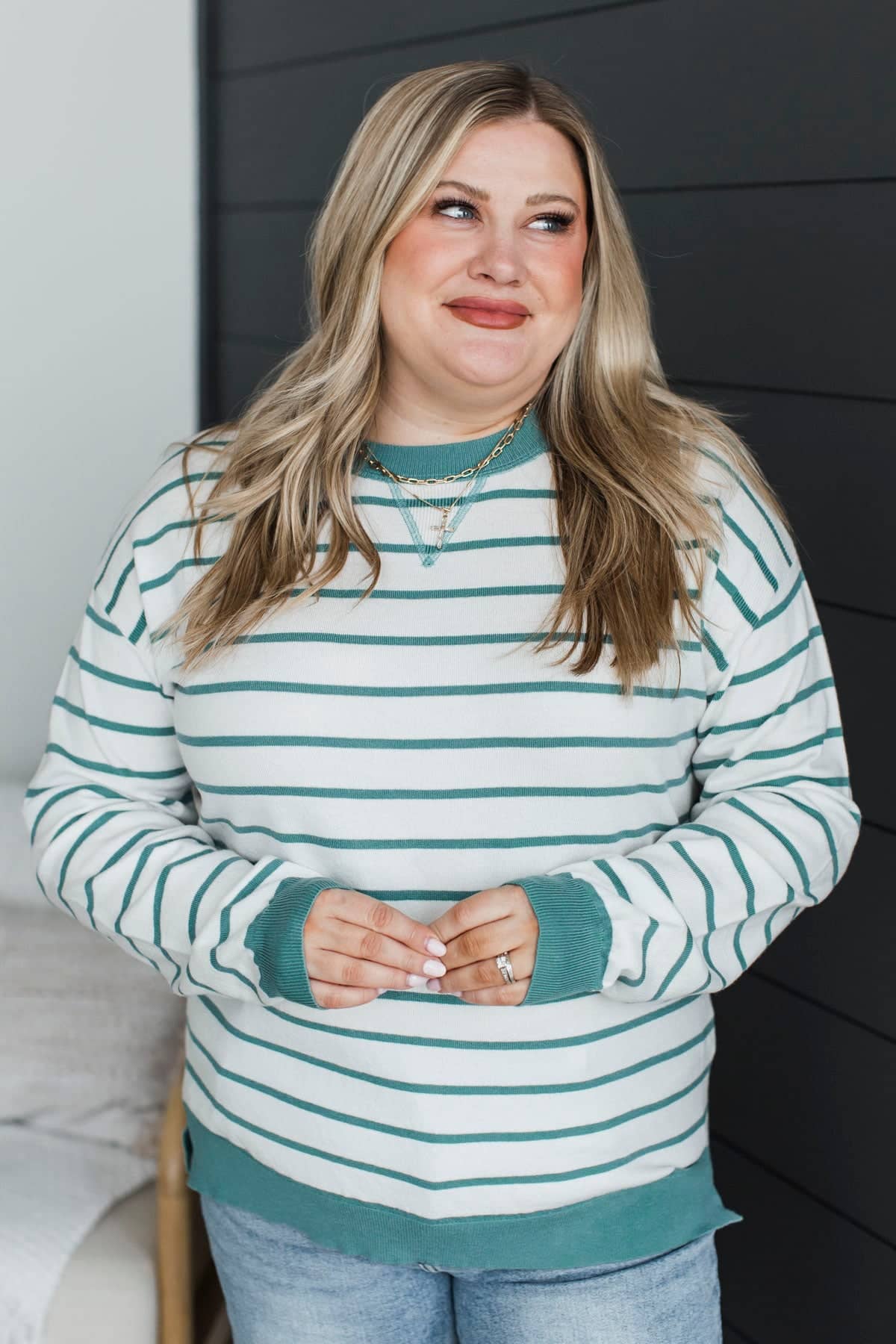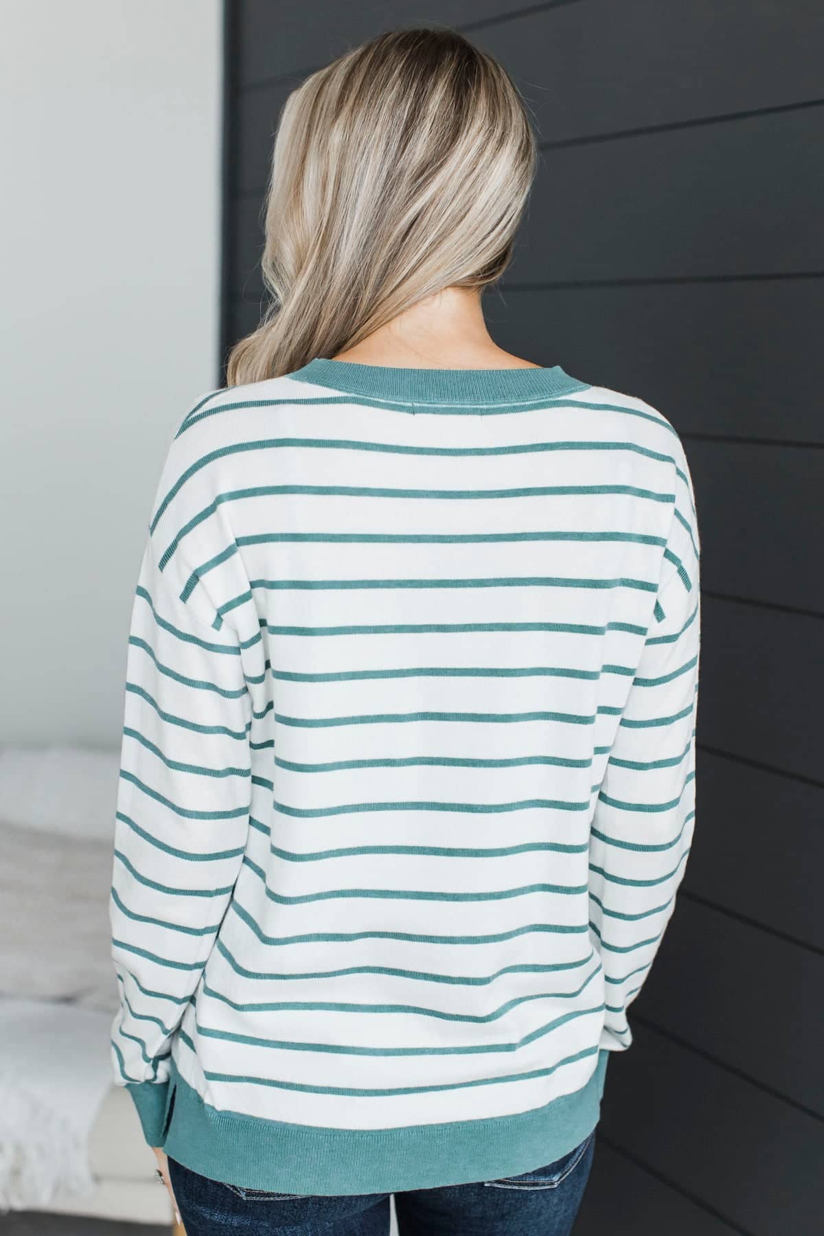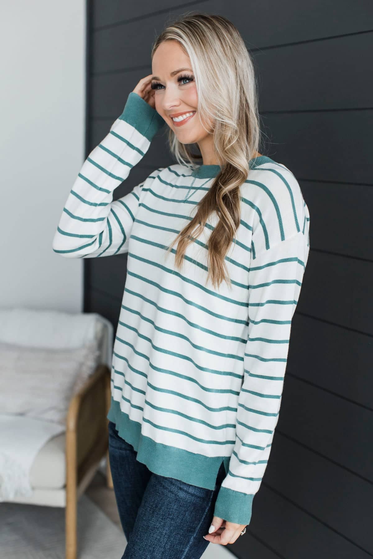 Remaining Optimistic Striped Knit Sweater- Ivory & Teal