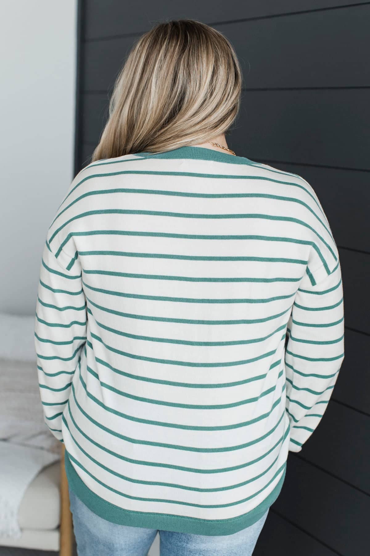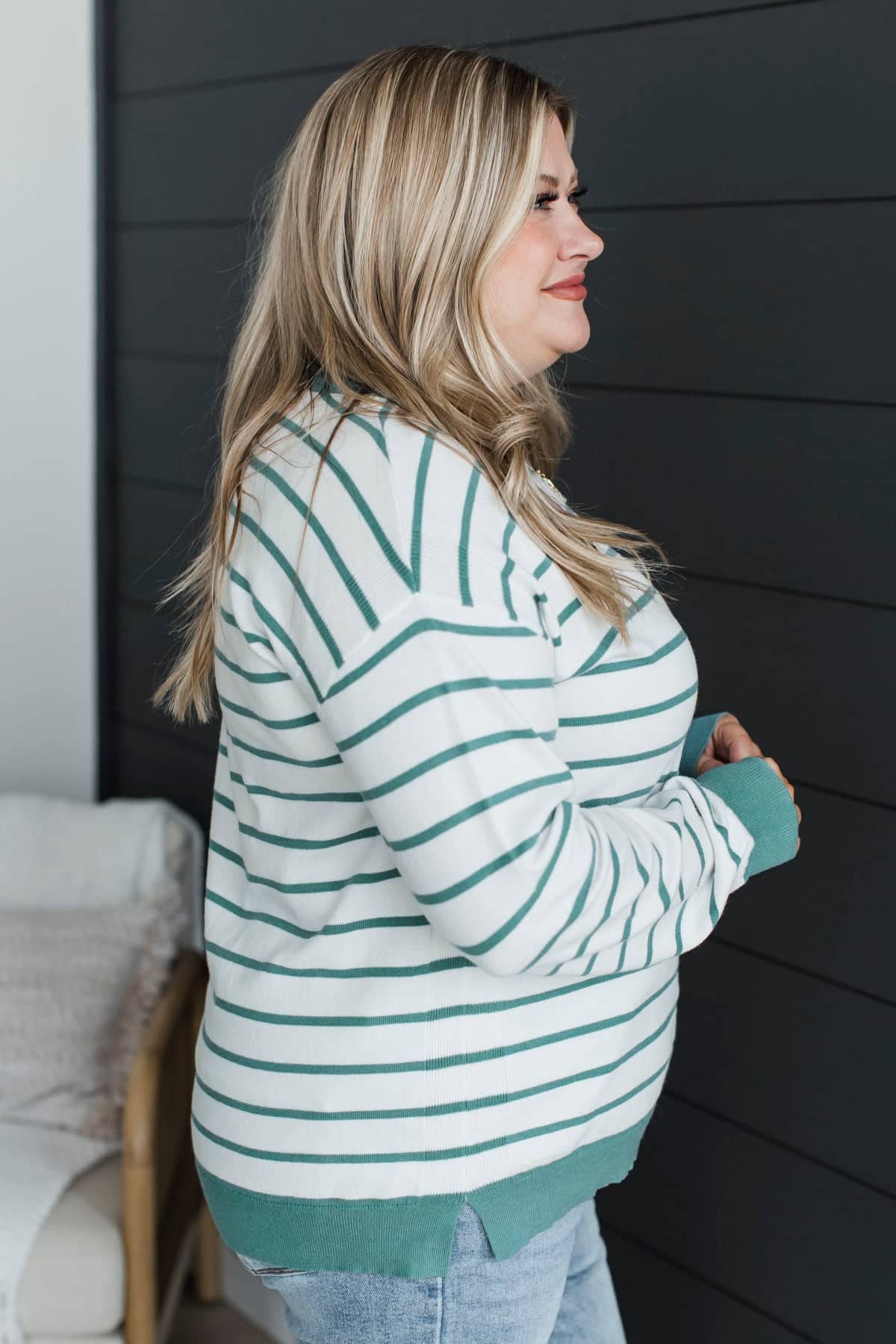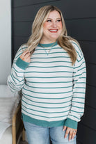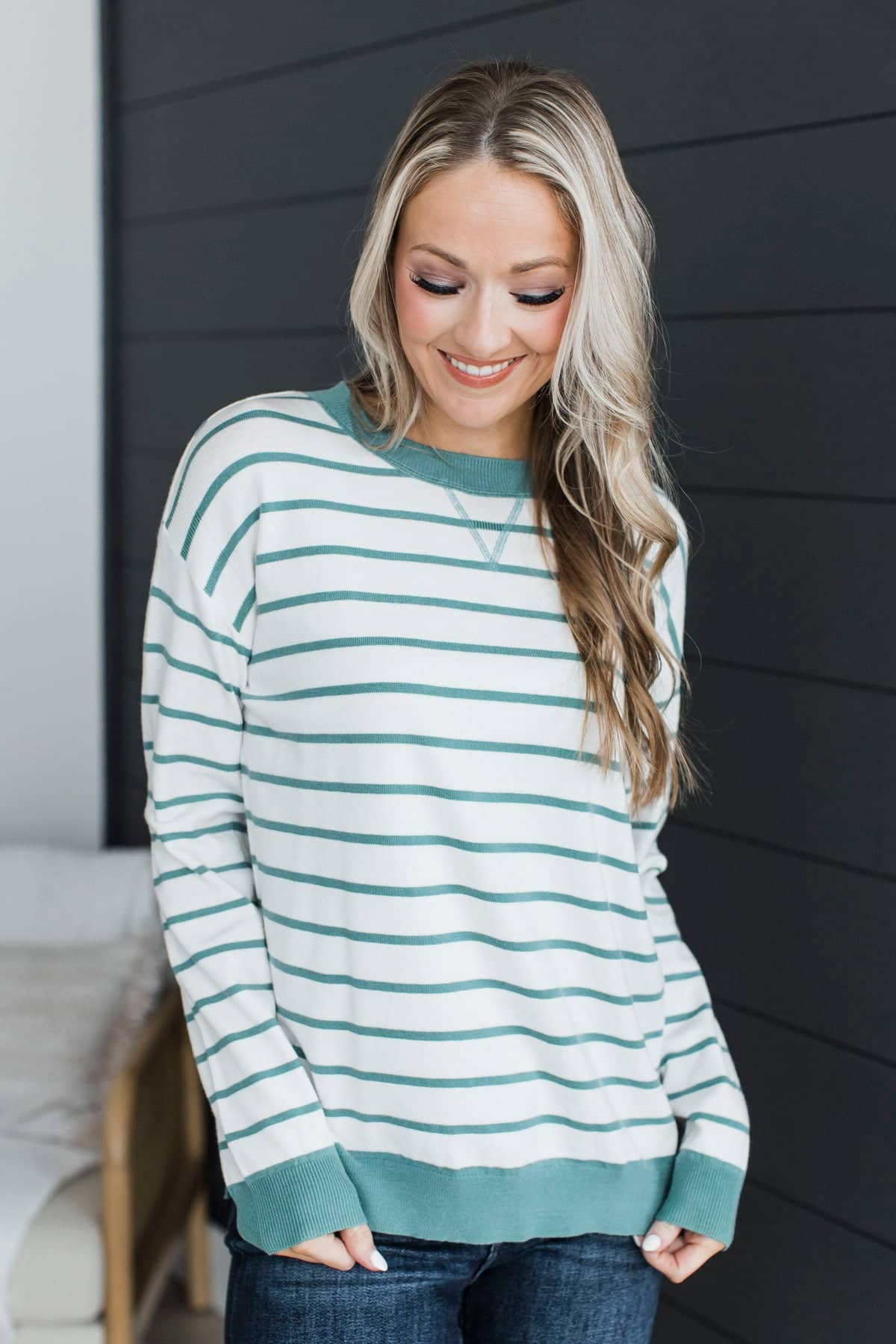 Remaining Optimistic Striped Knit Sweater- Ivory & Teal