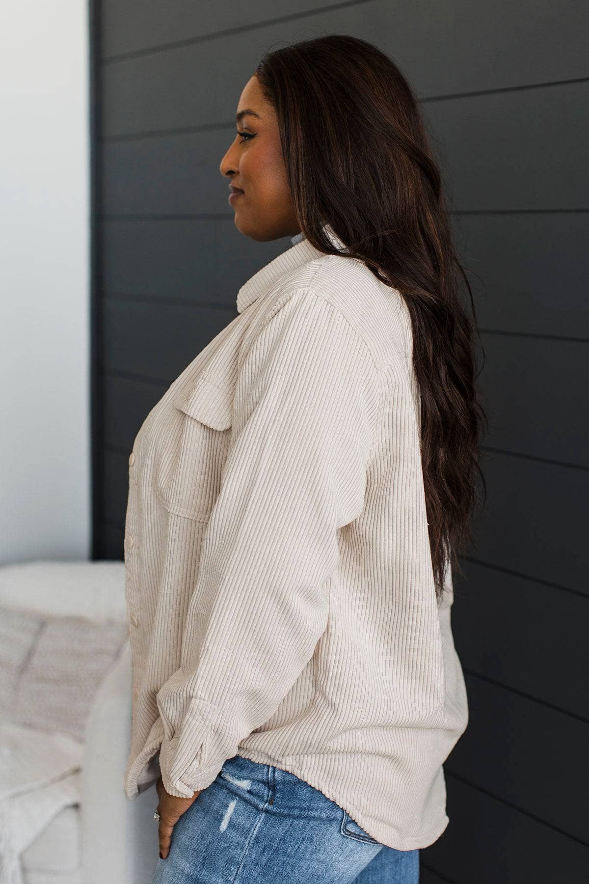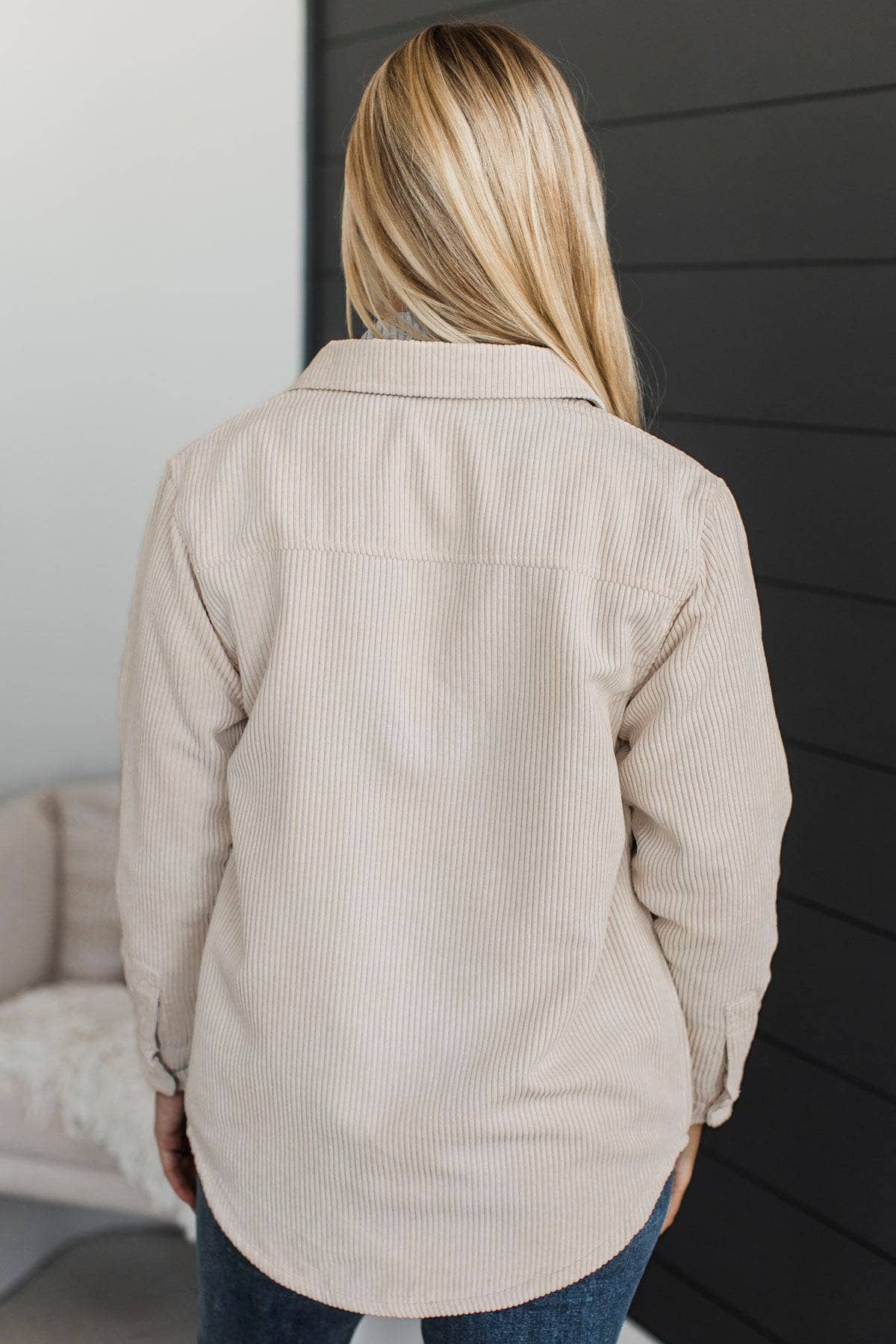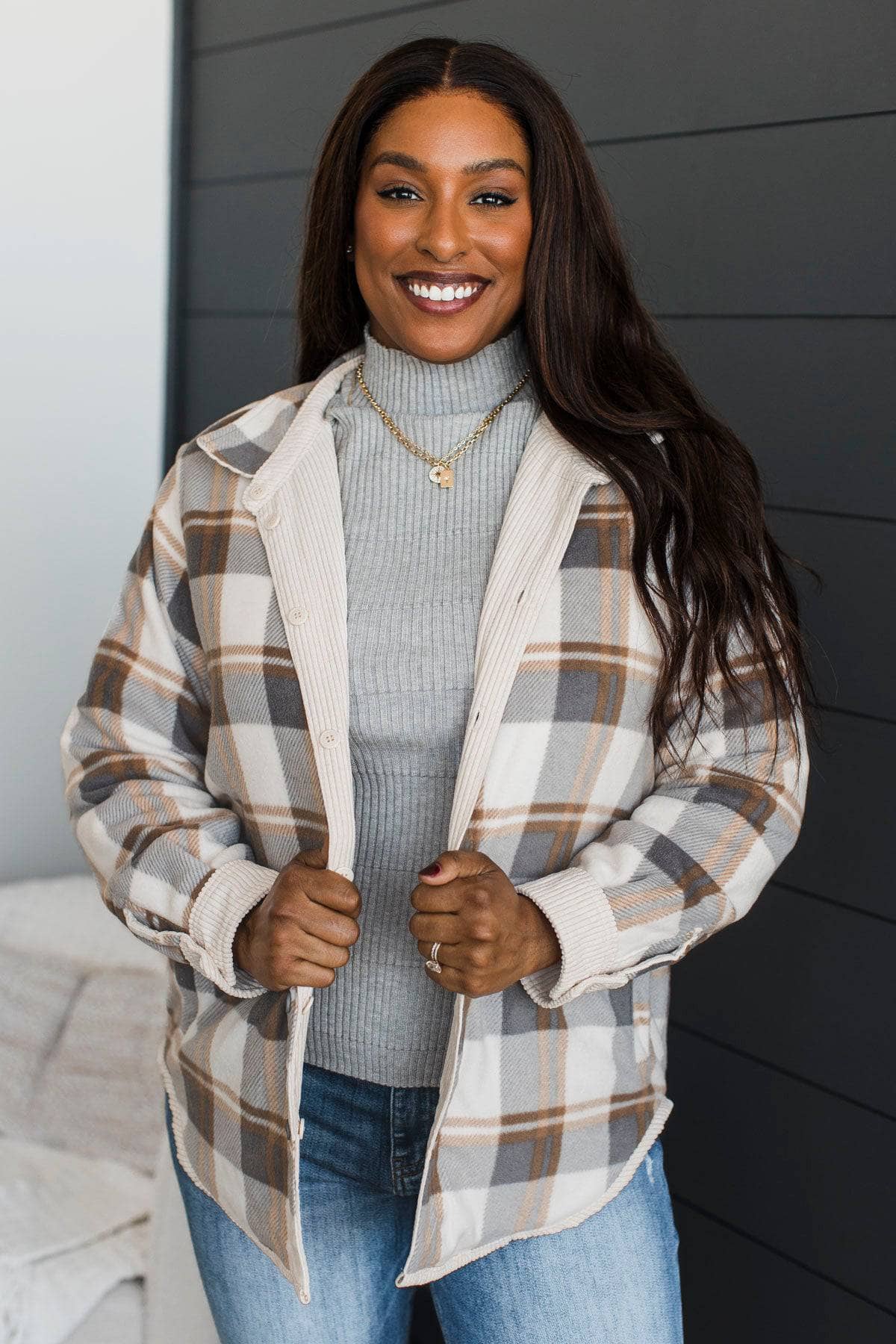 Reversible Plaid Lined Corduroy Jacket- Cream