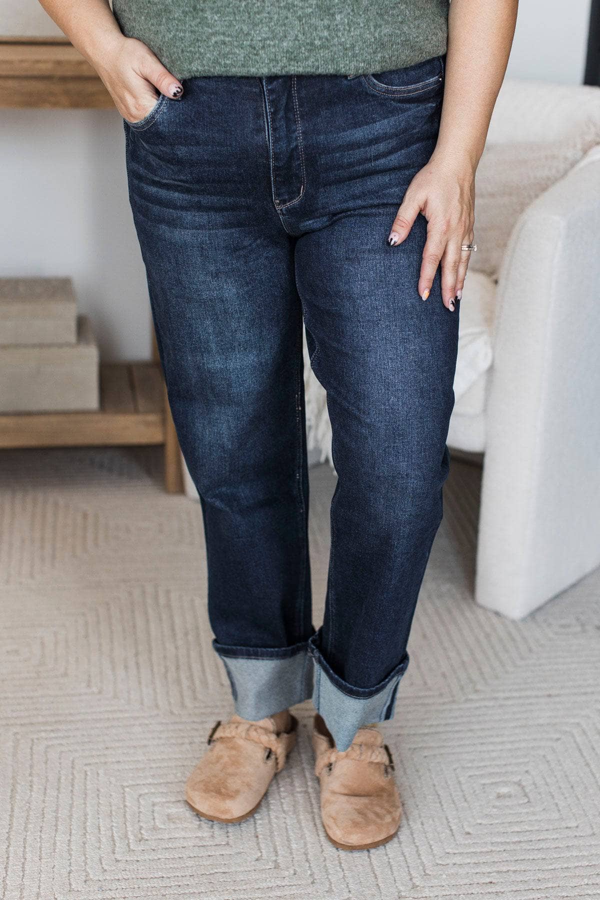 • High-rise straight leg jeans