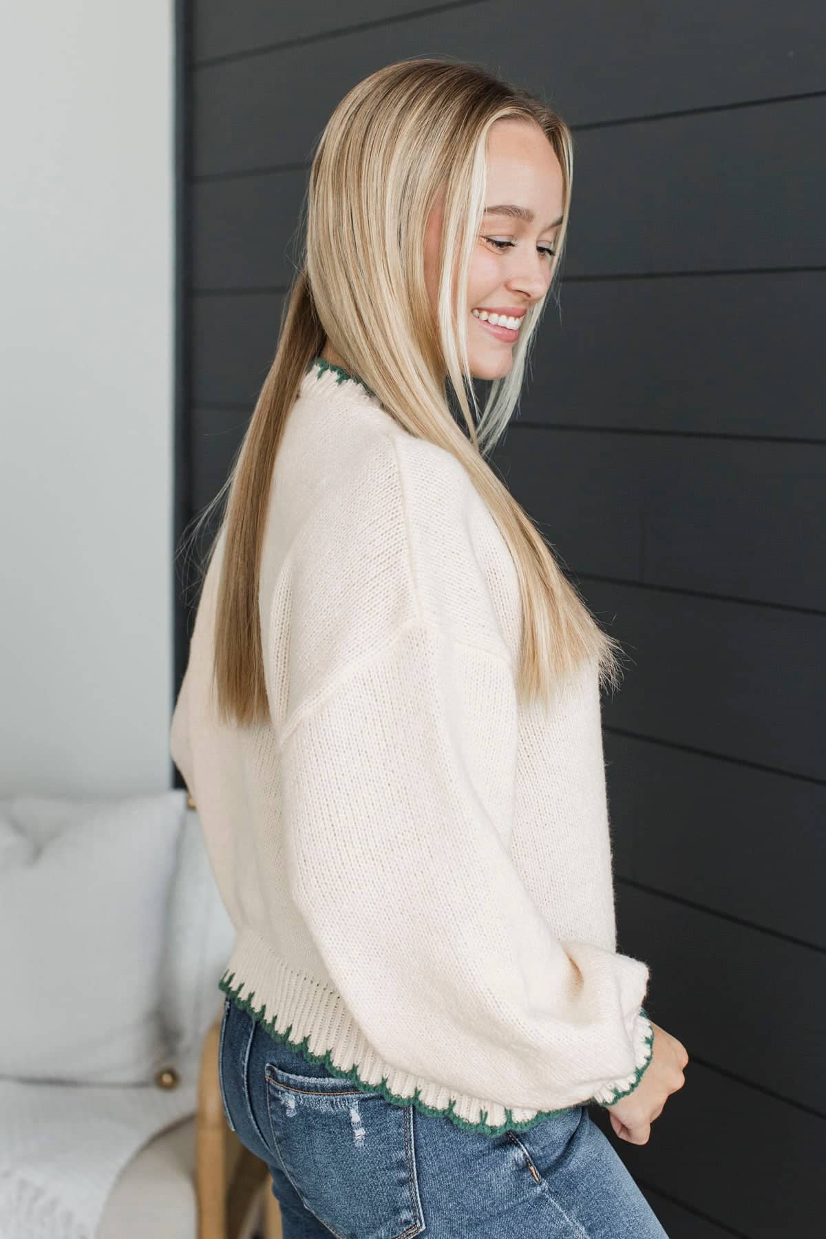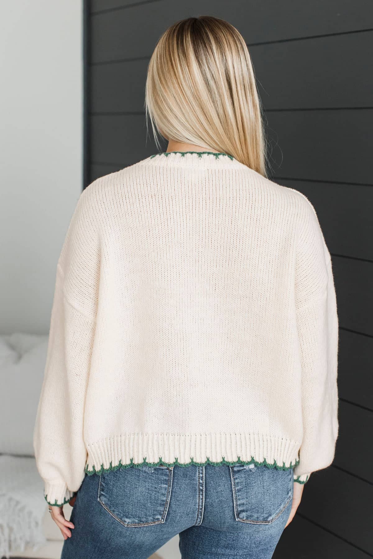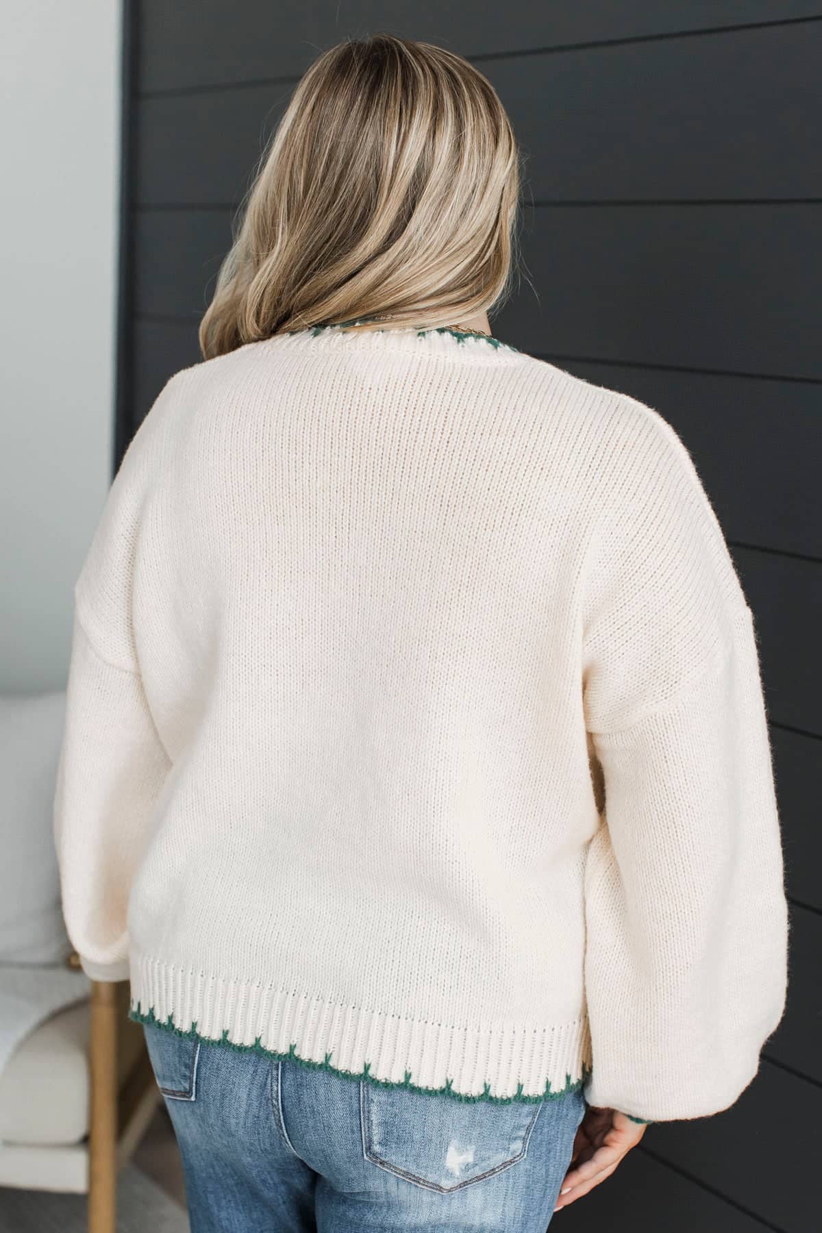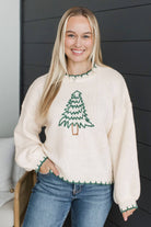 Settle Into Winter Embroidered Tree Knit Sweater- Ivory