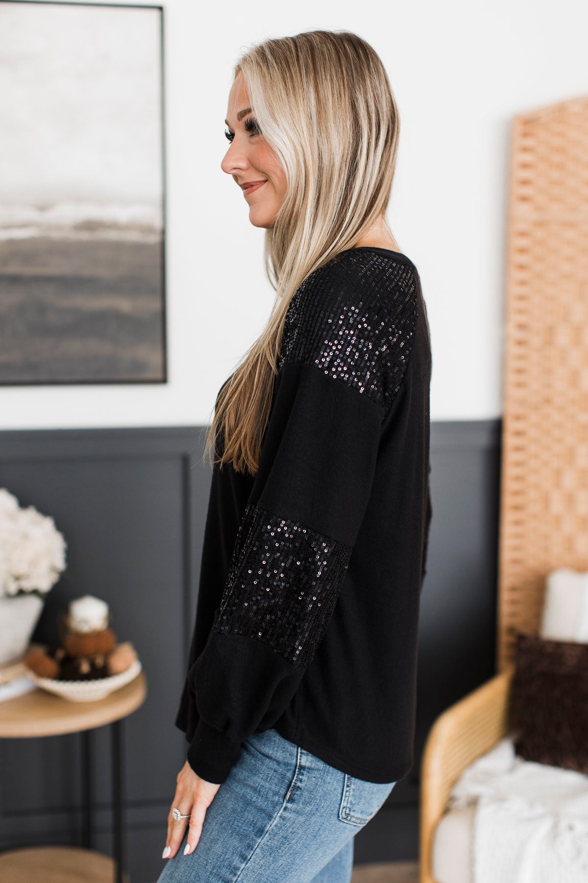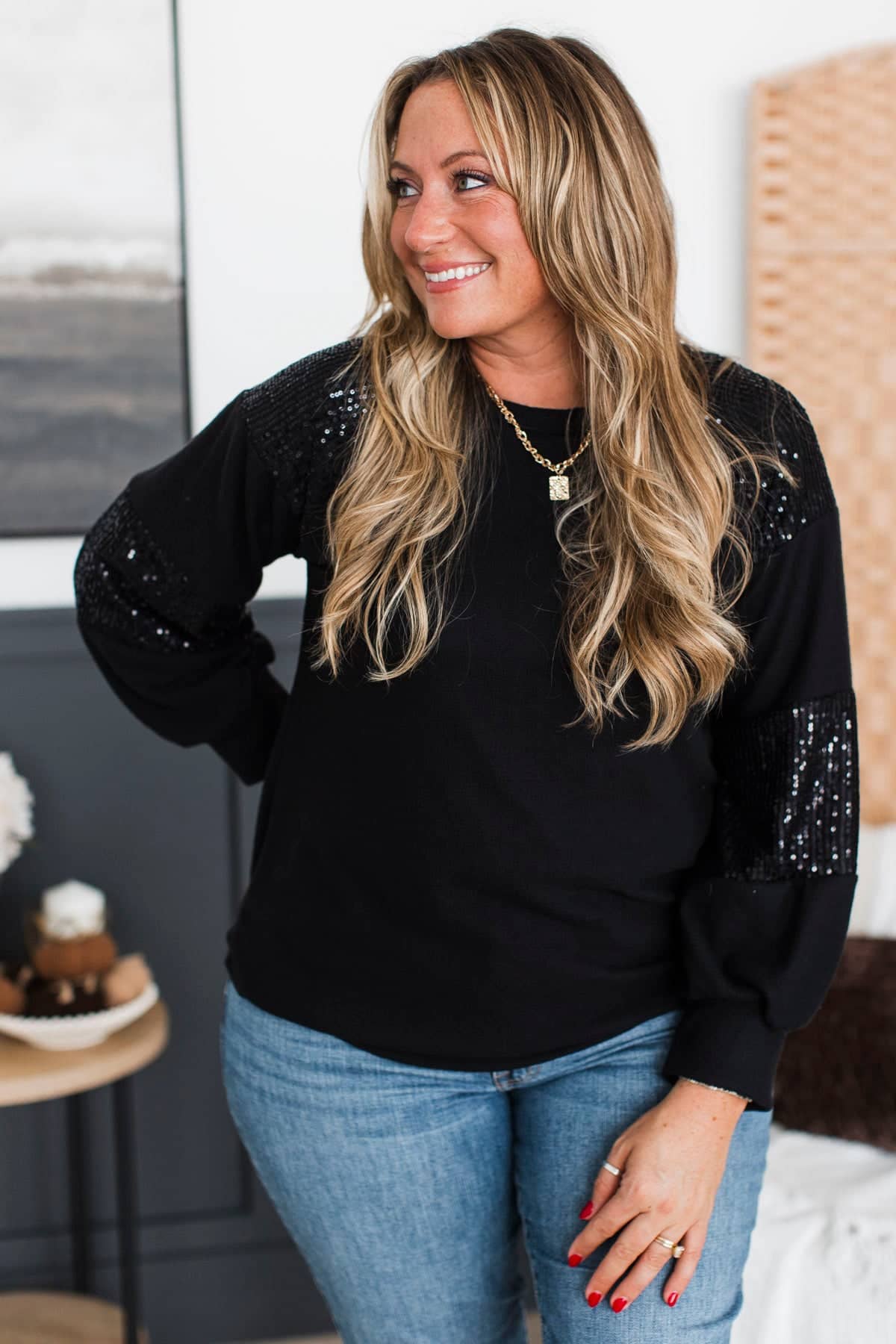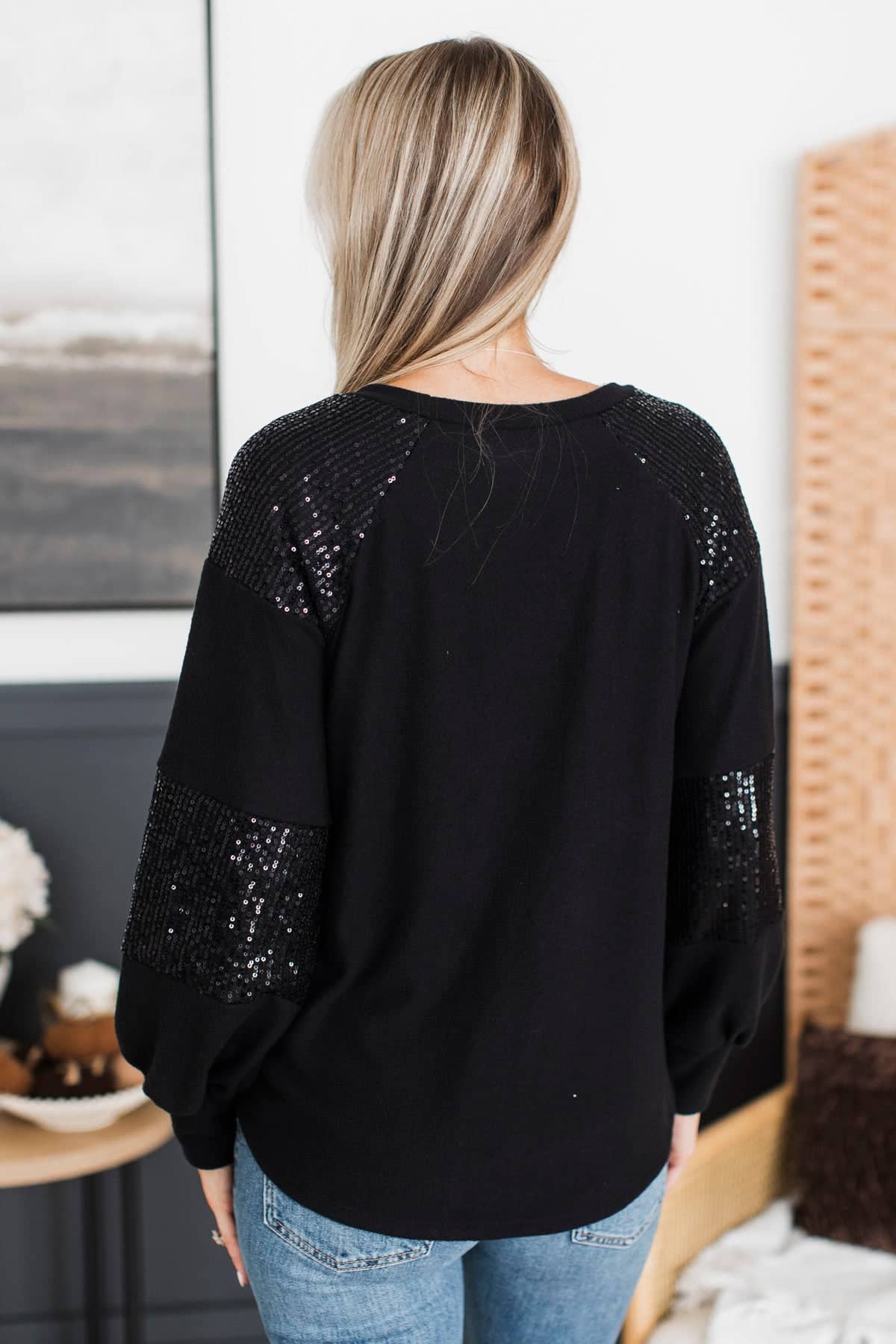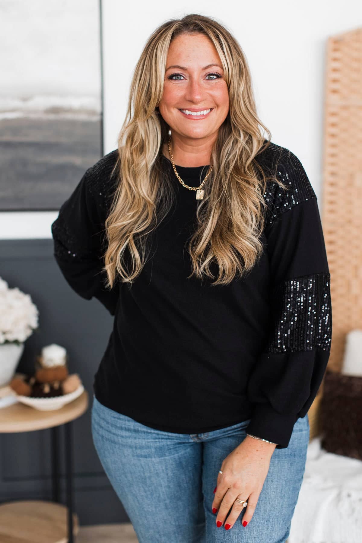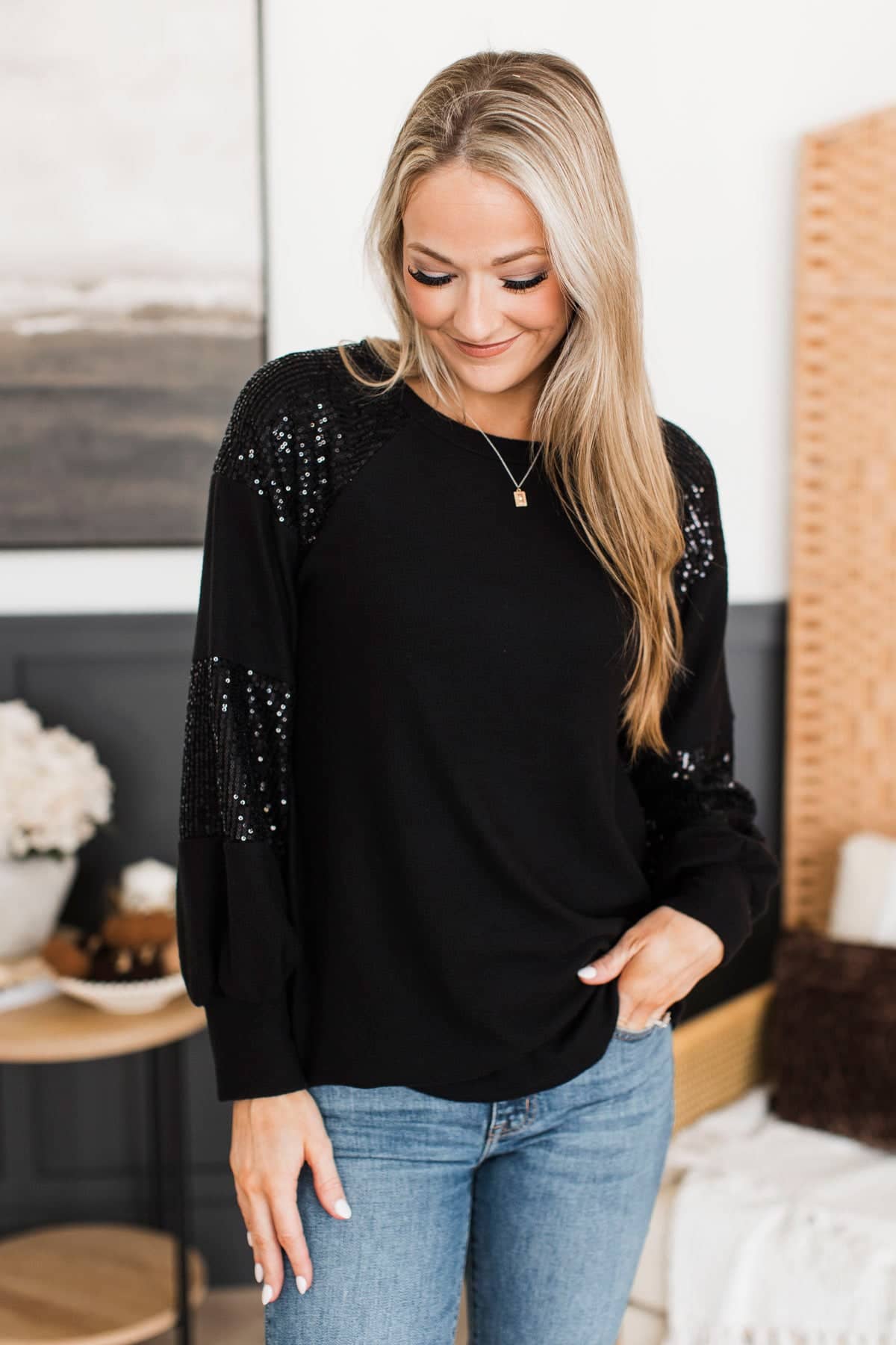 I love anything black and the sequins on this top is perfect. I wish I had bought the size large as I have big breast and the medium is a little snug.