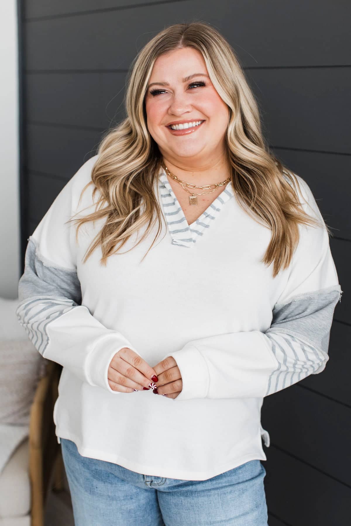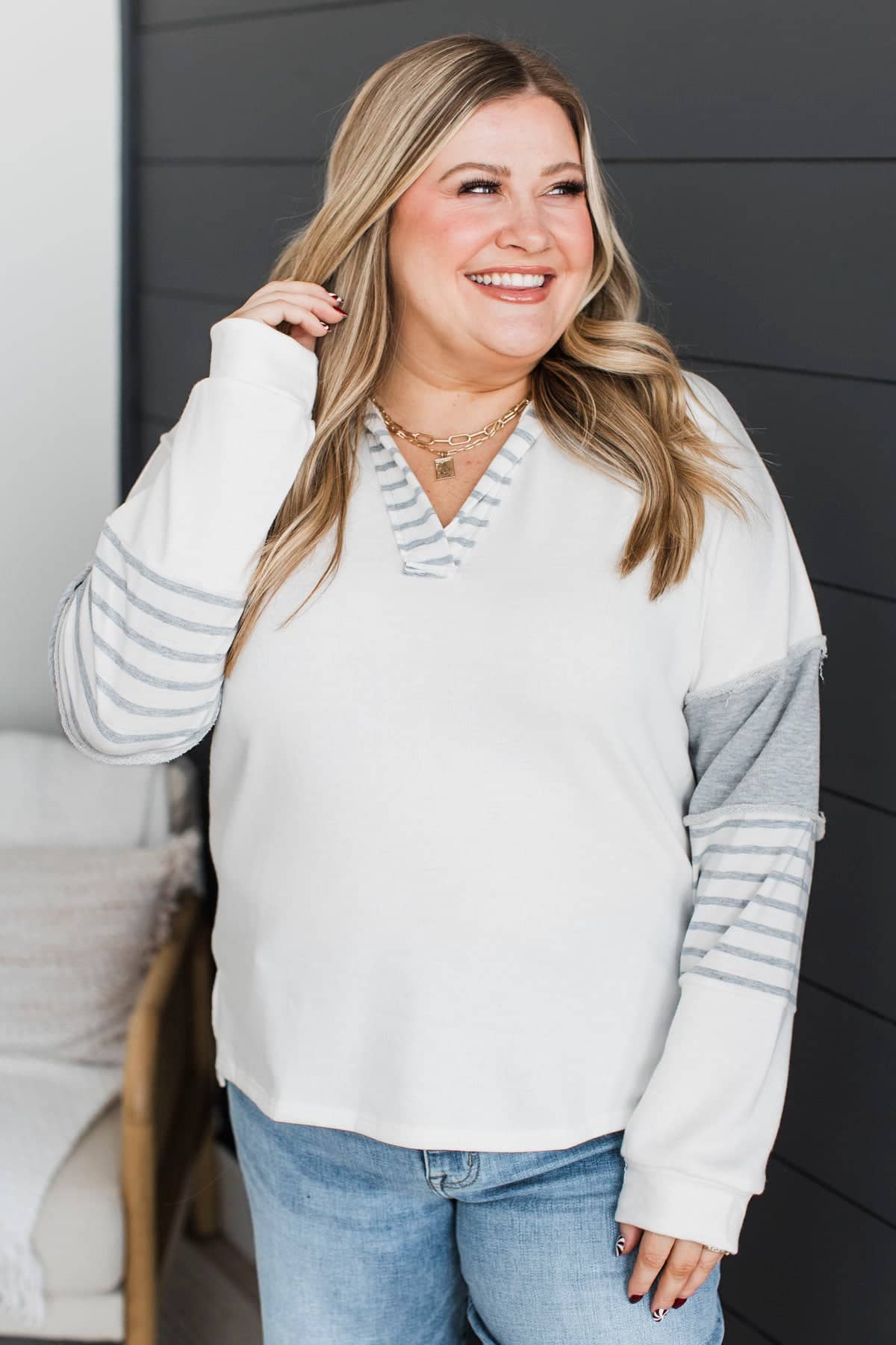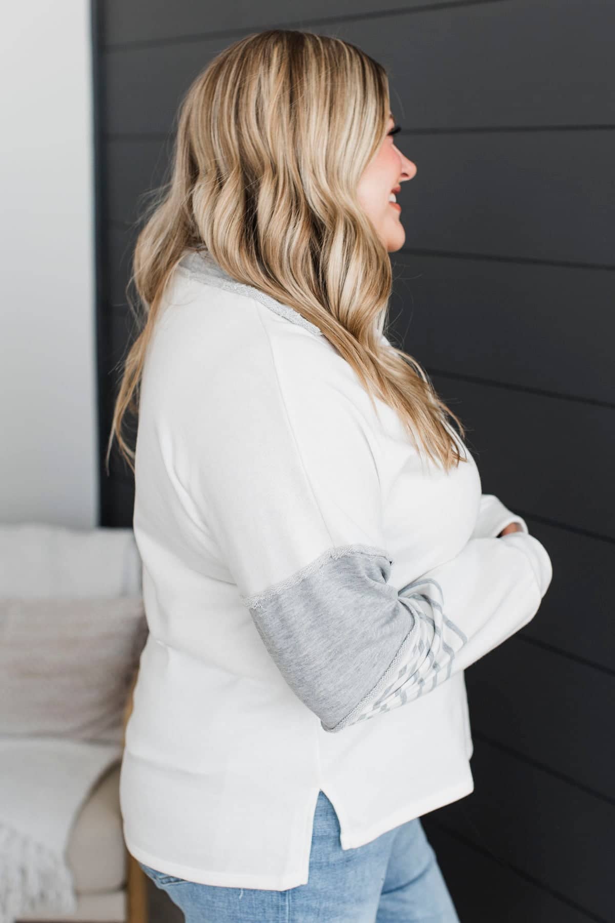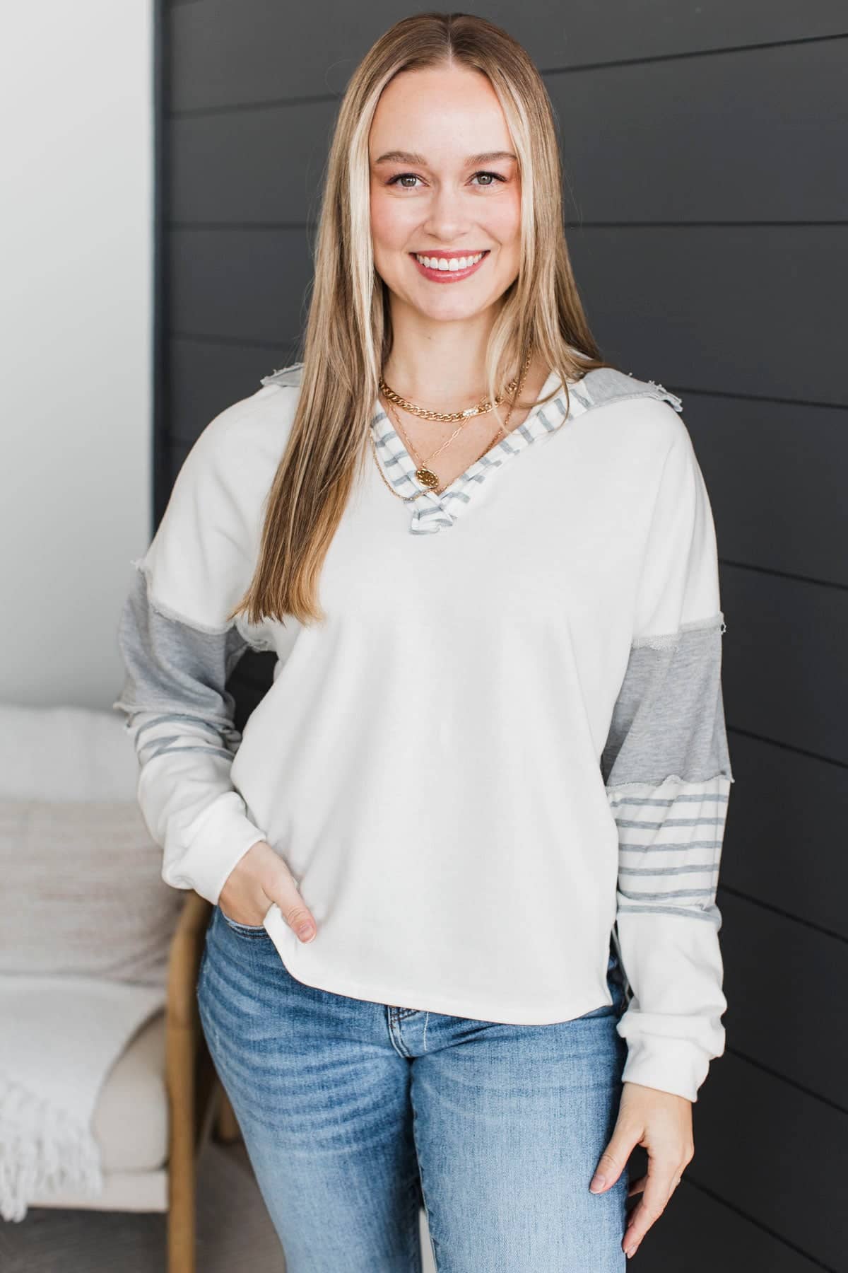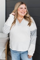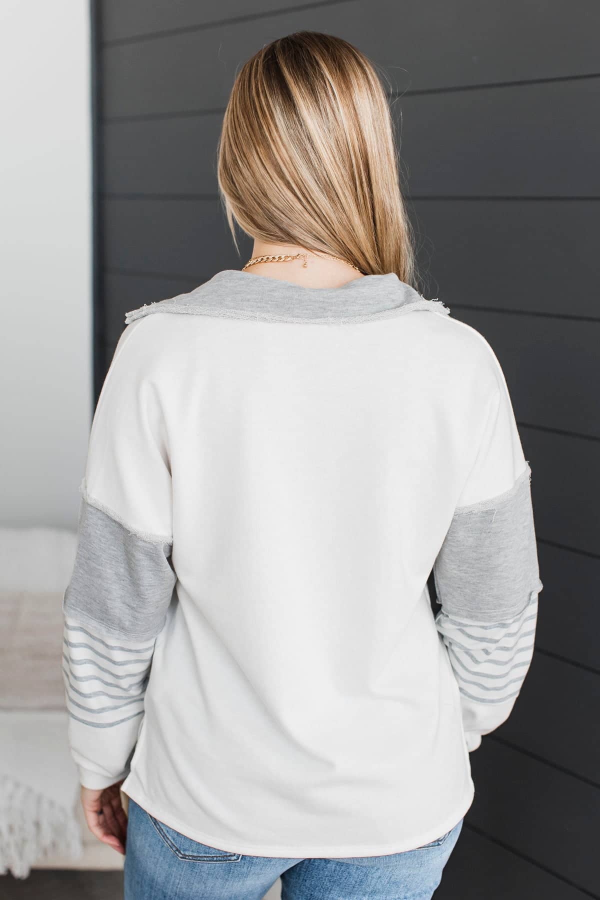 There For You Fabric Block Pullover Top- Grey & White