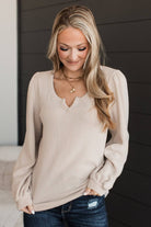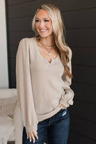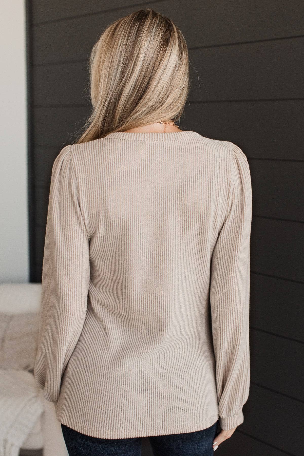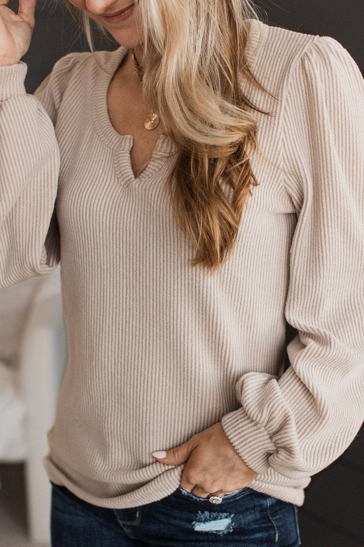 Uncovering Happiness Ribbed Puff Sleeve Top- Light Taupe
