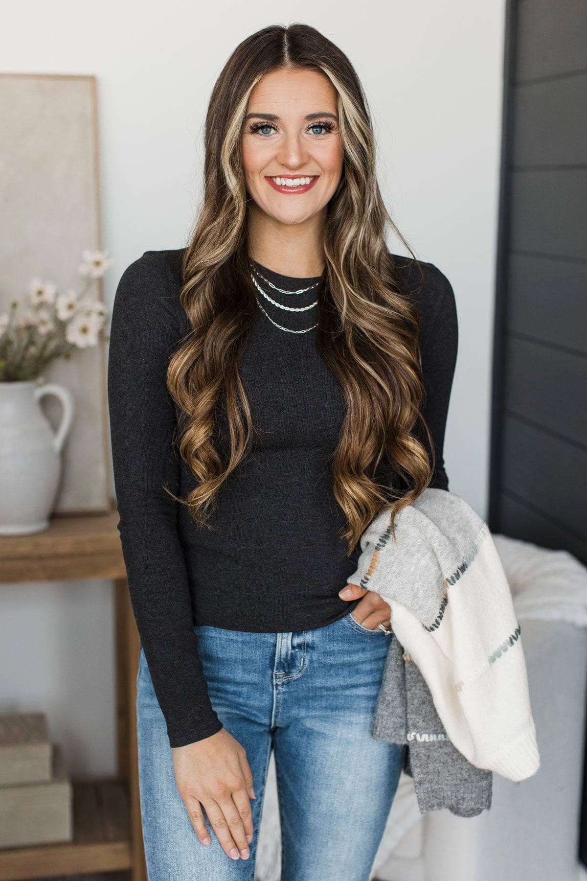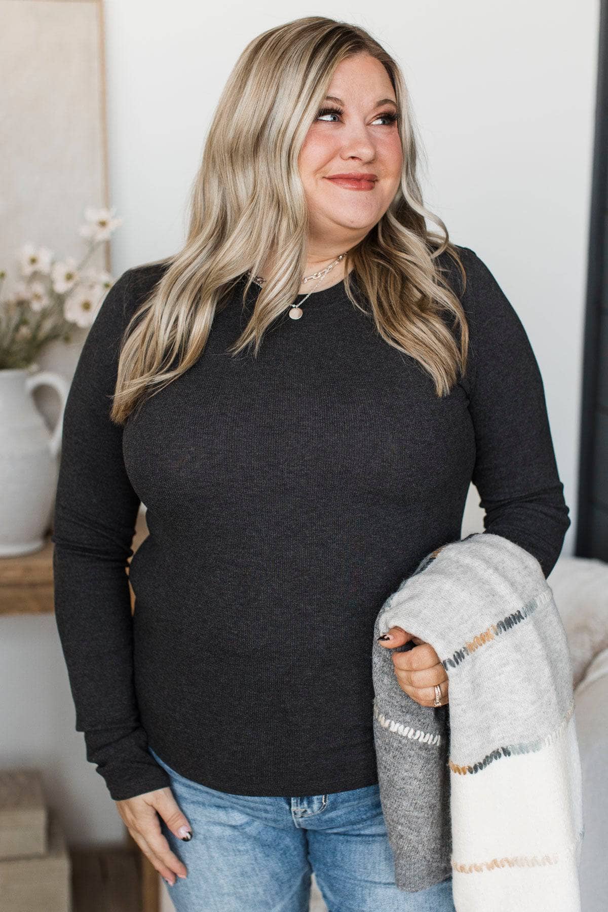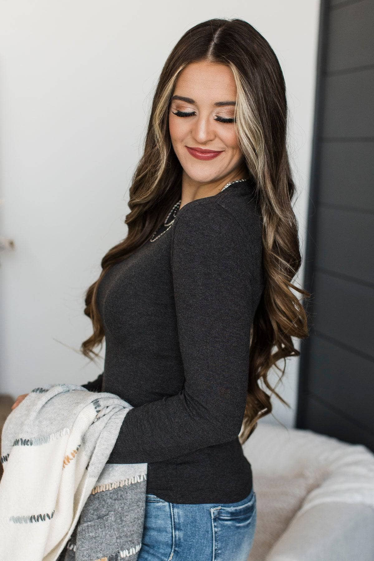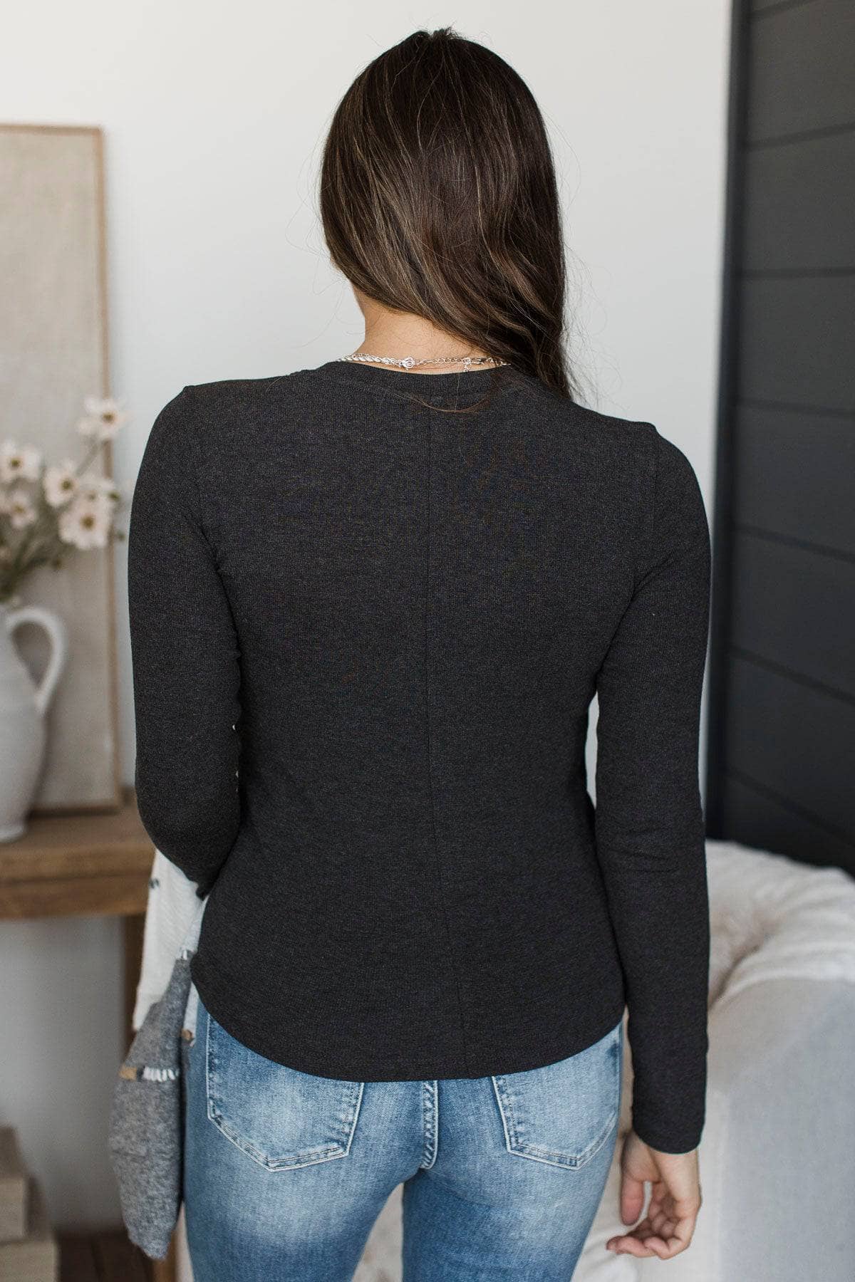 Unlimited Adoration Long Sleeve Top- Dark Charcoal