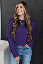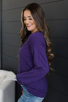 Love this top and how it lays and fits. The color online seems like it has a little bit more blue in it but this is a true classic purple color.