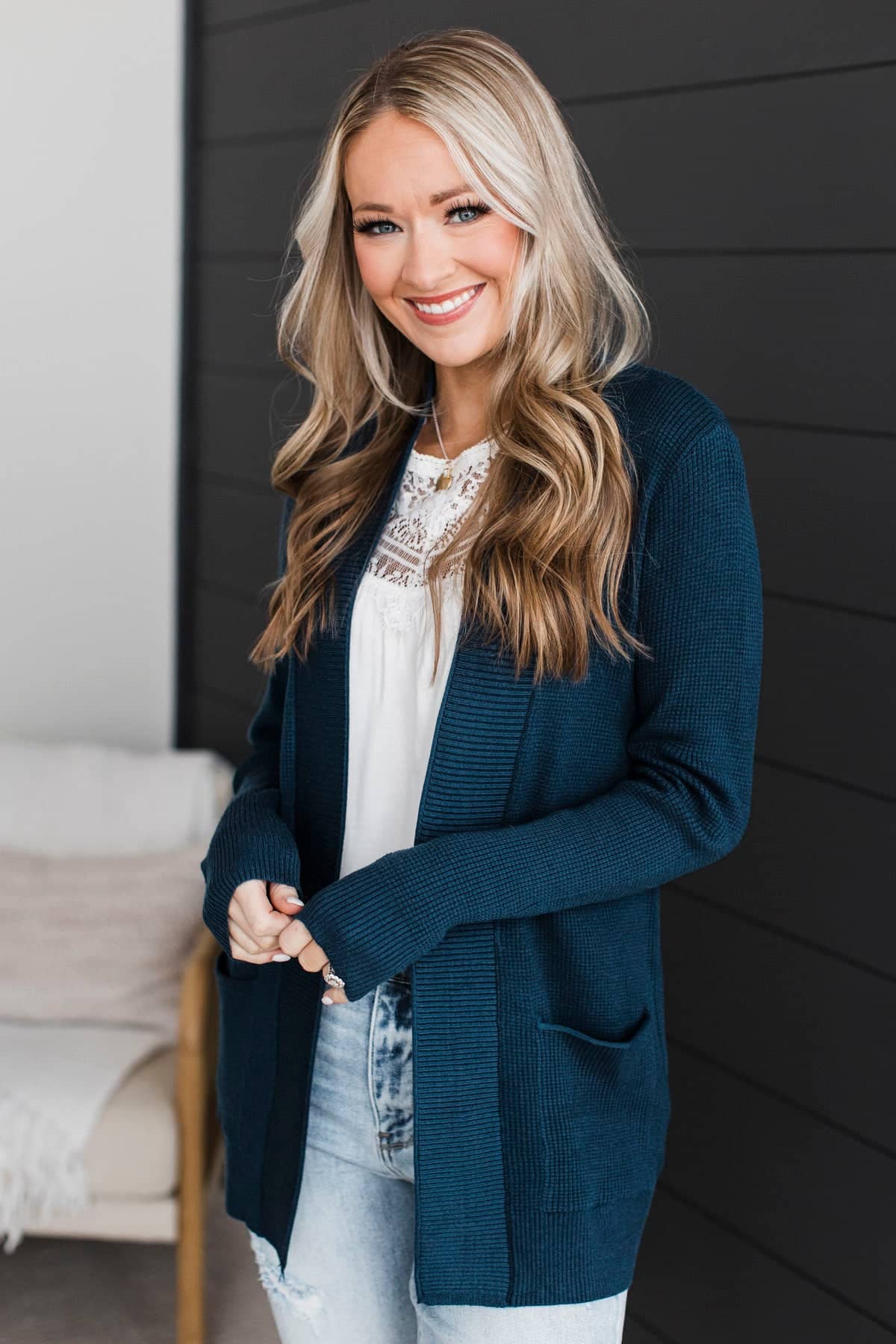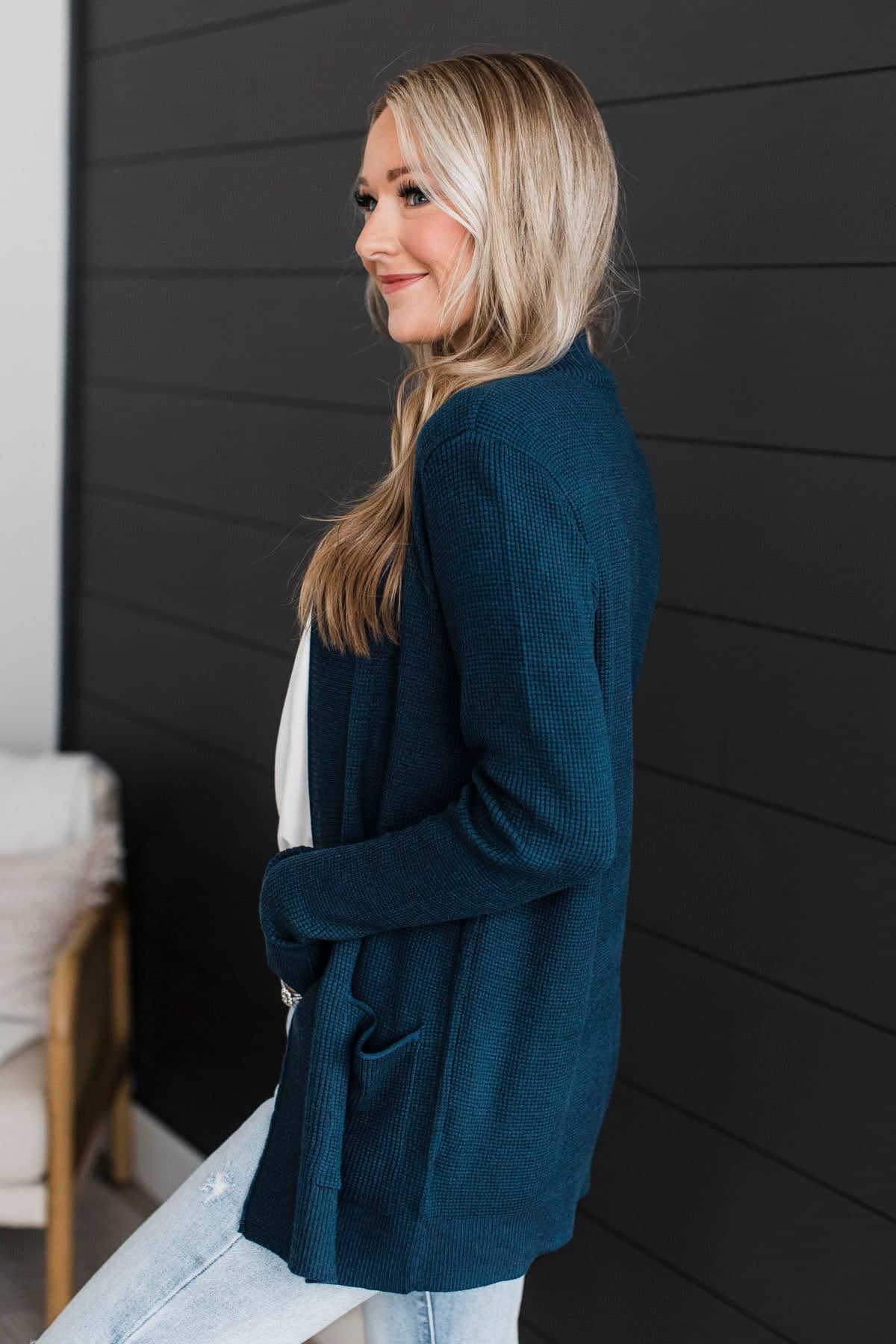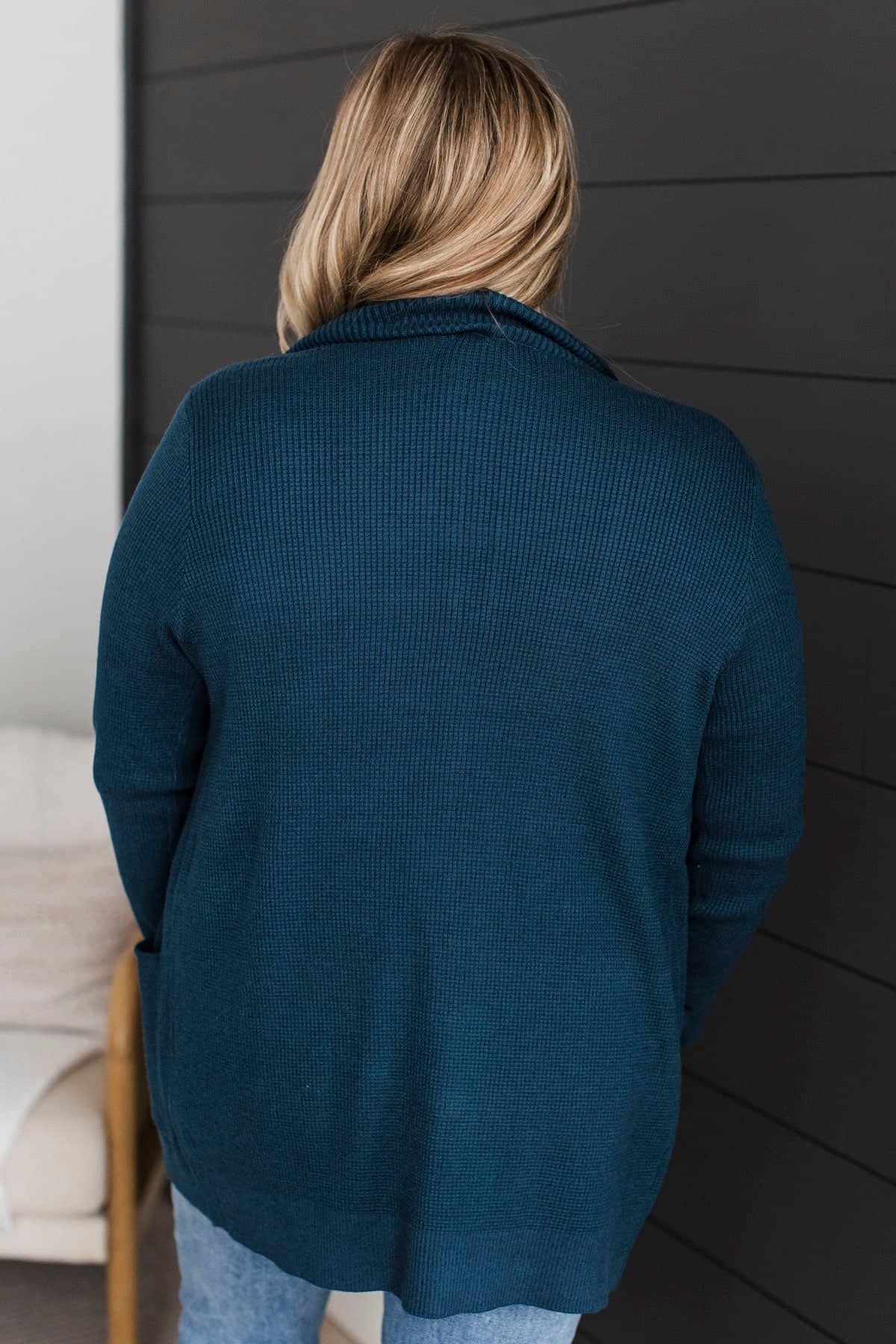 When We Met Waffle Knit Cardigan- Dark Teal