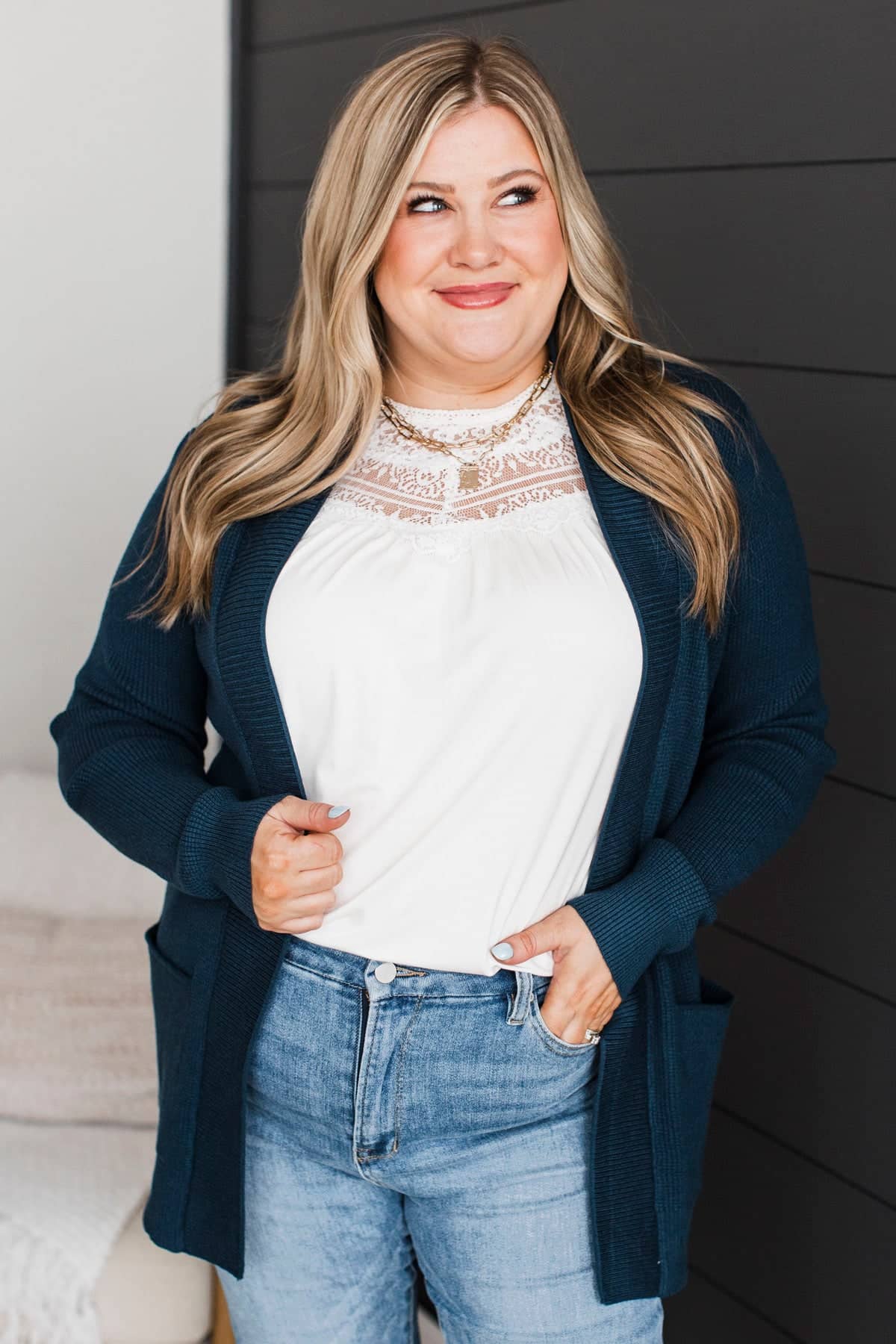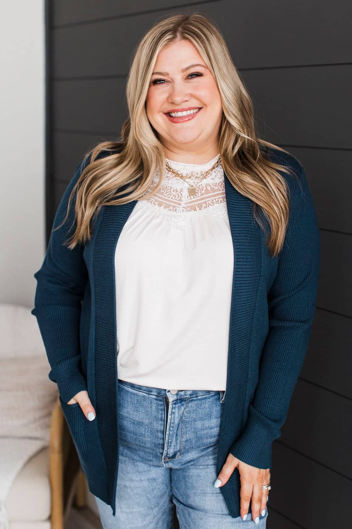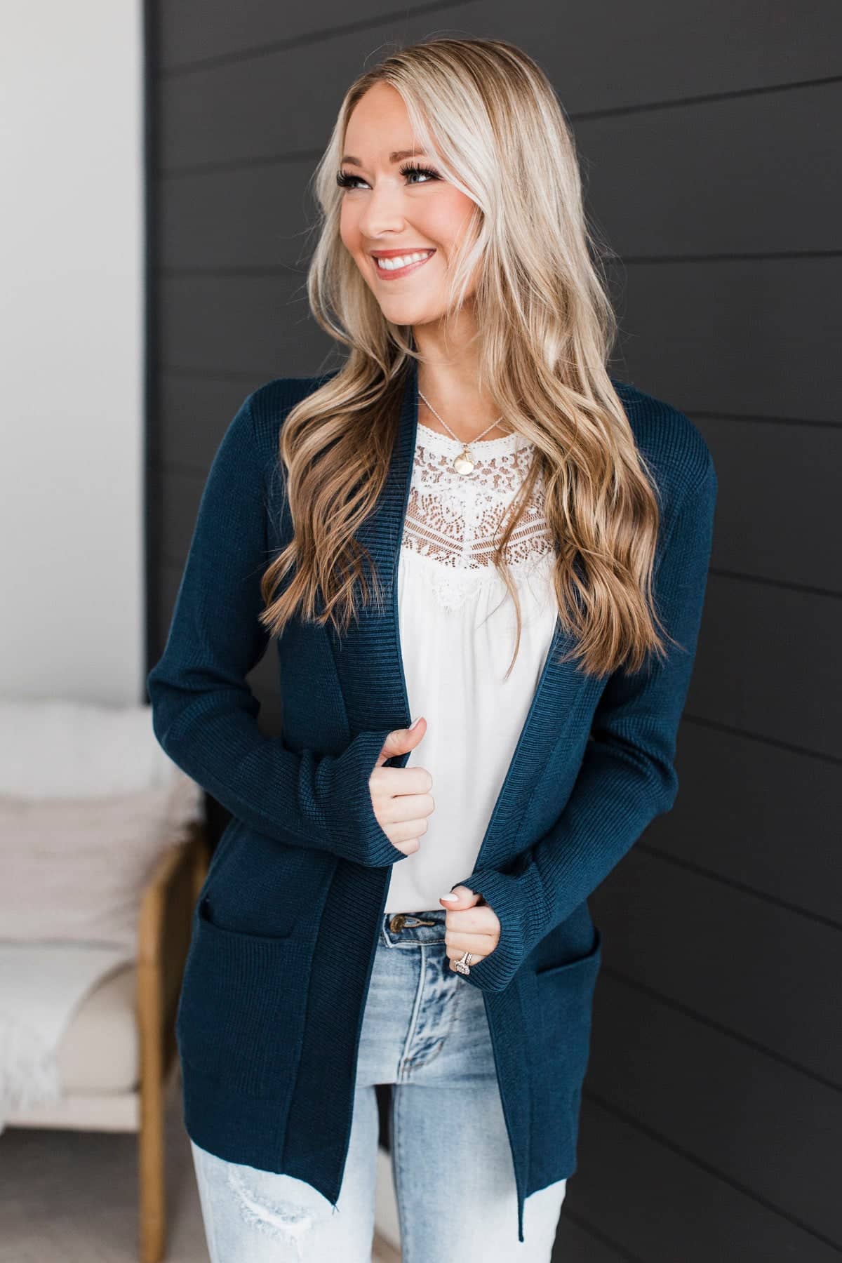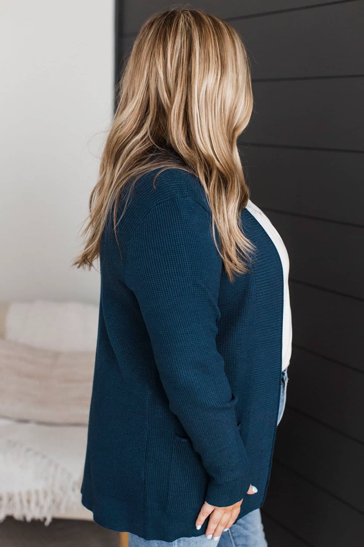When We Met Waffle Knit Cardigan- Dark Teal