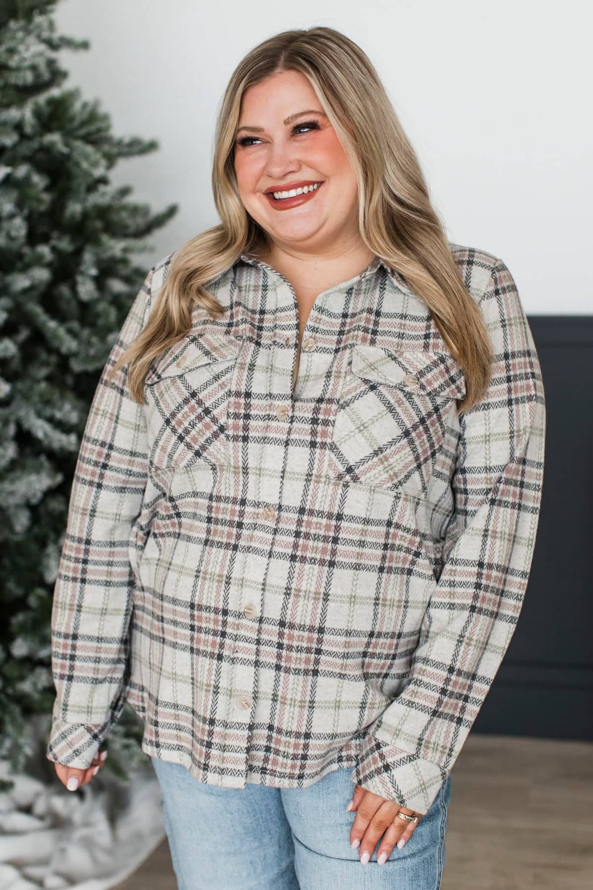 Thread & Supply At Peace Hooded Plaid Top- Grey & Dark Olive