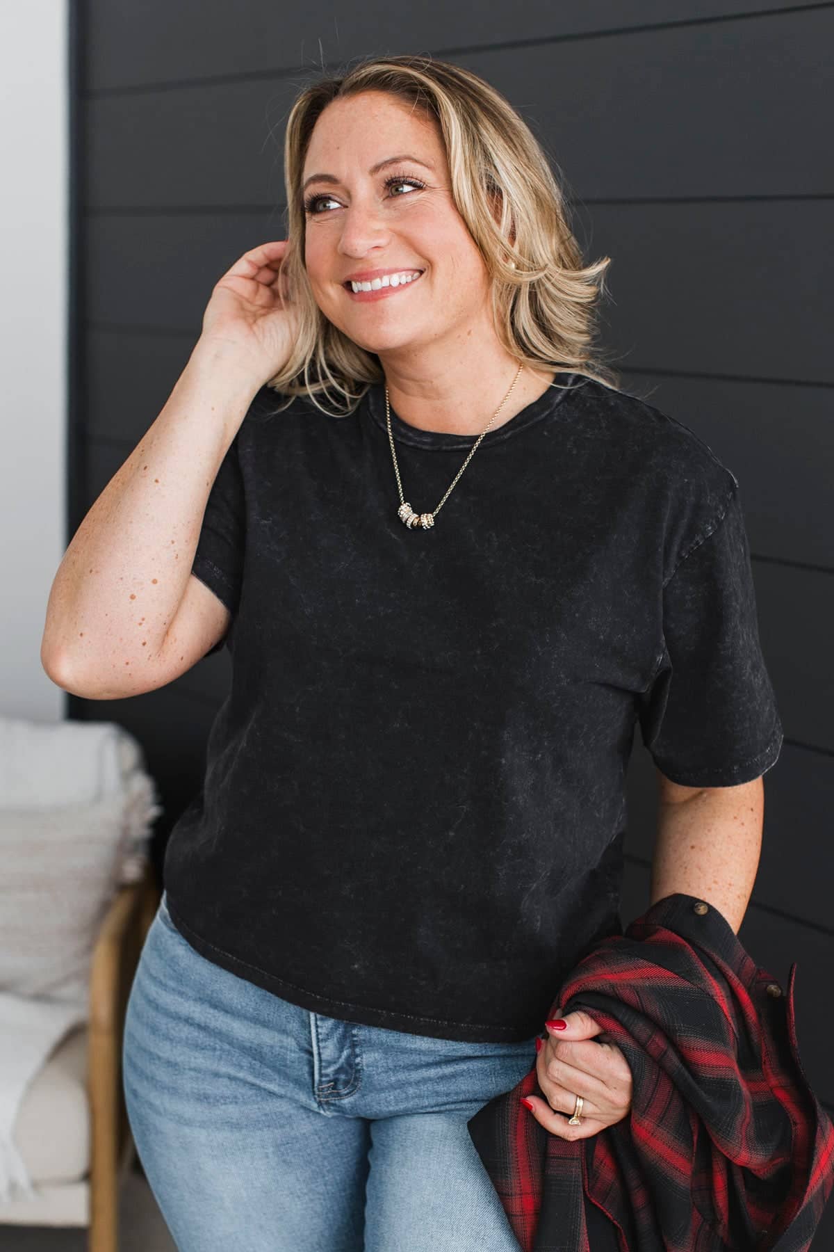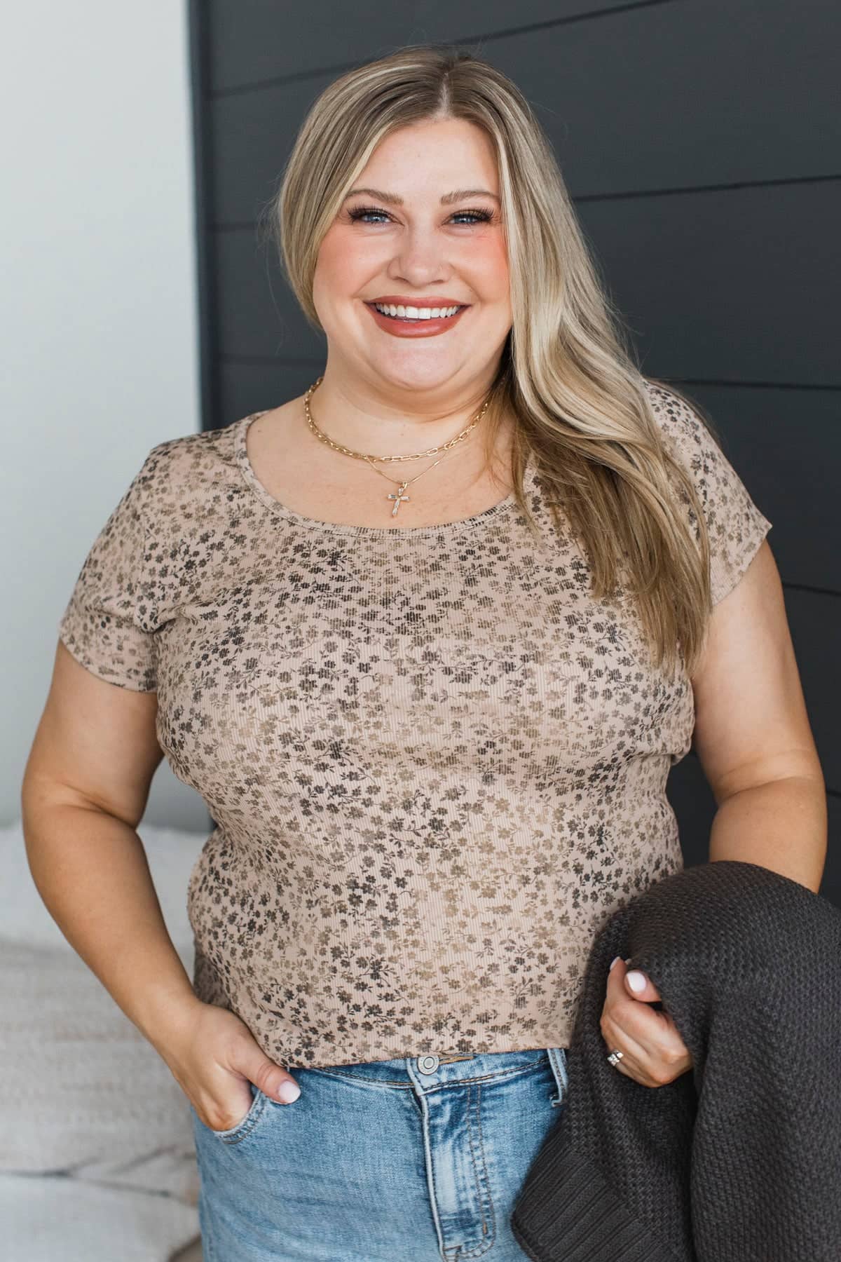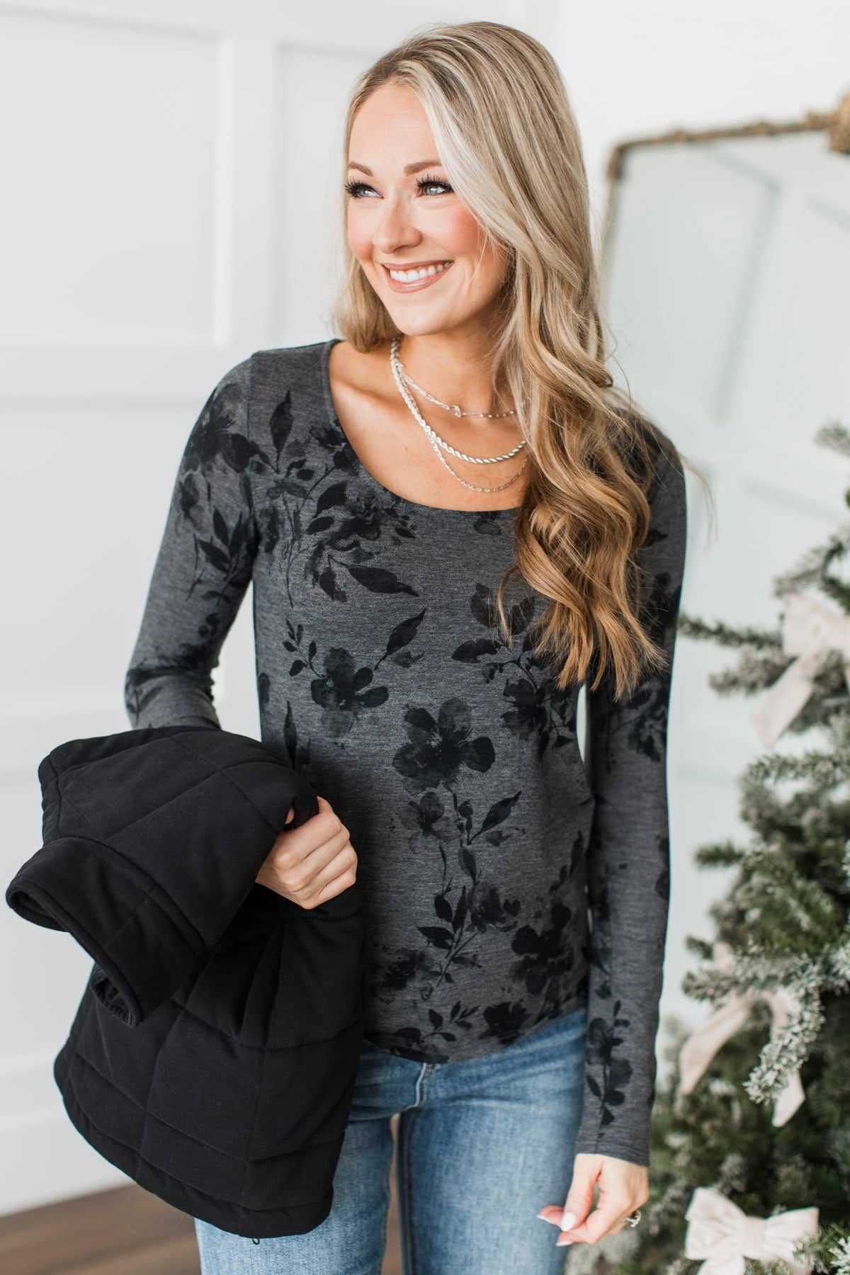 Just For Laughs Long Sleeve Floral Top- Charcoal