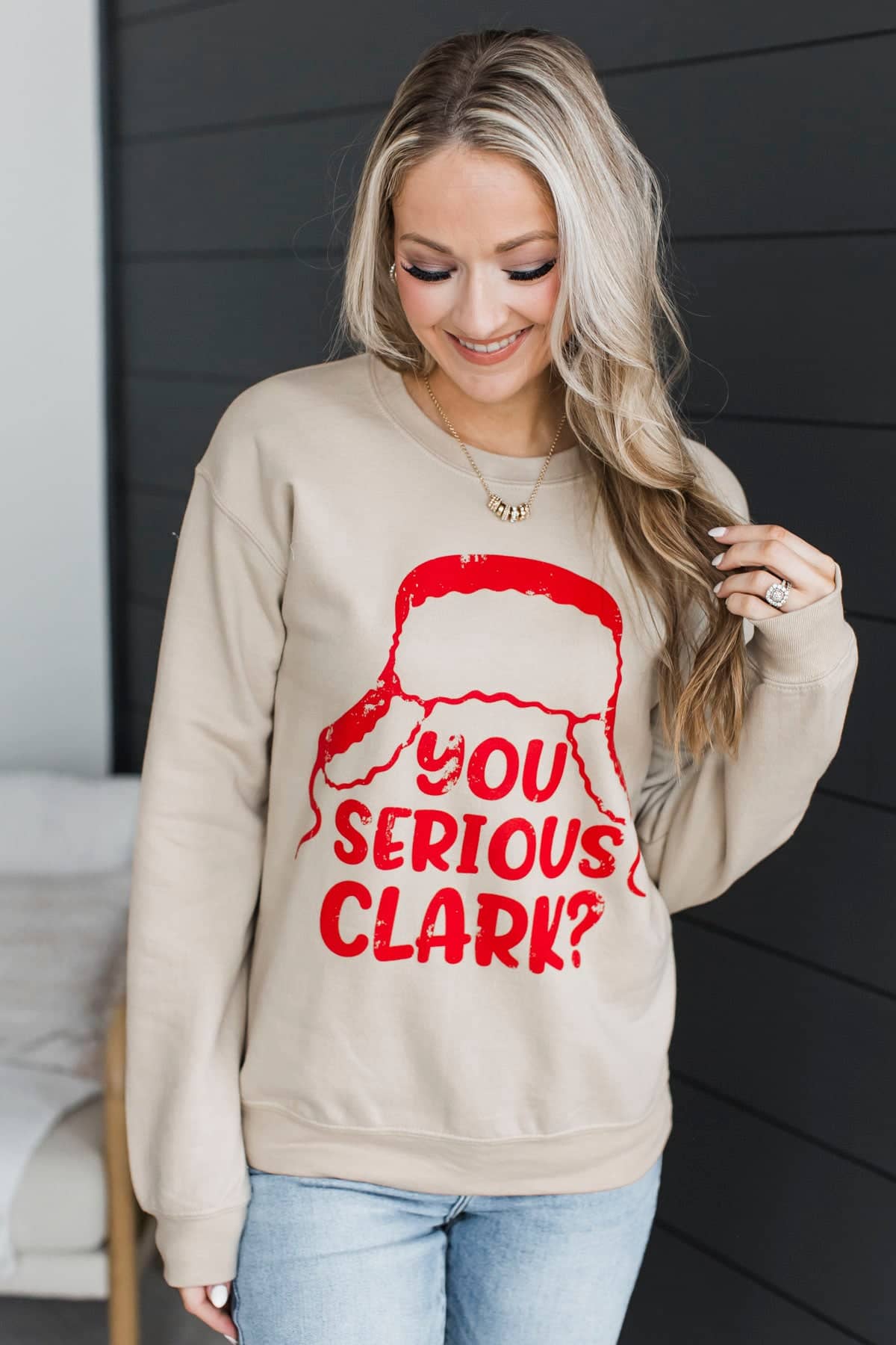"You Serious Clark?" Crew Neck Pullover- Beige