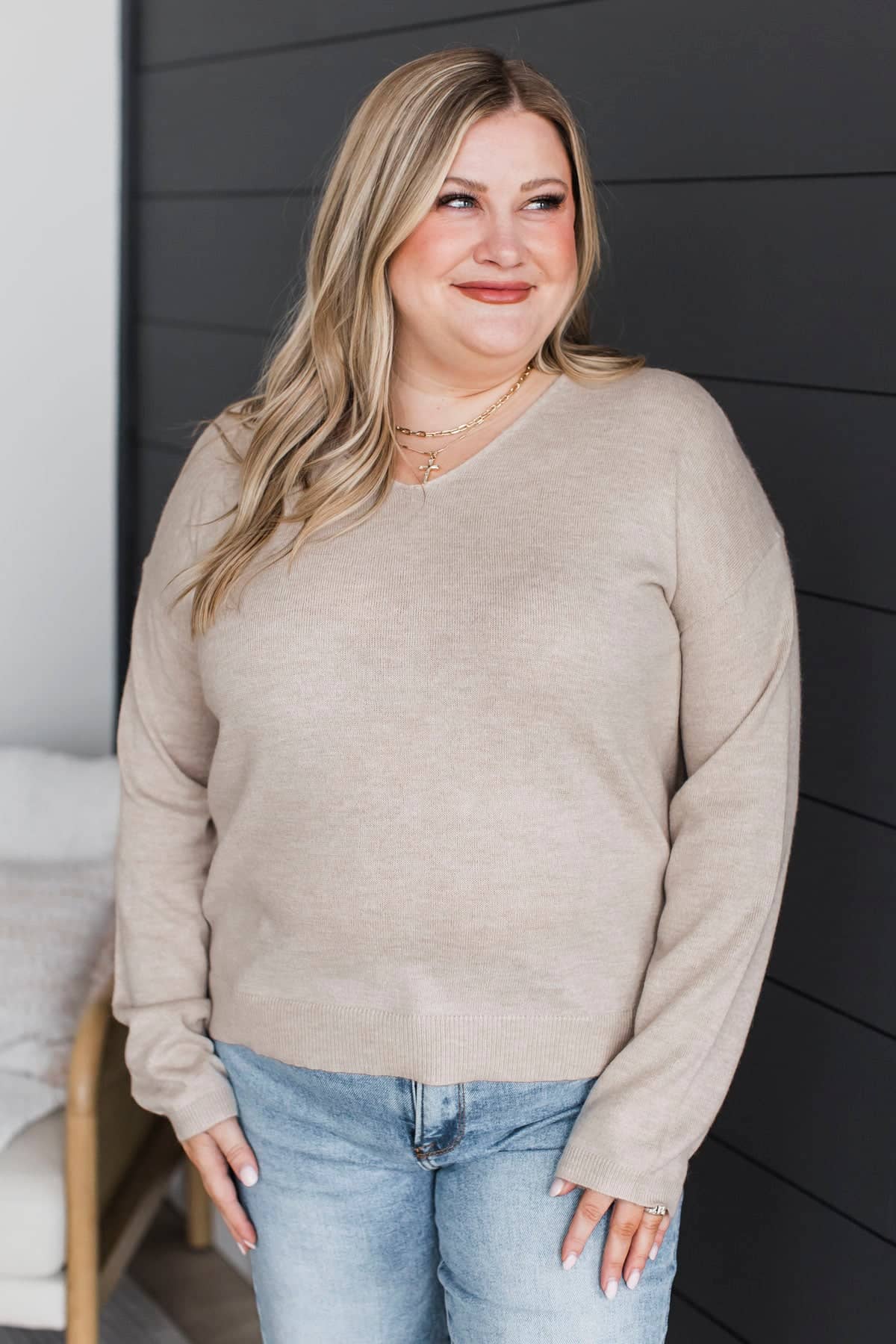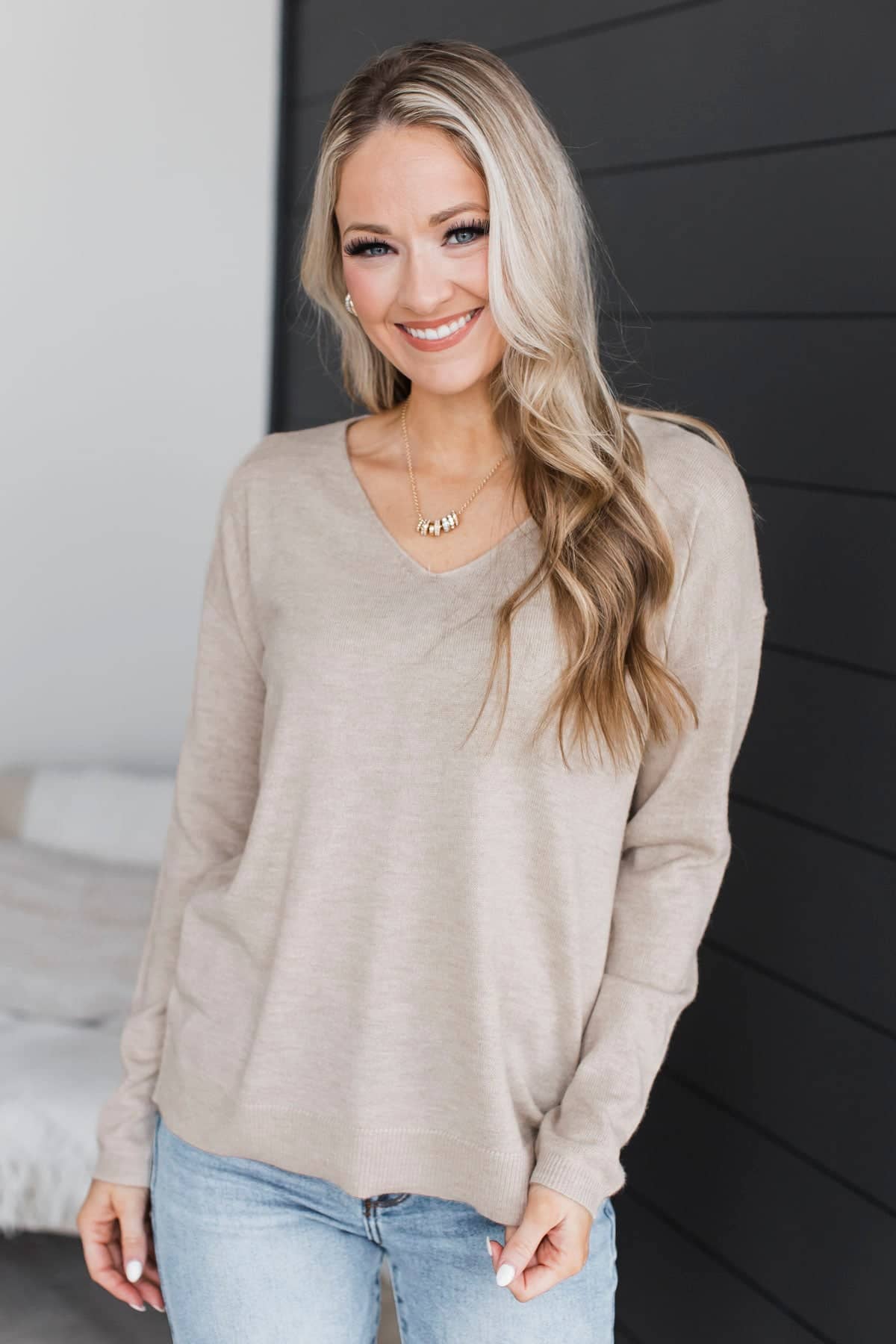 Very Enthusiastic Knit V-Neck Sweater- Oatmeal