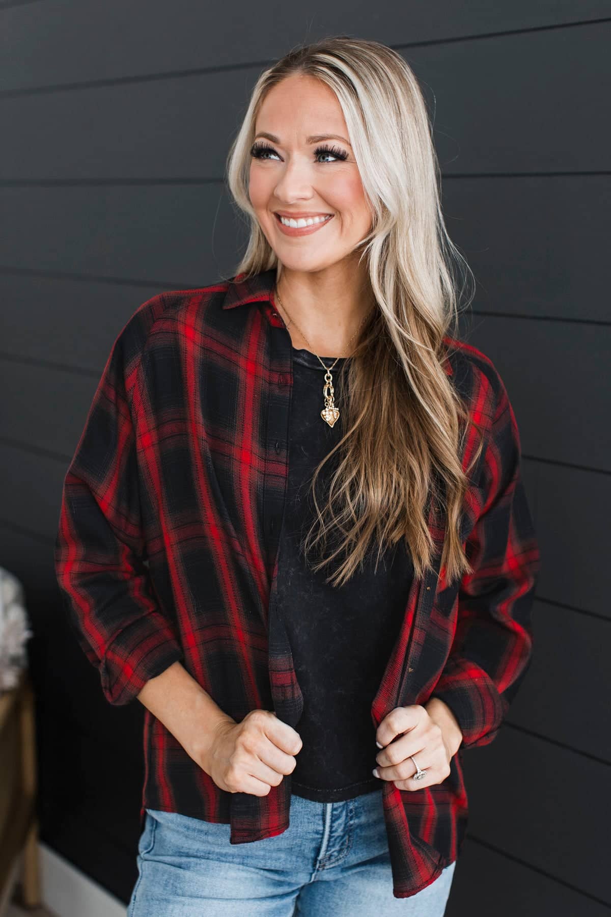 All Snuggled Up Plaid Boxer Shorts- Rust & Green