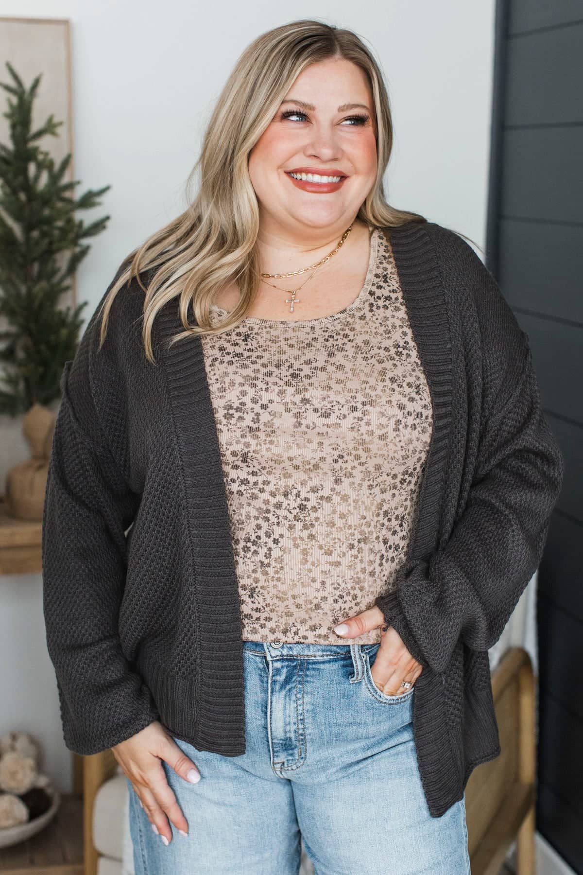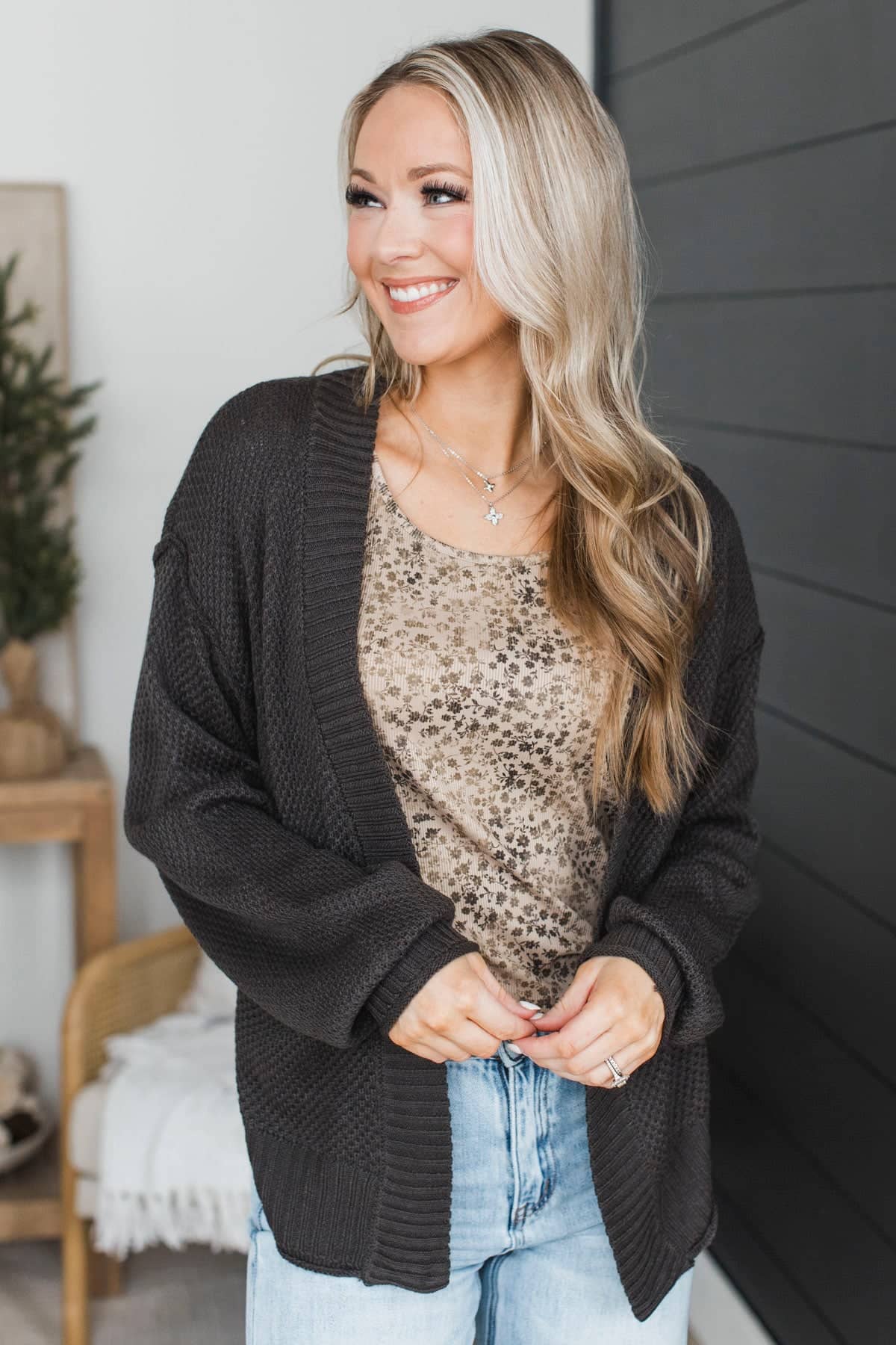Daily Hugs Knit Drape Cardigan- Dark Charcoal
