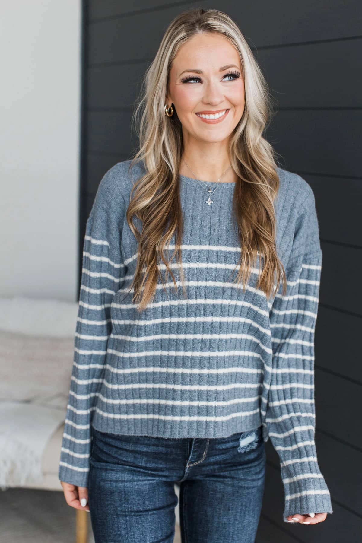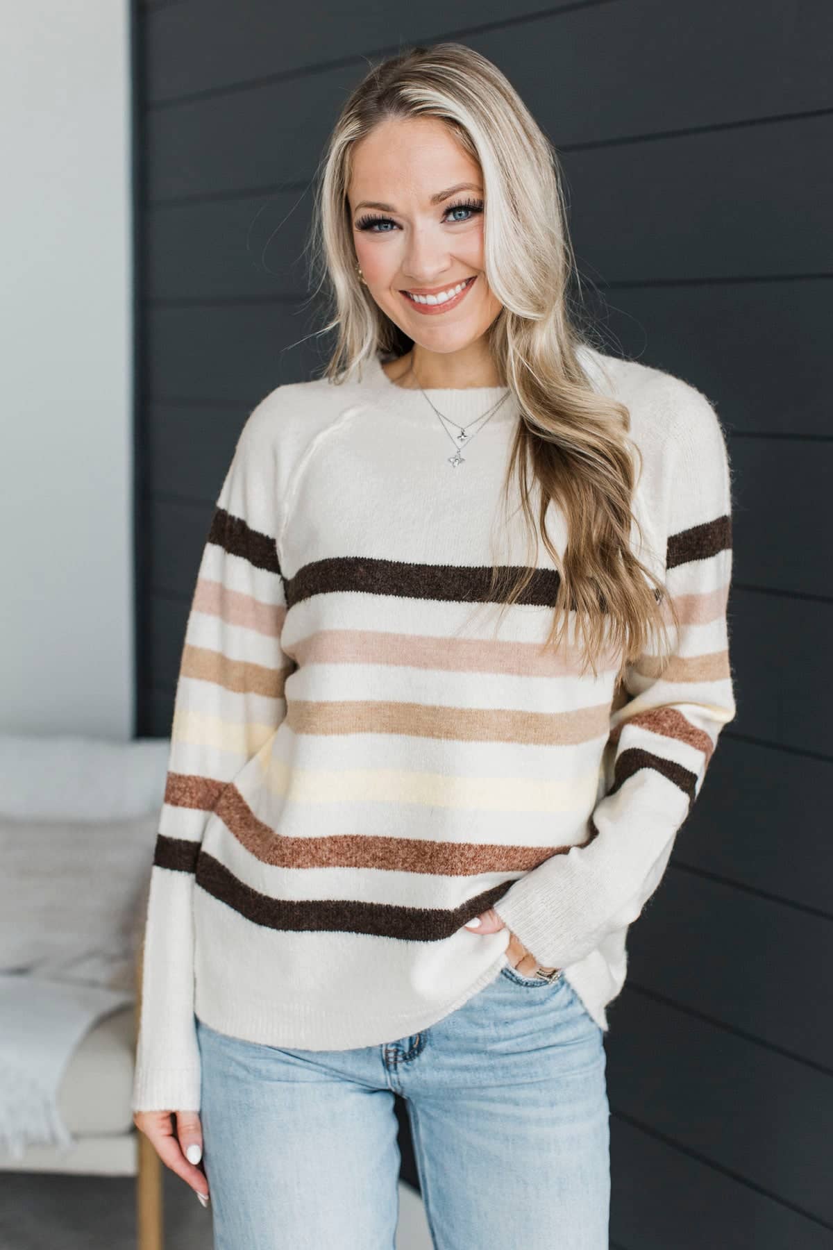 Effortlessly Inspired Striped Knit Sweater- Ivory