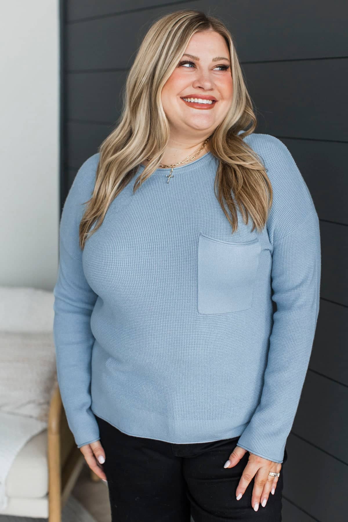 Maybe It’s Worth It Waffle Knit Sweater- Powder Blue